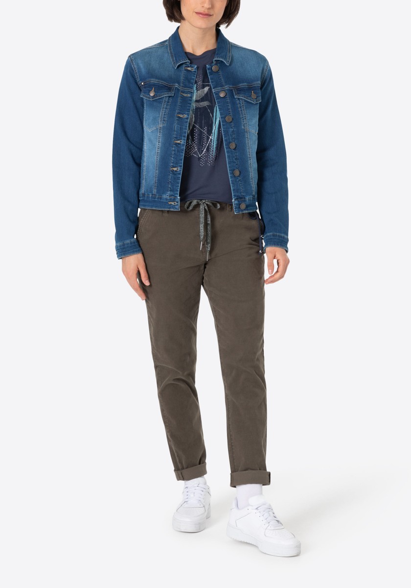 Looks like classic denim, but is like your favorite sweatshirt: the casual denim jacket in ring jog quality from elastické cotton mix. The wonderful thing? A denim jacket never gets out of fashion, fits a wide variety of occasions and can be worn all year round. The Jacket Commt with all model-relevant details such as: Remedial collar, logo metal buttons, breast pockets, division seams, piping bags and the typical contrast seams. The fit: Klasický, Ženský.