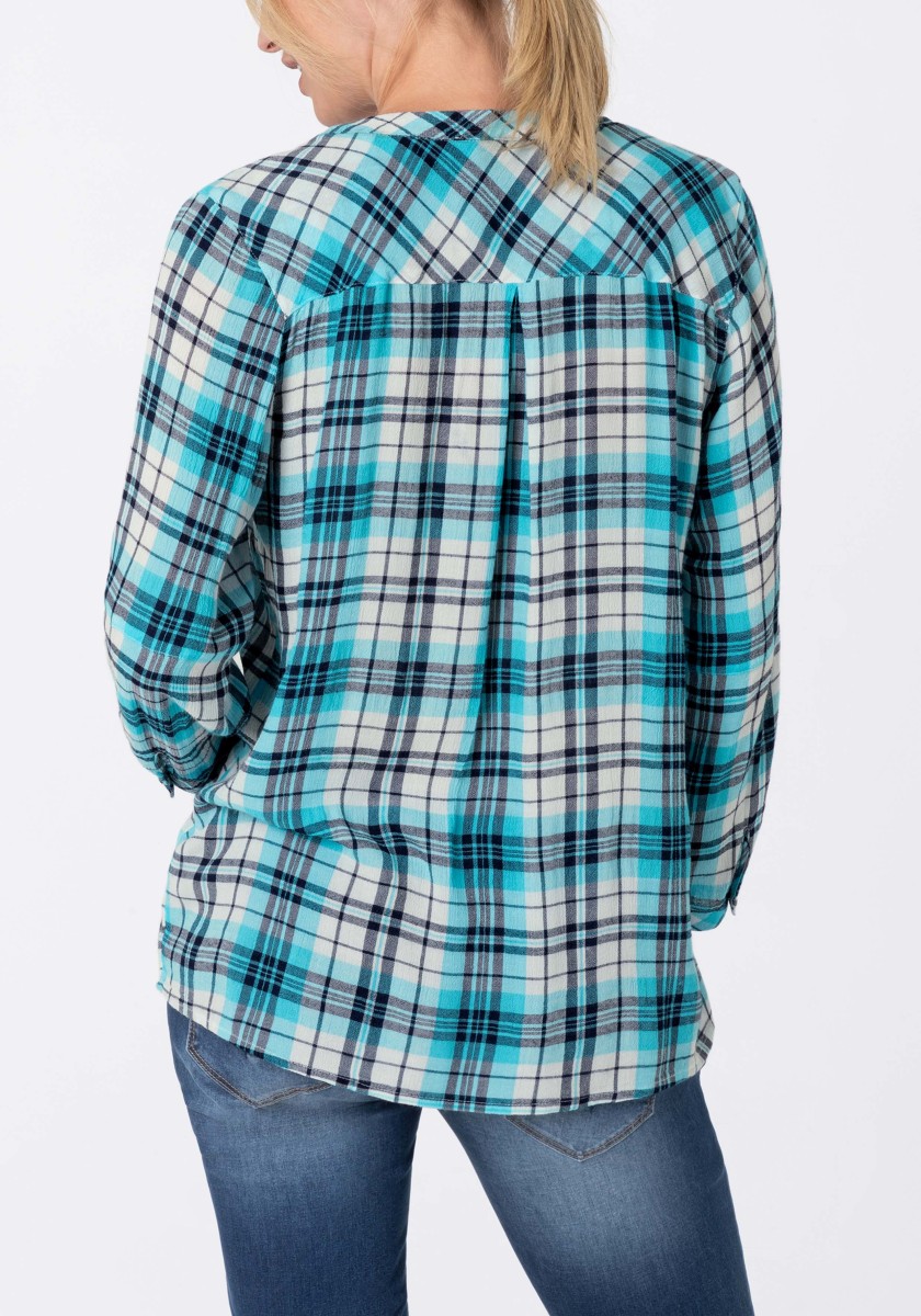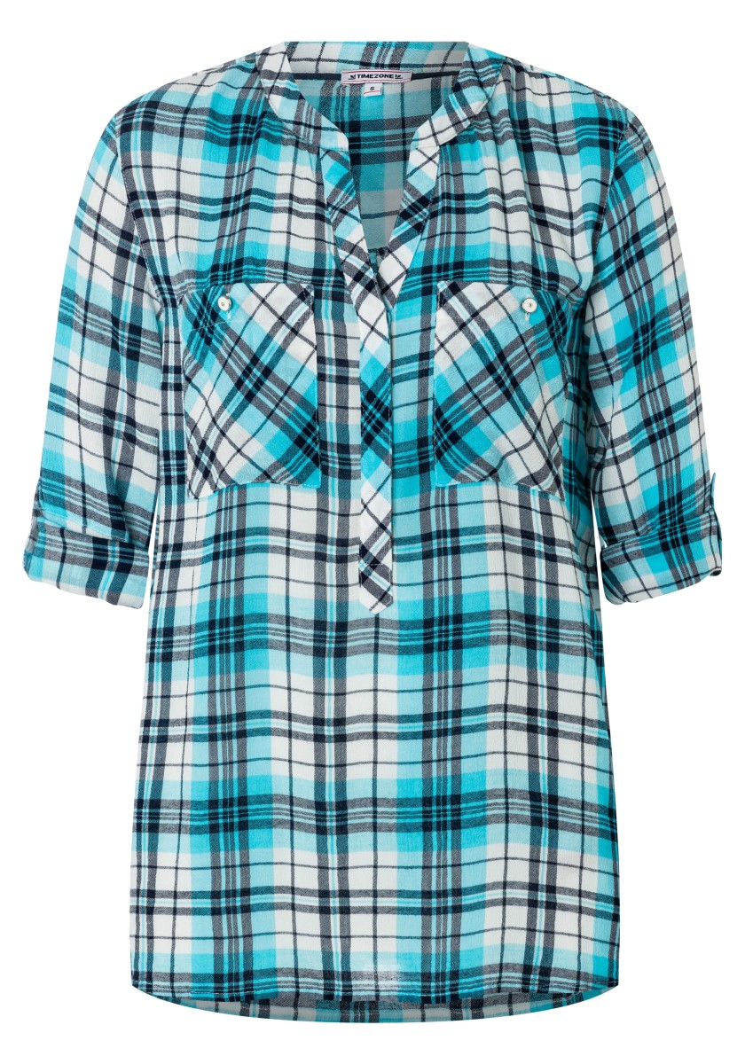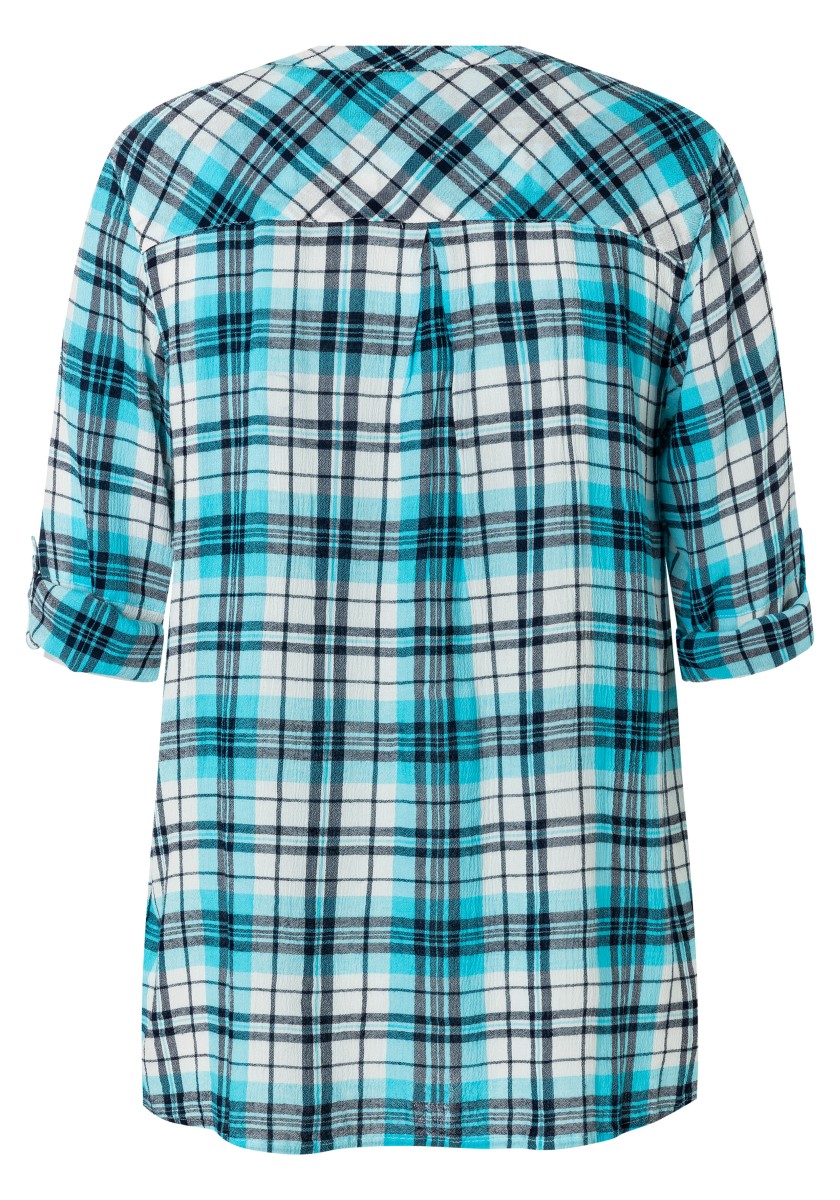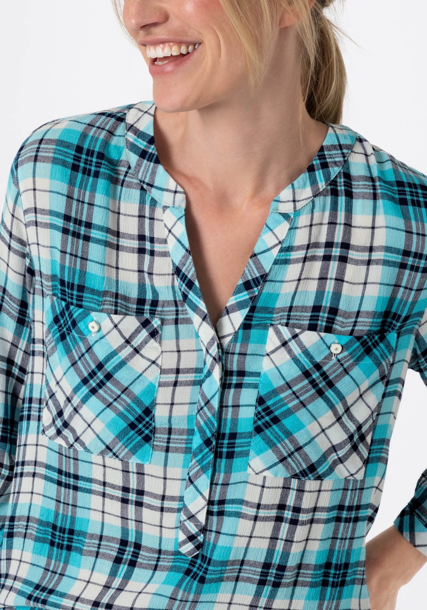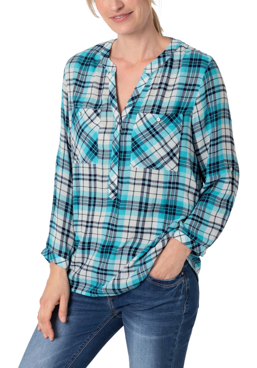 If you think a casual pattern is only in autumn and winter, you are very wrong. Combined with the cool design of the blouse has a summer, light look. Free-cut model made of super soft, squeezed mixtures of modal-chosen with stand and hidden Henley neckline. Ideal for your travel suitcase: No need to iron! 3/4 Sleeves with narrow cuffs and casually rounded lower hem. Rear part with caliper and box fold.