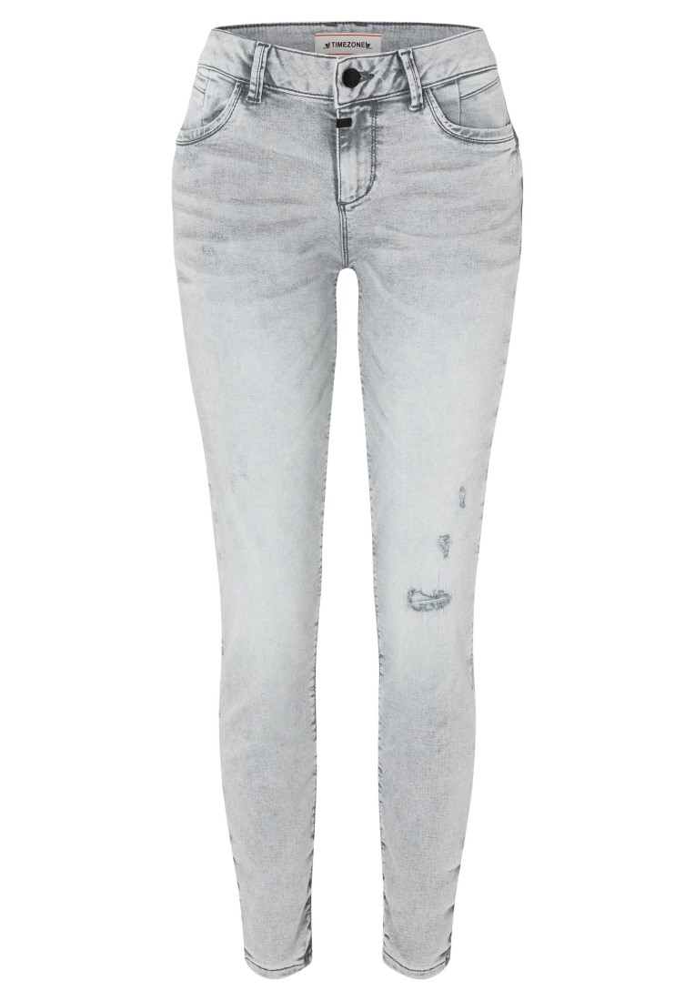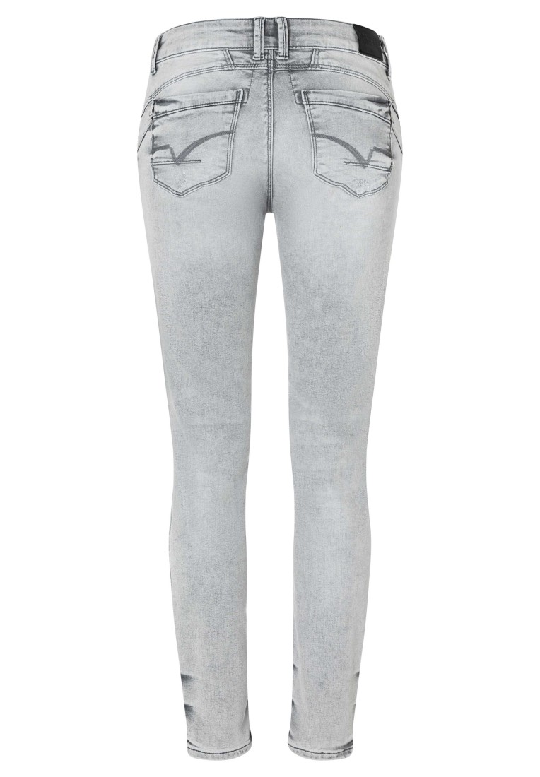 A round thing and an insider tip: this great jeans model has a beautiful butt and slim legs. Thanks to the push-up effect, the high-quality material composition and the special finish, you get a feminine silhouette. Despite the fashionably sophisticated details, these light grey mid-cut jeans are timeless, extremely comfortable and the perfect style partner for many everyday outfits. Lighter fraying and occasional scuffed areas give a fashionable "worn-in look".