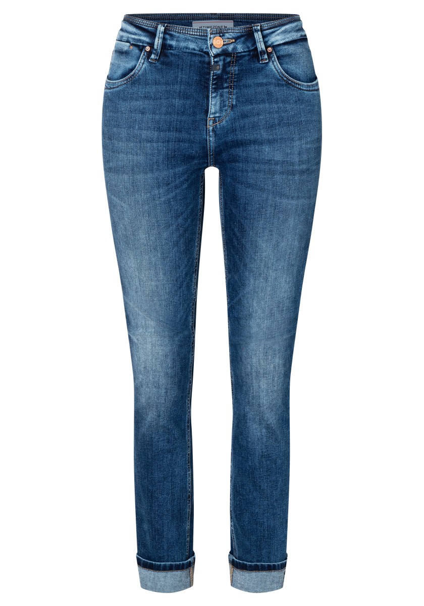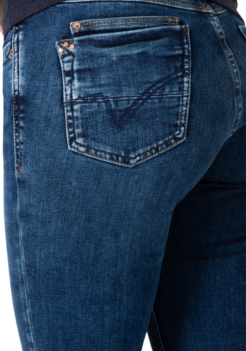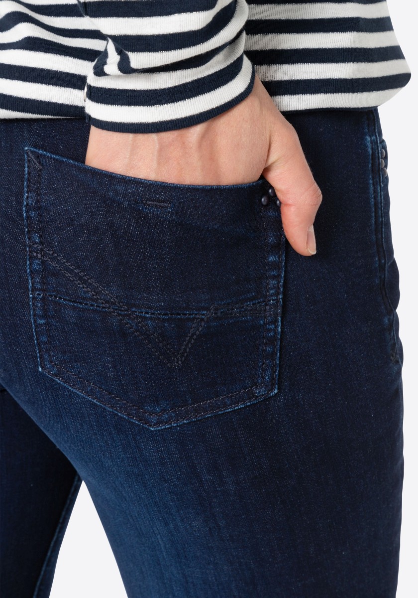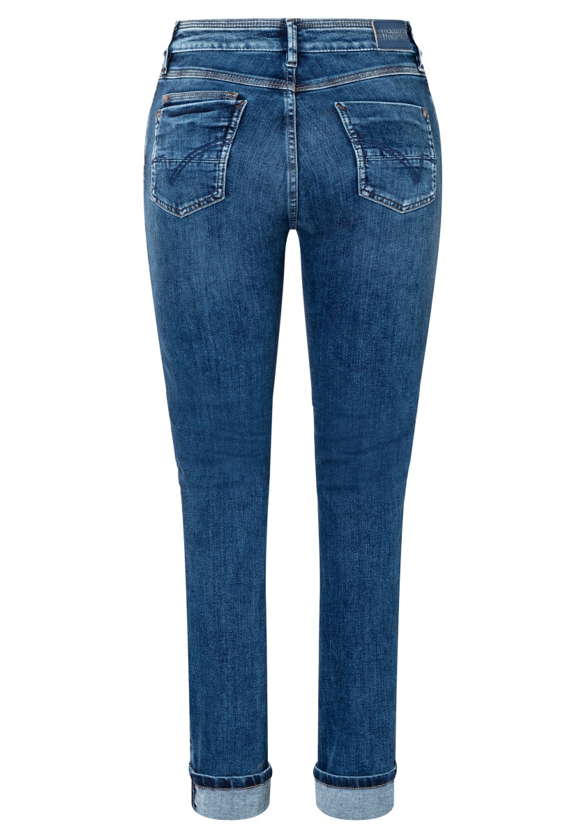 Perfect basic jeans: This high waist slim model is equipped with a mixture of polyester and elastane in a fabric that expands pants and achieves perfect falling. A model with a straight leg in an extra length, which can be rolled in different ways and give it an individual touch. Sophisticated rear pockets are optimally placed and ensure flattering silhouette. We like the denim version in the dark slimming washing with tone seams.