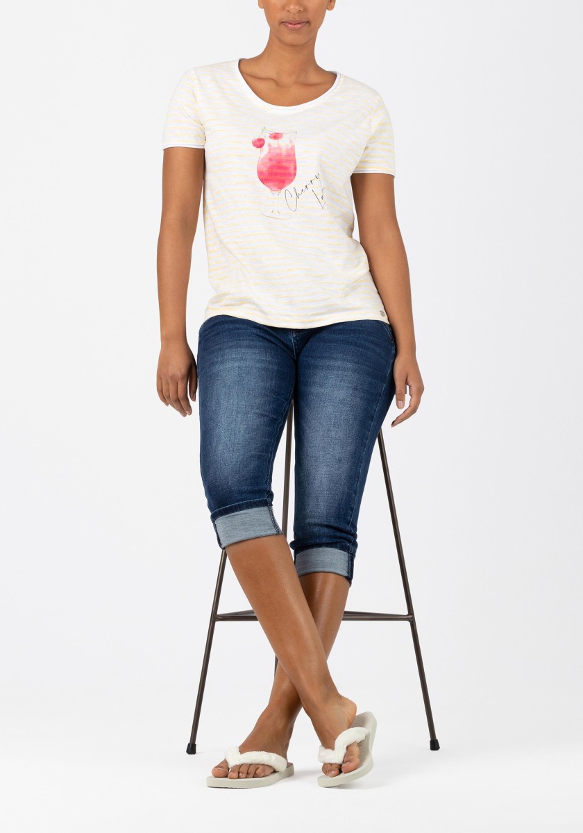 Capri jeans are the perfect trendy alternative to short denim shorts. For those who don't like to show their legs, a longer version is ideal. The women's slim-fit model ends just below the knee and looks especially casual when the hem is rolled up. A modern style with five pockets in a sophisticated cut and many lovingly crafted details. Quality.