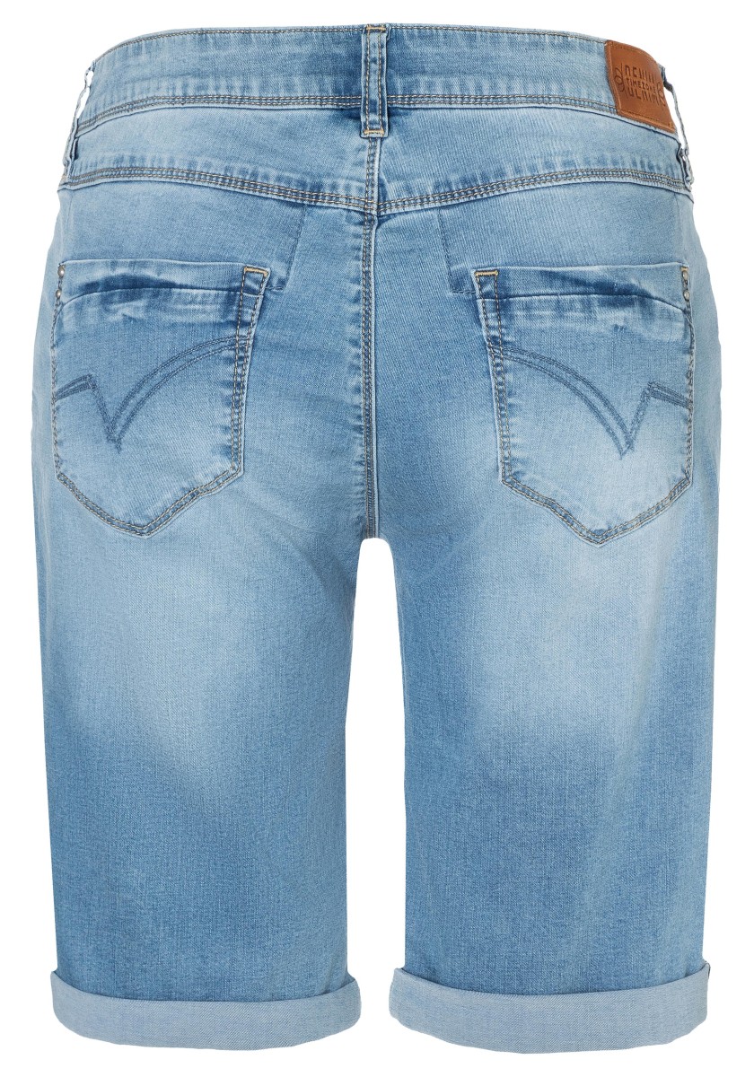 Už dávno získaly kultovní status a každé léto se vracejí na vrchol seznamu povinných kousků: džínové šortky. Model slim fit střihu se středně modrým "fresh indigo" praním, začleněnými sedovými záhyby a světlejšími částmi dostal módní nádech: s moderním designem a složitými detaily. Vysoce kvalitní denim splňuje ty nejvyšší nároky. Je lehká, pohodlná, velmi měkká a má vysoký strečový faktor. Moderní styl s pěti kapsami a knoflíky vpředu.