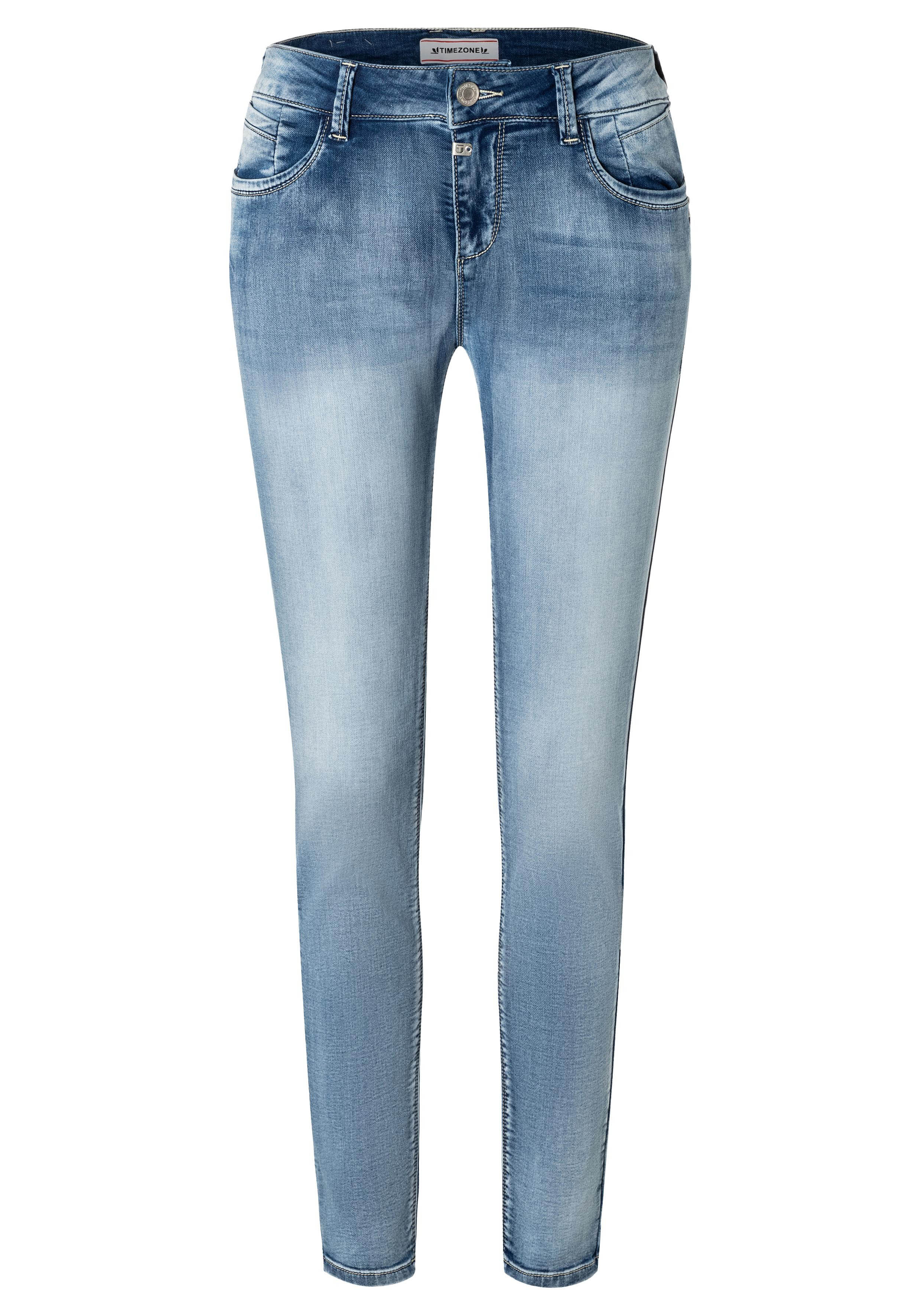 These skinny jeans have the characteristics of leggings. They perfectly shape the female silhouette, are barely noticeable and promise the highest and most comfortable wearing comfort. The extremely soft, lightweight and thin denim material is made of a high-quality, stretchy cotton/polyester blend and has a very light aqua blue wash in a vintage look. A modern, refined style with five pockets, riveted details and an unconventional cut.