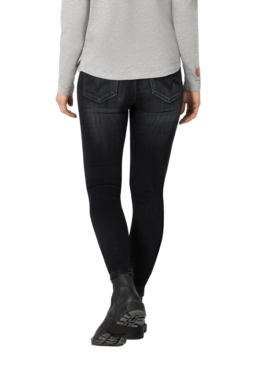 The tight fit bridges the gap between skinny fit and slim fit. It is an all-rounder, makes you look good and thanks to the slimming effect it flatters every figure without exception. Most important role: The tight silhouette and the perfect fit. This stretch jean model has a basic five-pocket style, a regular rise and an essential black wash with elegant tonal stitching, durable seat creases and light scuffs. Quality: A cotton-polyester mix.