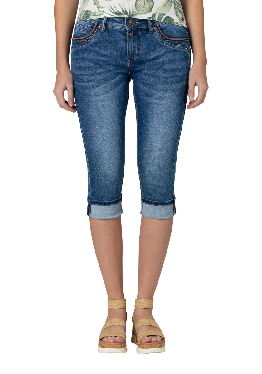Jsou perfektní trendy alternativou k džínovým šortkám: Capri džíny. Pro ty, kteří neradi vystavují na odiv nohy, je ideálním řešením delší verze. Ženský slim-fit model končí těsně pod kolenem a vypadá obzvlášť ležérně, když je lem ohrnutý. Cool, moderní pětikapsový styl s propracovaným střihem a spoustou láskyplně zpracovaných detailů. Kvalita: super měkká, velmi pružná, lehká, vysoce kvalitní, ve velmi lehkém extra bělícím praní.