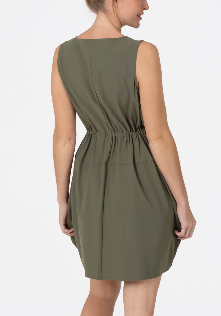 Trend: the new Eggshape! Not tight, not just wide - but oval and cut in a casual oversize cut comes the knee-length and sleeveless dress. Material: high-quality two-way stretch material made of nylon and elastane - with a technical sporty touch - super-elastic, light, smooth and with a noble, matt sheen. The practical slip-on fit can be extended at the waist with a drawstring to change the silhouette. The dress is not lined.