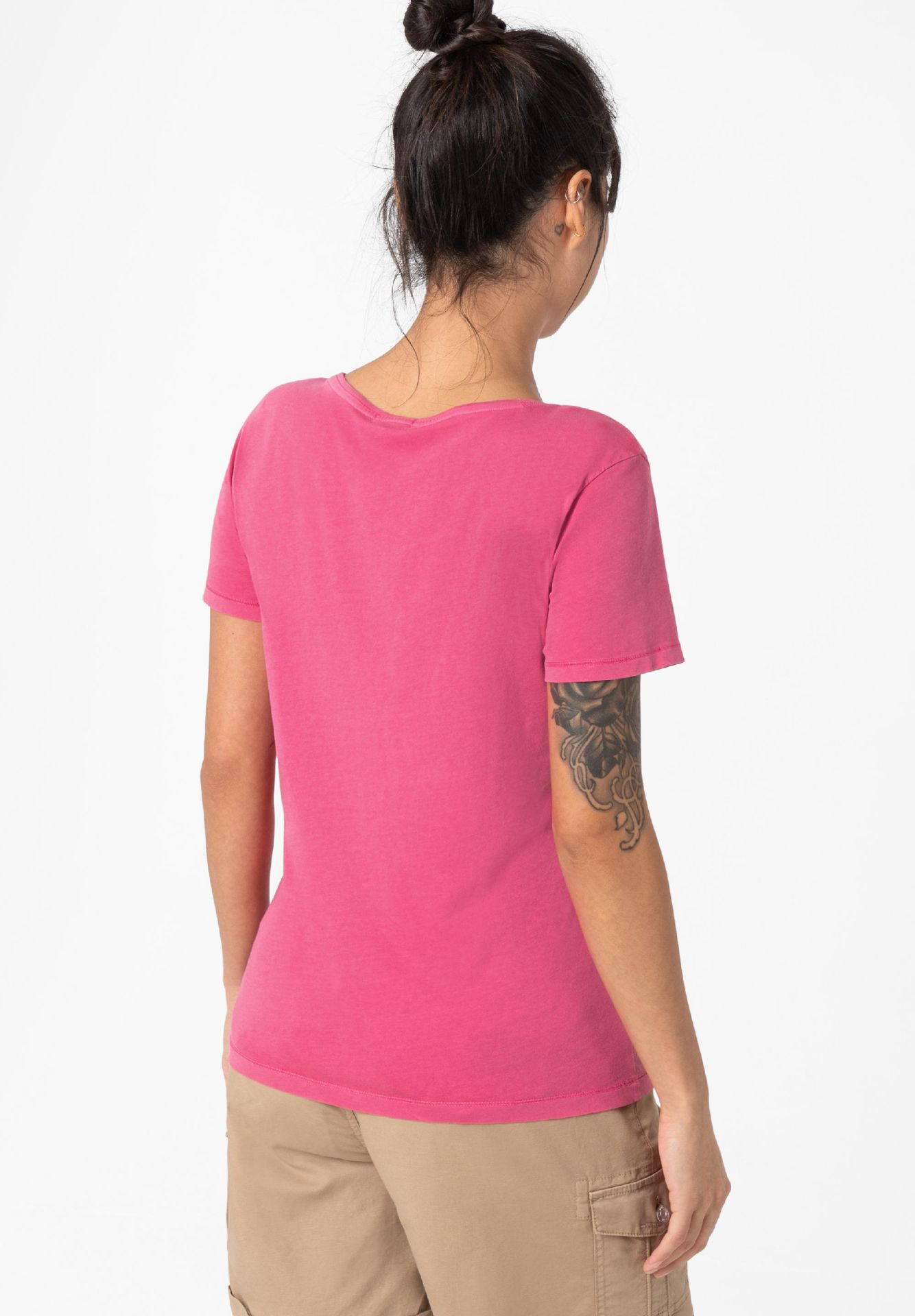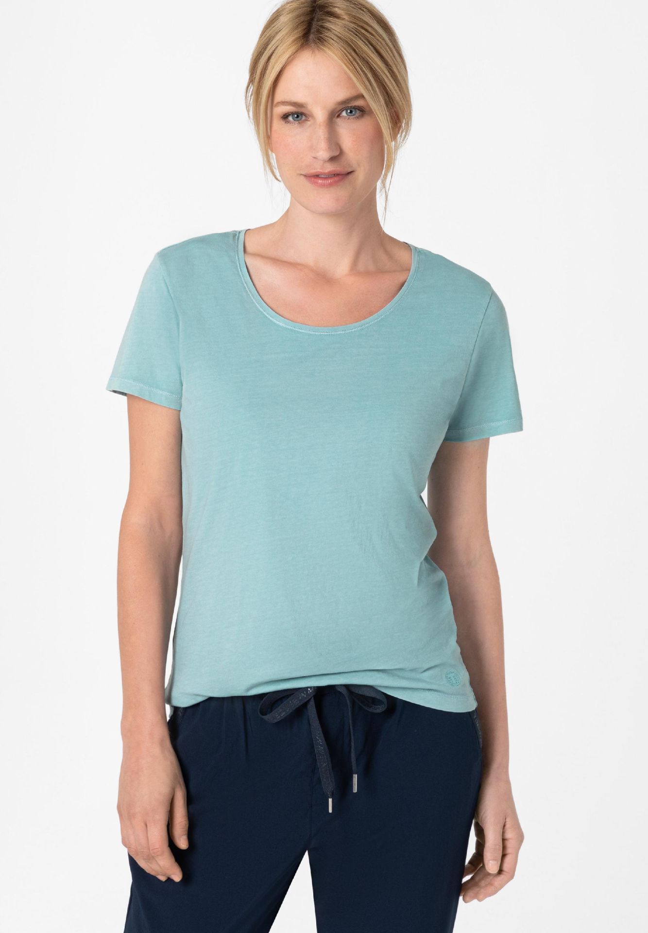 Are the basis for every fashionable outfit, belong to the ten most important wardrobe staples in the closet and are absolute talent for combinations: plain-colored T-shirts. This model made of soft, pure cotton single jersey has a loose, straight fit and a hem with a cool baseball seam. Round neckline and sleeve hem have casual, cut rolled edges. A great basic piece and a high-quality fashion companion for many different occasions.