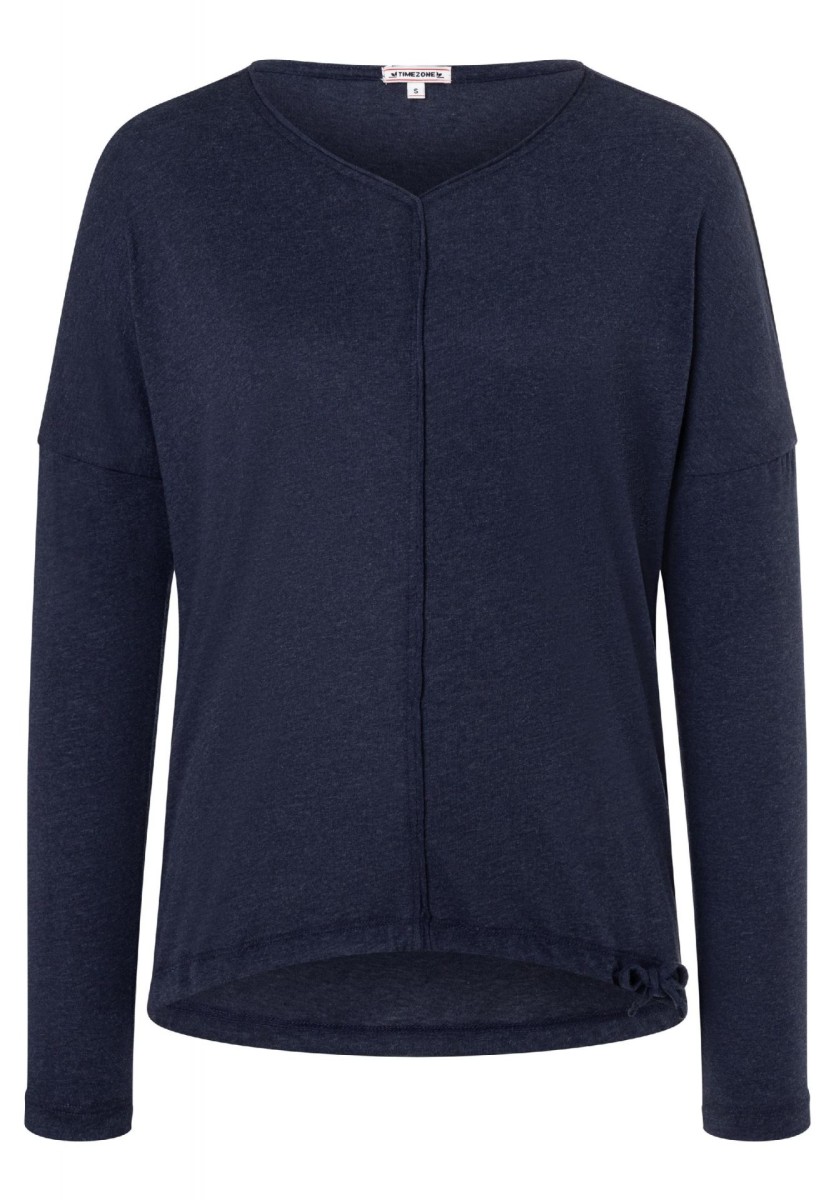 This oversized long-sleeve wide fit is made from an extra-soft melange jersey in a high-quality cotton blend. This cool piece has a modern neckline that stretches from the centre front to the hem. The shoulders are heavily cut, the sleeves are long and narrow and the side seams are accentuated with a ribbed stripe. Special: thanks to the drawstring at the hem including the tie, the width can be altered as required.