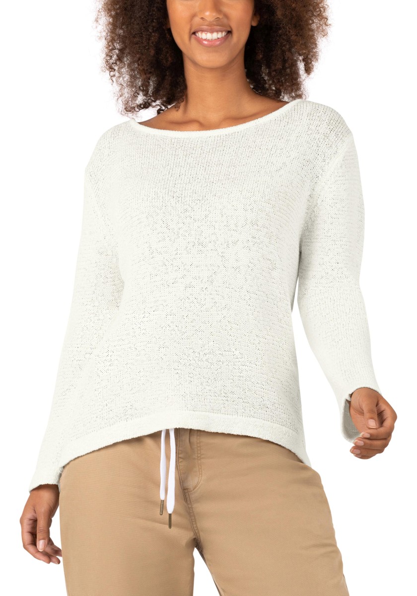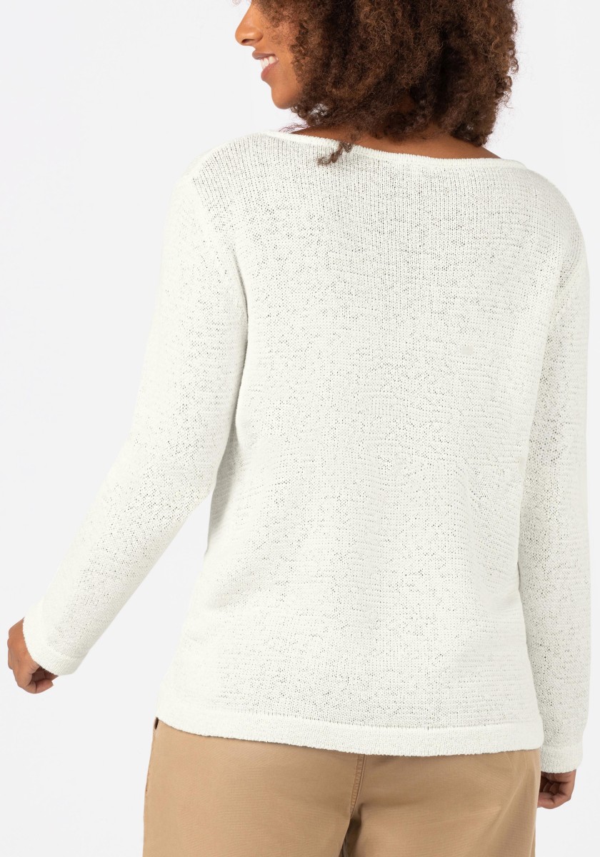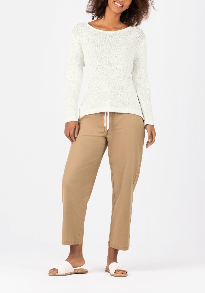 Familiar but still fashionable: casual summer sweaters with a loose fit, simple design, high style factor and great wearing comfort. New this season: a choice of yarns. High-quality ribbon yarn in a summer cotton blend is ideal for warm days, it is airy and fresh and has a dry, slightly cool feeling. A loose, relaxed fit with a feminine, wide boat neckline, long straight sleeves and a classic hemline.