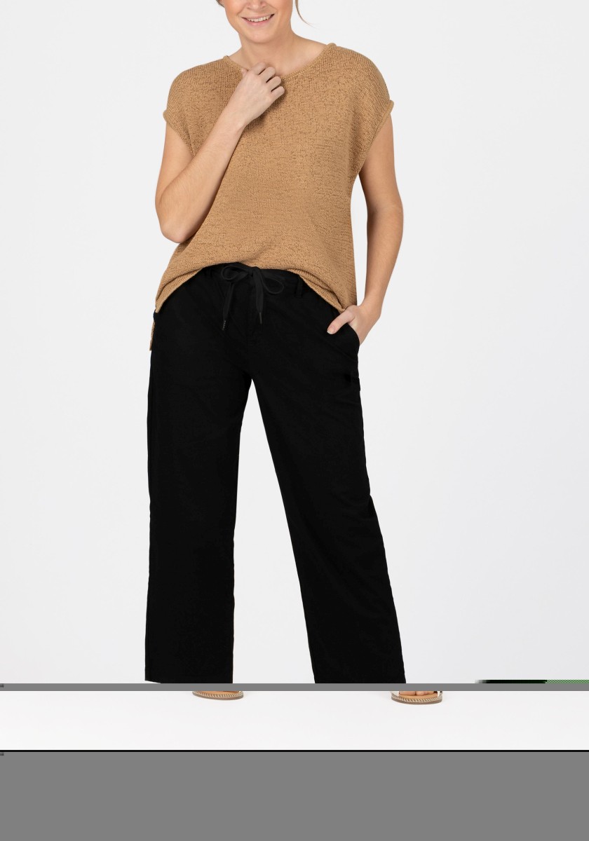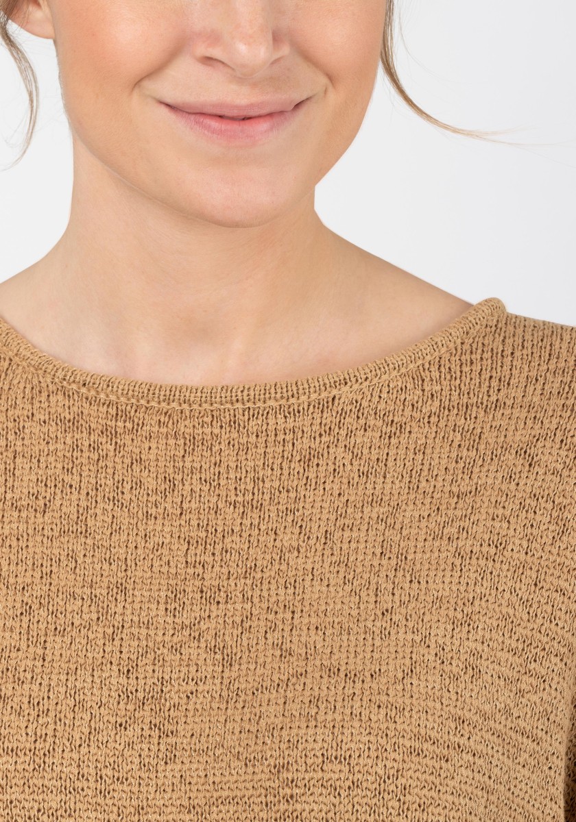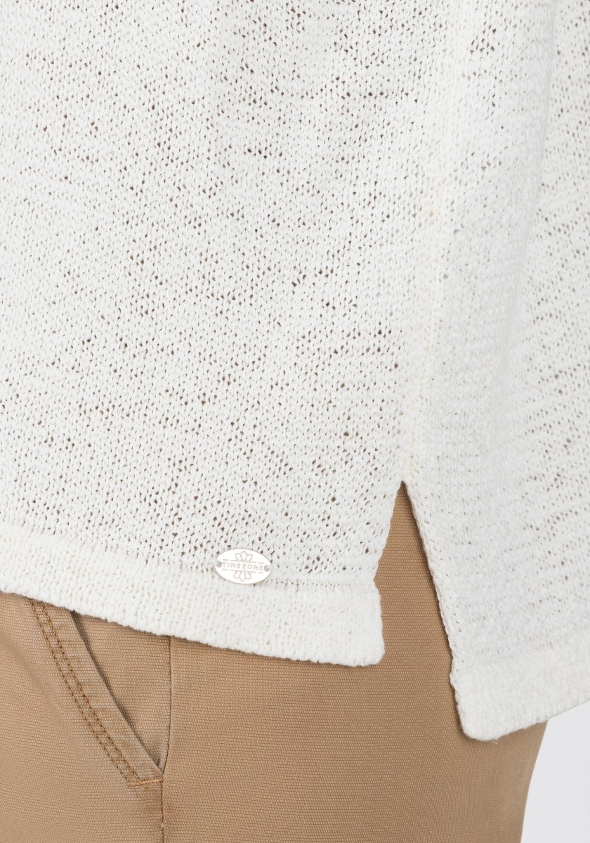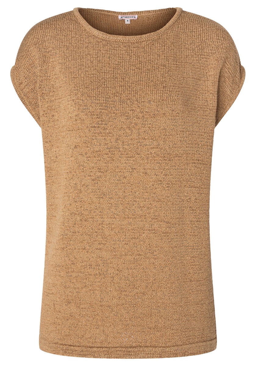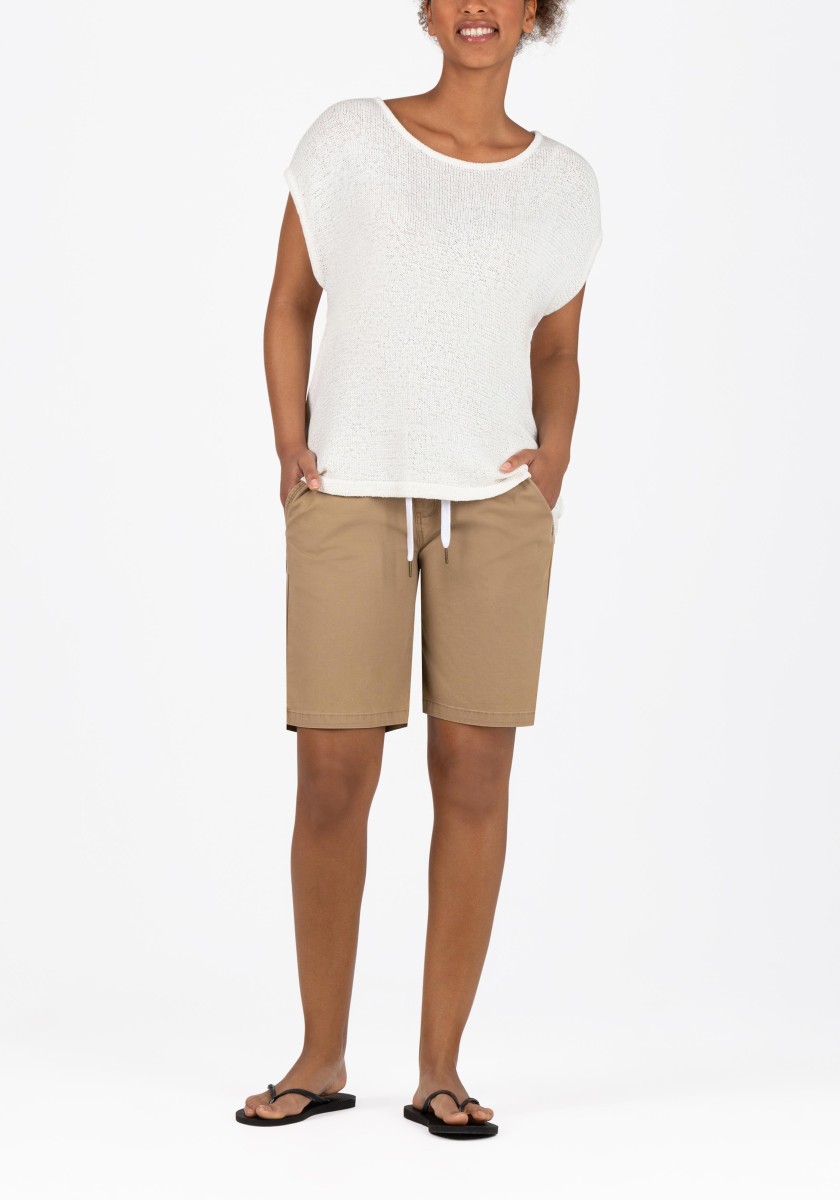 It can be combined in various ways, is ideal for a fashionable layered "more is more" look and is also perfect as a stand-alone piece: a sleeveless sweater. The cool mesh piece has a loose, relaxed fit with a wide neckline, dropped shoulders, deep armholes and a straight, draped hem. The high quality ribbon yarn in a summer cotton blend is ideal for warm days, it is airy and breezy and has a dry, slightly cool feel.
