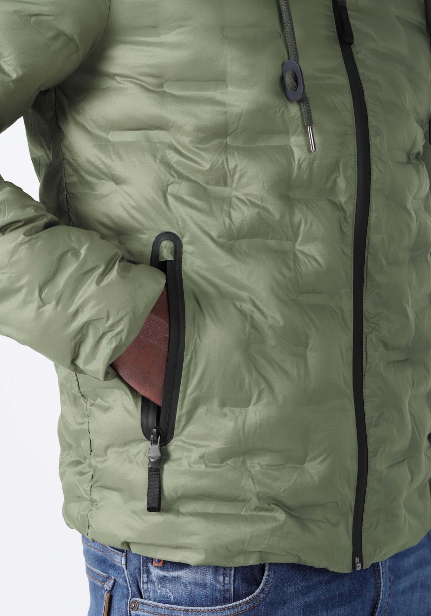 Wearing comfort at the highest level: ultra-lightweight high-performance jacket made of water-repellent crinkle quality nylon and breathable, high heat retention Sorona® filling. Quilted jacket style enhancement: the chambers are glued, not quilted, offering a completely new, modern look. Model with stand-up collar, waterproof functional zippers and adjustable drawcord. Inside: contrast lining and zipped pocket.