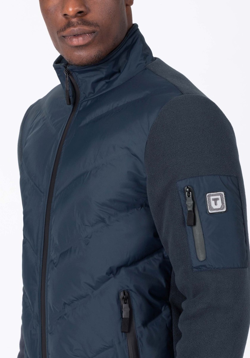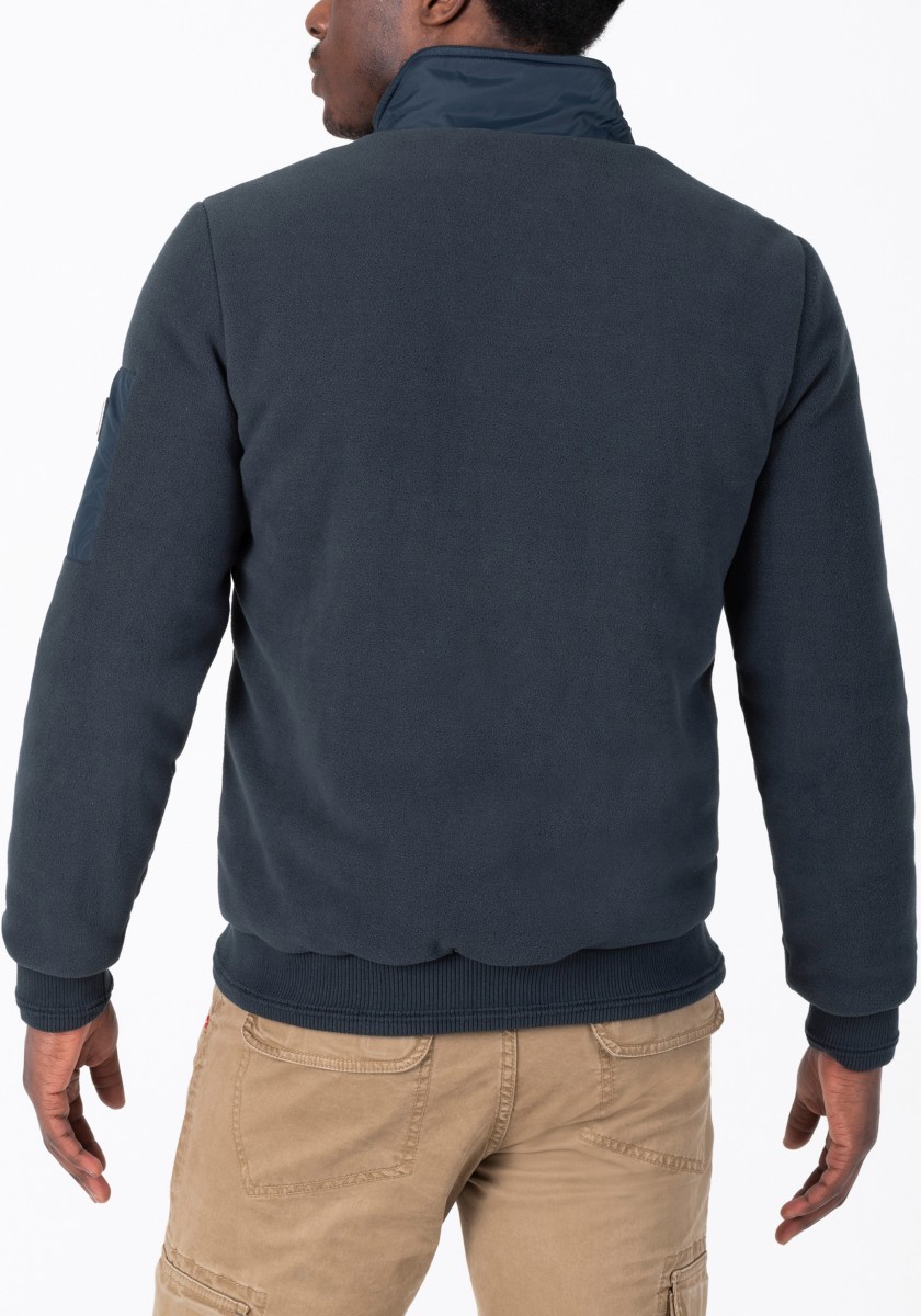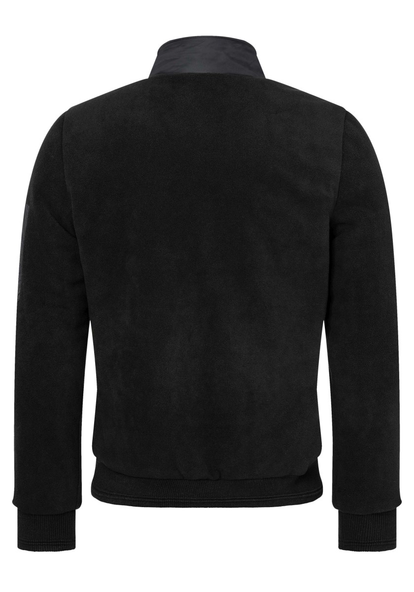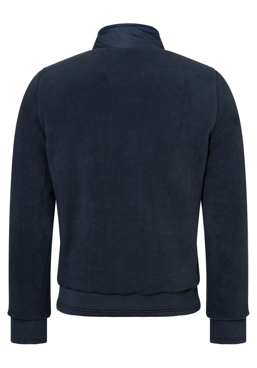 Elegantní sportovní vzhled: ležérní bunda ve stylu teplákové soupravy z mimořádně měkkého, hladkého žerzeje interlock s jemným melanžovým efektem. Klasický střih s vysokým stojáčkem, dvojitou podšívkou, lehce polstrovanou a prošívanou ramenní částí, šikmými lemovanými kapsami a žebrovanými manžetami a lemem. Pozornost věnovaná detailům: kontrastní páska u krku, kovový zip s přívěskem s logem a kvalitní označení.