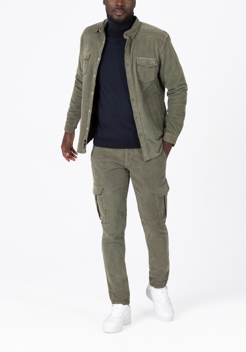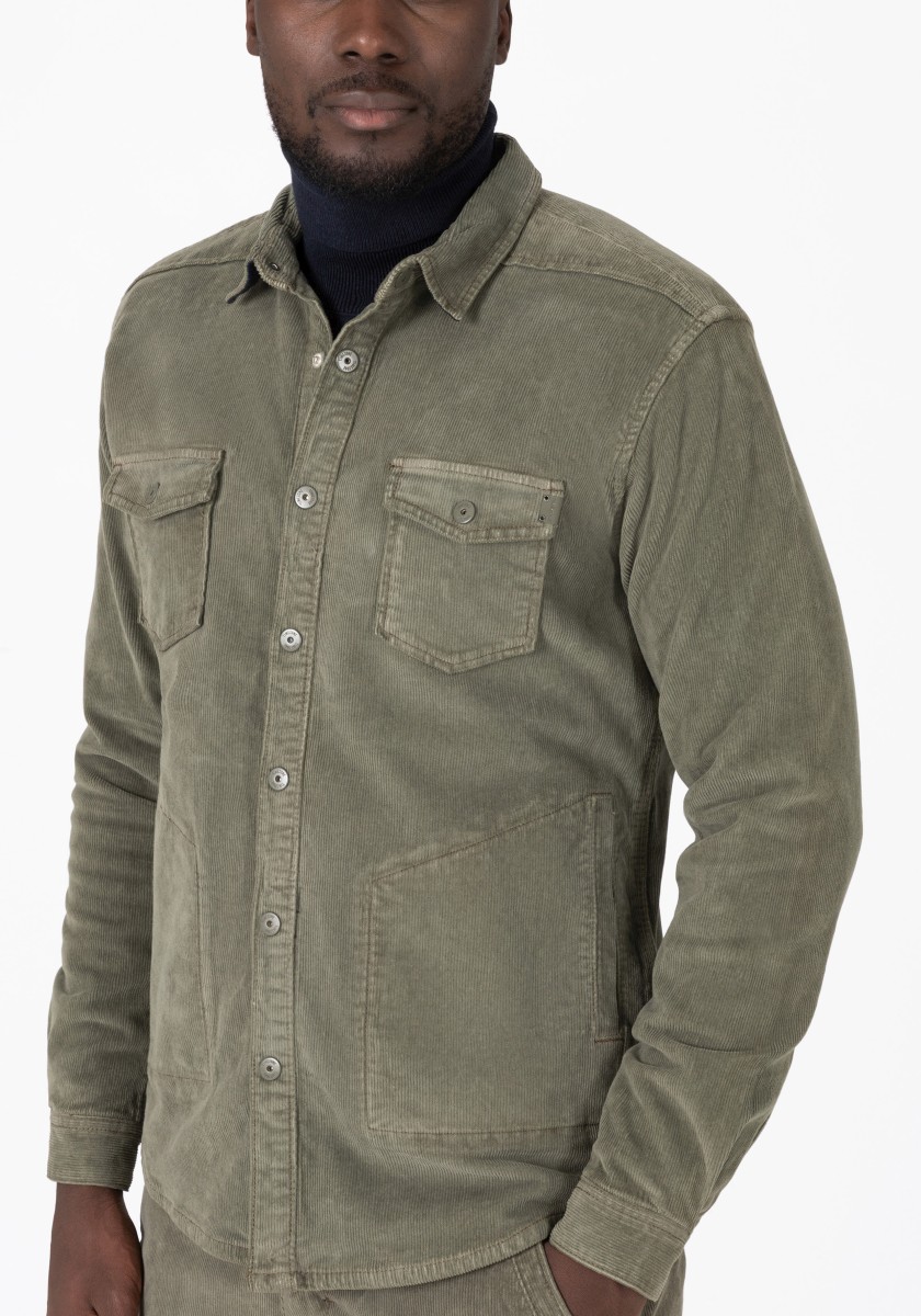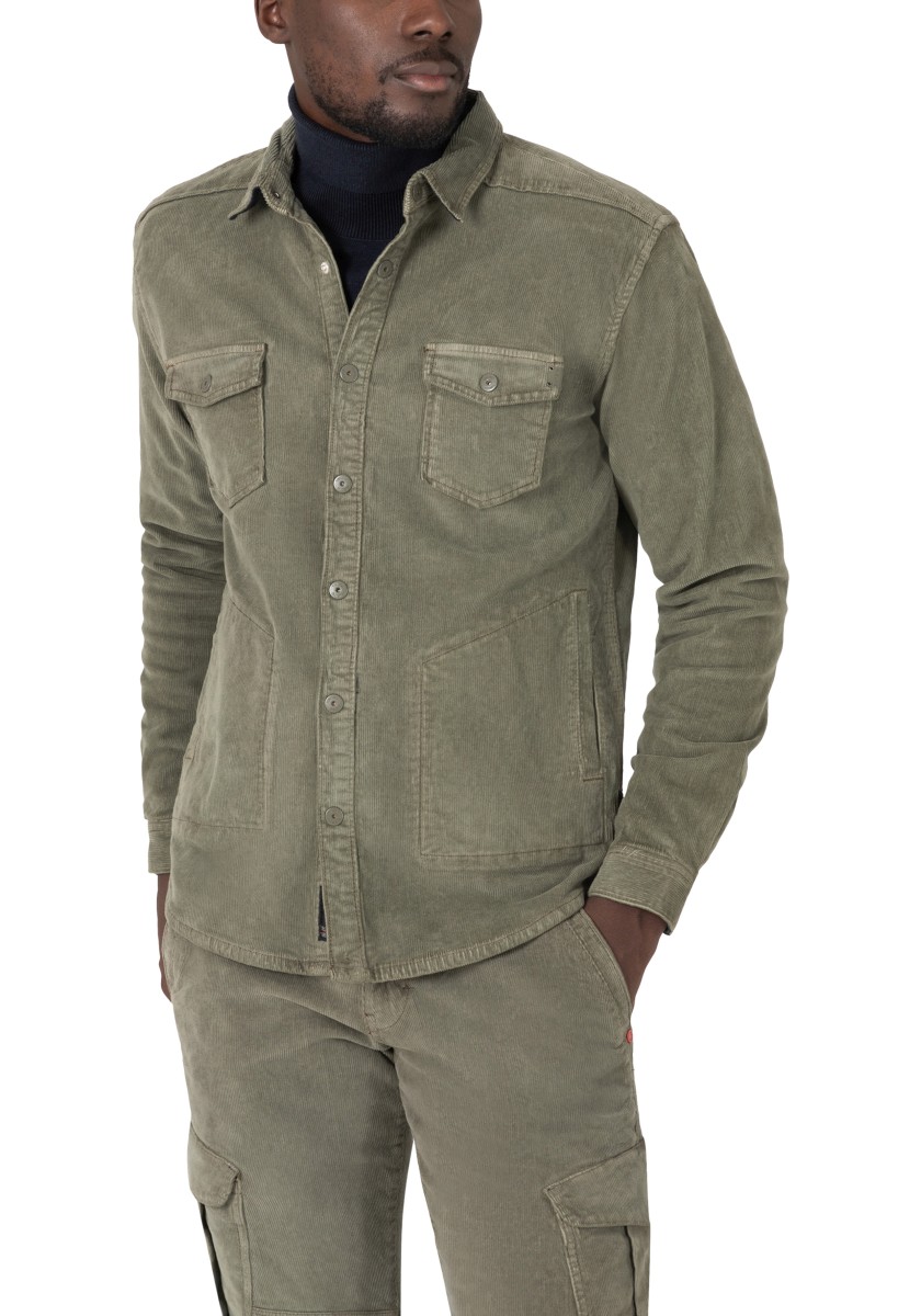 Can be worn in summer or winter, closed or open and goes with all jeans, chinos, sneakers and boots in your existing wardrobe: the overshirt made of robust, dyed stretch cotton corduroy. With Kent collar, patch chest flap pockets, snap fastener, classic shirt sleeve design, back yoke, two practical side pockets and a rounded hemline. High-quality: The striking lining with a masculine checked pattern.