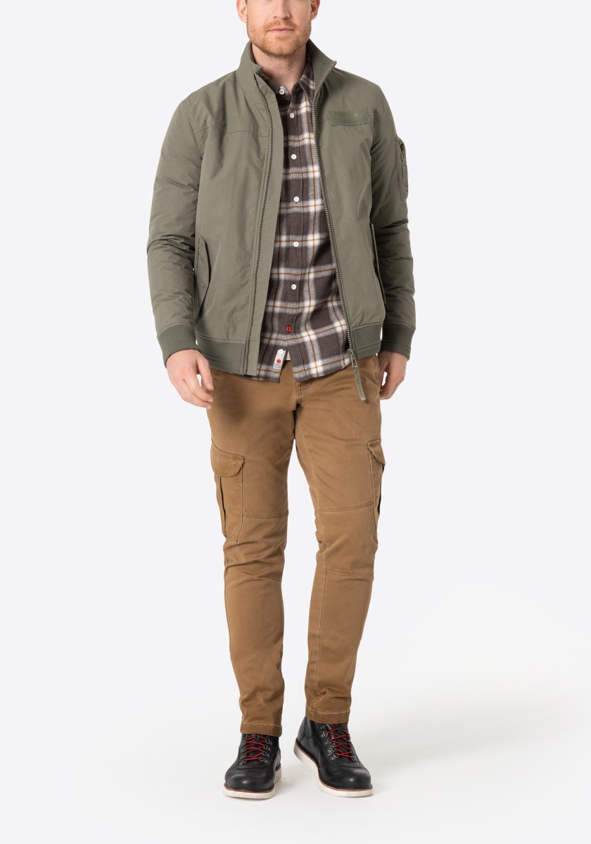 Dokonalá ochrana před chladem a špatným počasím: parka vyrobená z vysoce kvalitní, voděodpudivé bavlněno-nylonové funkční tkaniny. Parka má odnímatelnou nastavitelnou kapuci s krátkým kšiltem, pět praktických vnějších a dvě další vnitřní kapsy a také tvarovaný střih rukávů se záplatami a manžetami. Podšitá a vatovaná bunda se zapíná na skrytý a podložený zip s légou na druky. Stahovací šňůrka v pase reguluje šířku.