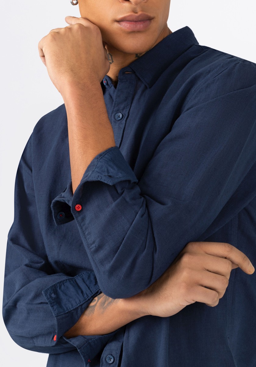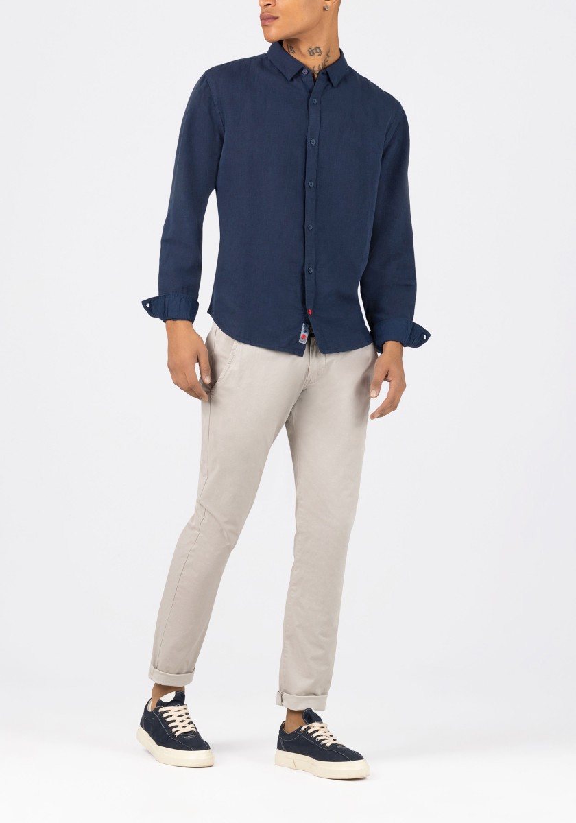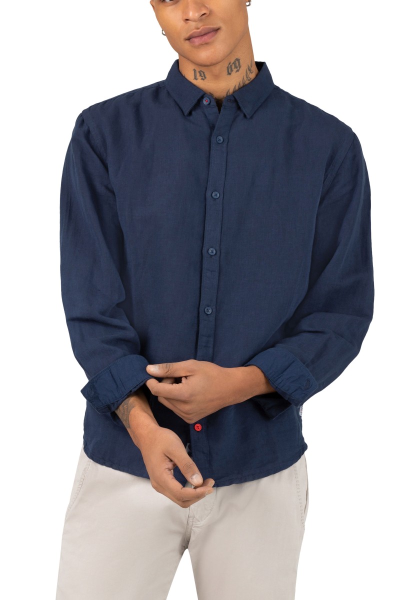 Fashion trend: linen shirts. Clean design, casual and made of a noble blend of high-quality materials: the long-sleeved shirt in cotton and linen. Relaxed regular fit with narrow concealed button collar, quilted button placket and rounded hemline. Special features: many details, such as pitorette triple stitching on the side seams, small buttons in a contrasting colour and seam reinforcement on the side hem. Style tip: combine over a plain white T-shirt with a round neck.