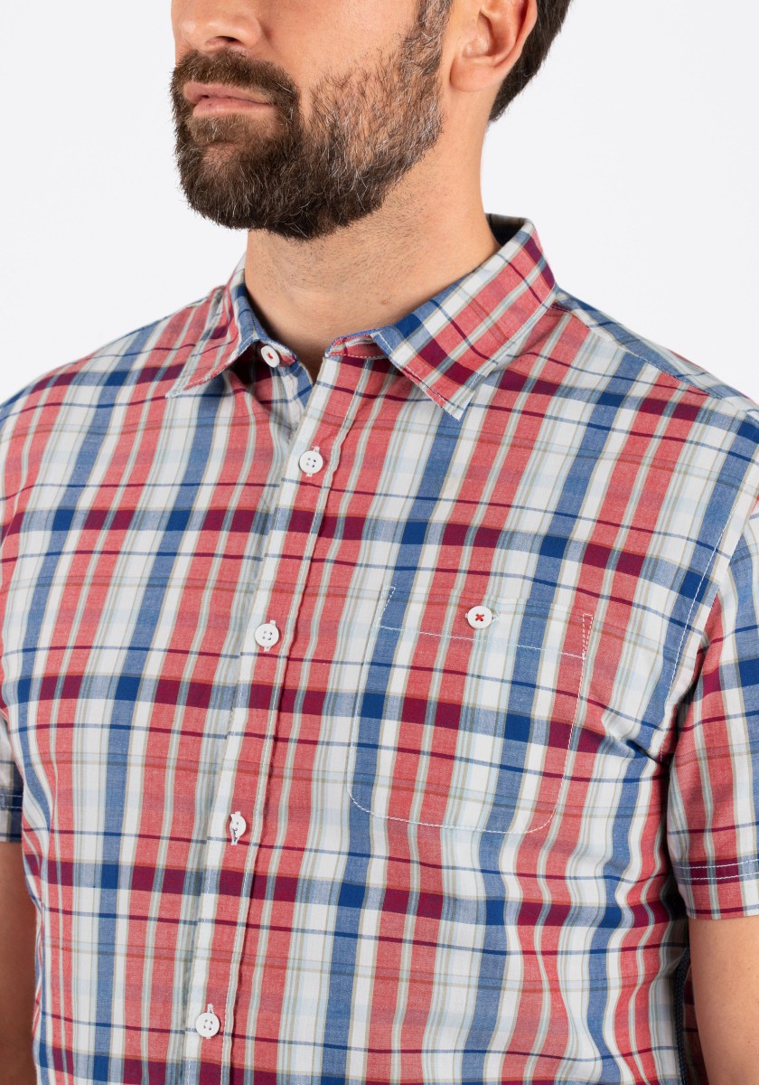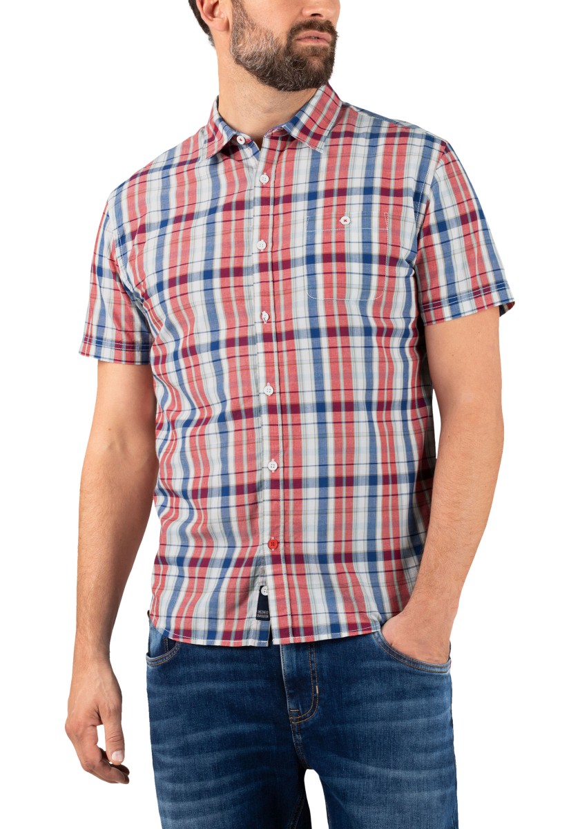Again, there is only one tip for styling plaid shirts. Please do not combine them too well or classically. Mix them with modern trendy pieces. Short-sleeved shirts with a kent collar and a patch pocket. The smooth, yarn-dyed quality and regular fit cut promise a comfortable wear. With special details: the inside of the collar band and shoulder yoke are in placket, the side seams have durable triple stitching.