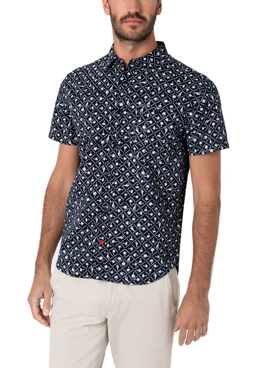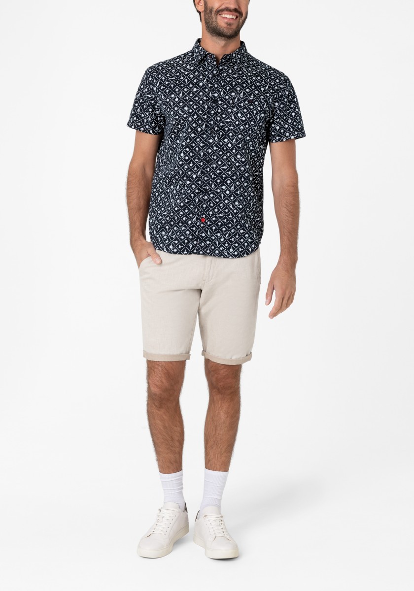 The noble flax shirts of natural fibers are incredibly practical on hot days. Len will not only cool you, but are also breathable. Casual summer basic shirts with short sleeves in classic regular cut has a Kent collar, sewn button leég, sewn pocket for buttons and a round lower hem. Striking: nationwide print and many details such as robust triple stitching on the side seams, fine contrasting details and reinforced seams on the hem.