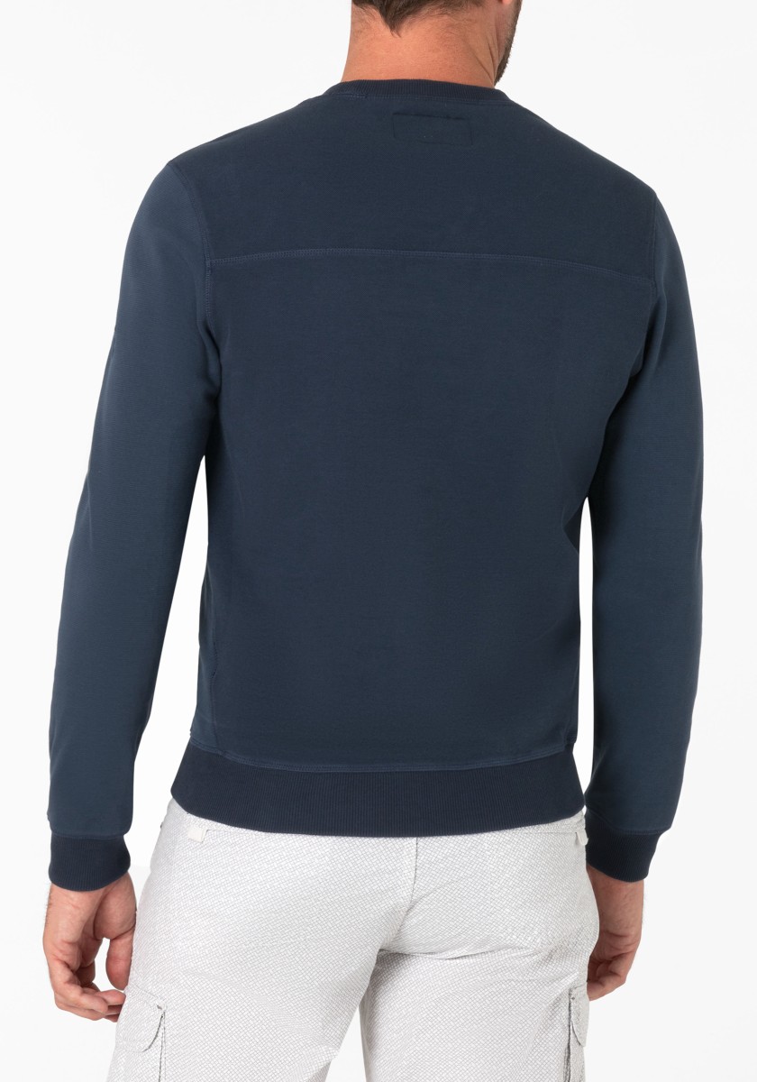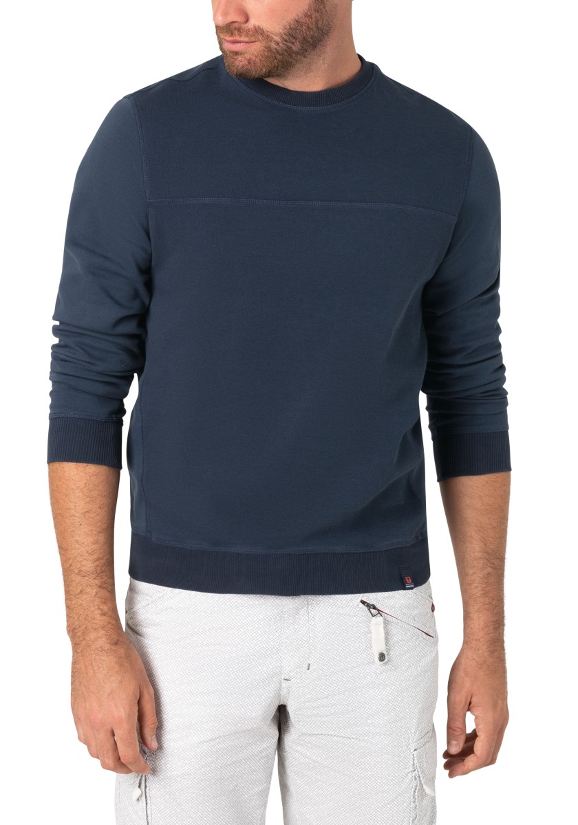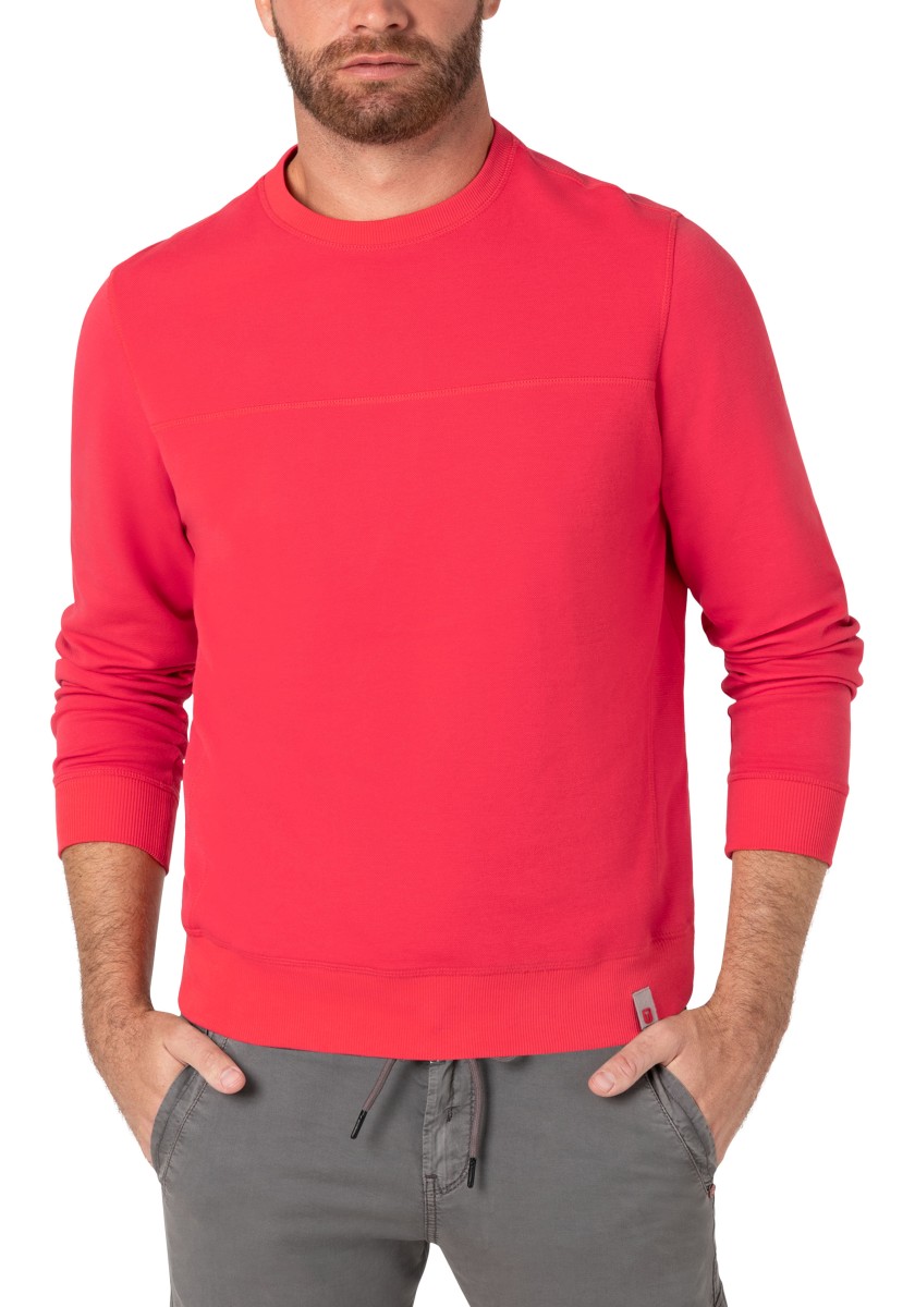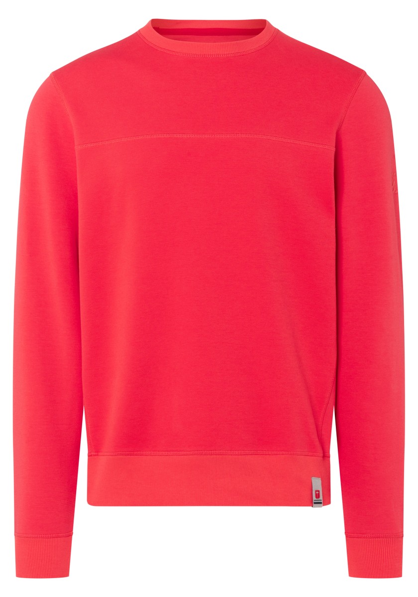 The sweatshirt is a simple foundation that can be combined with almost everything. He feels comfortable in any style and can do everything from sports to elegant to elegant and casual. The model in high -quality two -leaf pike quality made of soft cotton mixture is presented by granular outside and inside in the Otomanian structure. Modern look with ribbed neckline, transverse seams, triangular insert on the side seam, inner sleeves and ribbed cuffs.