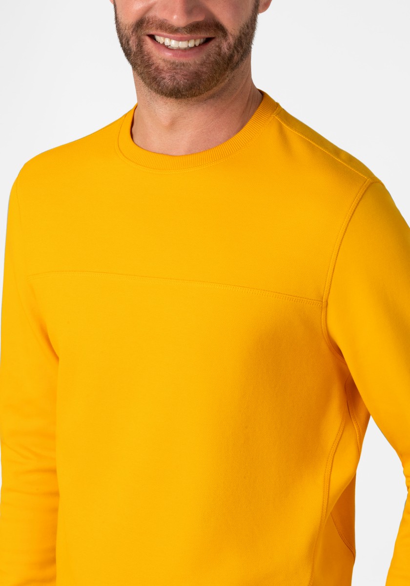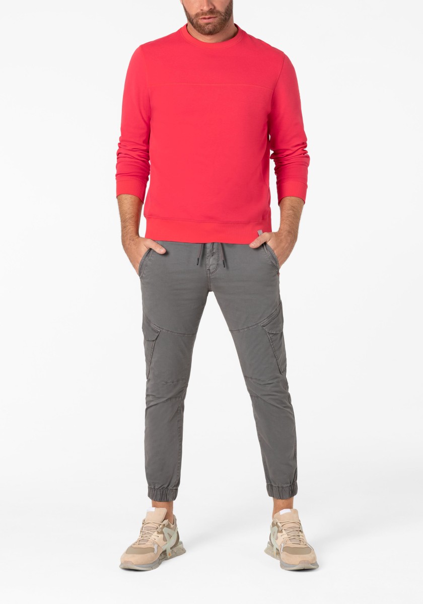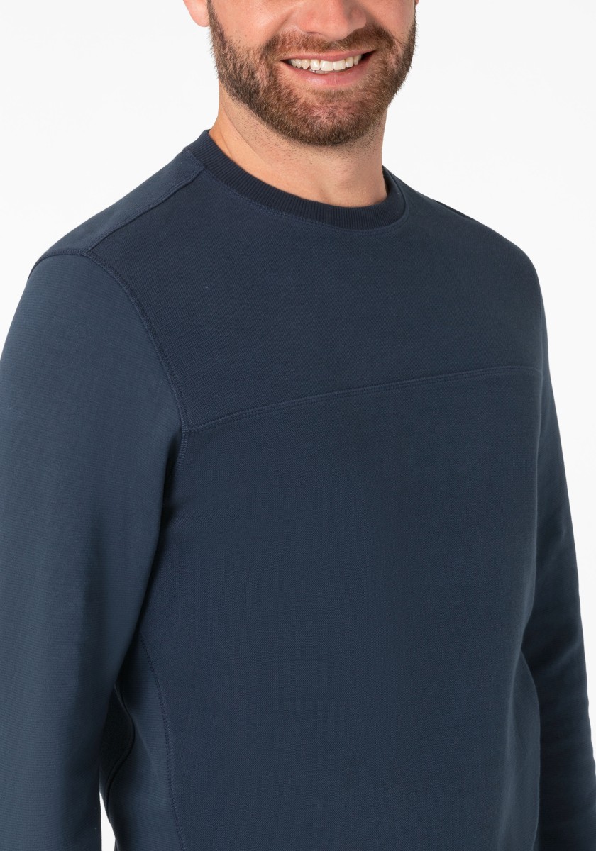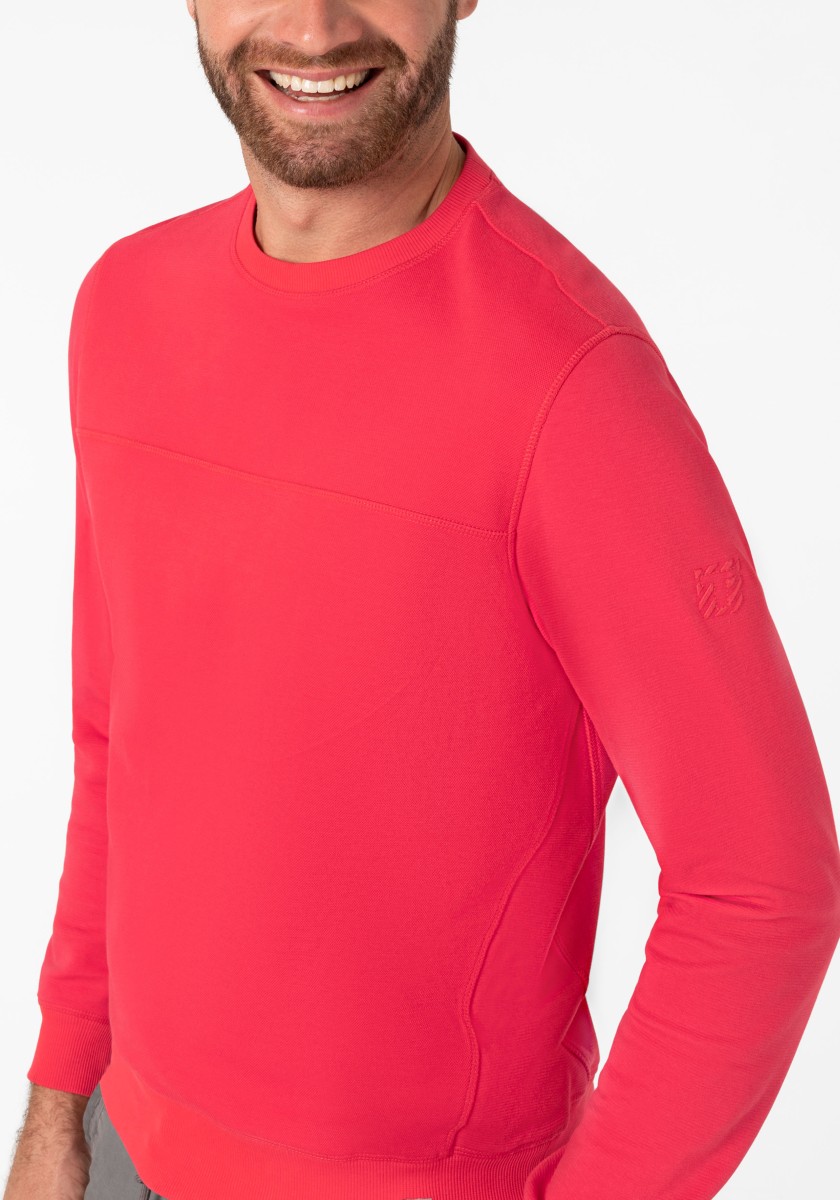 The sweatshirt is a simple foundation that can be combined with almost everything. He feels comfortable in any style and can do everything from sports to elegant to elegant and casual. The model in high -quality two -leaf pike quality made of soft cotton mixture is presented by granular outside and inside in the Otomanian structure. Modern look with ribbed neckline, transverse seams, triangular insert on the side seam, inner sleeves and ribbed cuffs.