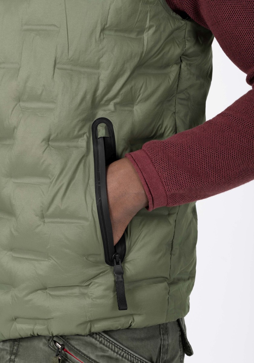Pohodlí při nošení na nejvyšší úrovni: ultralehká vysoce výkonná vesta z vodoodpudivého nylonu crinkle quality a prodyšné výplně s vysokou tepelnou retencí od firmy Sorona®. Vylepšení stylu prošívané vesty: komory jsou lepené, nikoli prošívané, což nabízí zcela nový, moderní vzhled. Model se stojáčkem, voděodolnými funkčními zipy a ochranou brady. Elastické: průramky a spodní lem. Uvnitř: kontrastní melanžová podšívka a kapsa na zip.