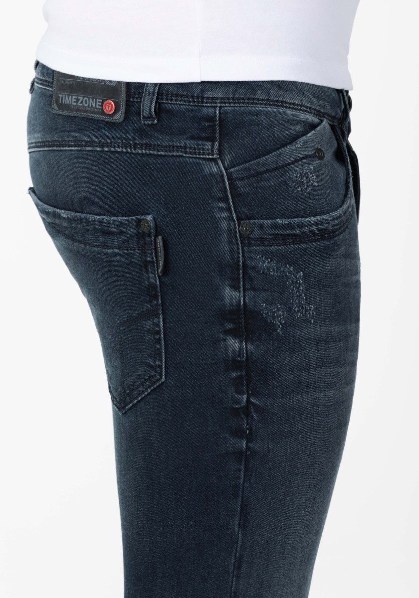 The clamped cut bridges the gap between the skinny fit and the slim fit - it is versatile and without exception flatter the figure. Due to the clamped silhouette here plays the most important role of editing. This elegant denim model has a modern cut with five pockets and blue-black washing with folds of the seat, fine abrasions at the edges of pockets and light destroys the details. Thanks to the minimum effect, jeans look extra casual: cool shape of the rear pockets.