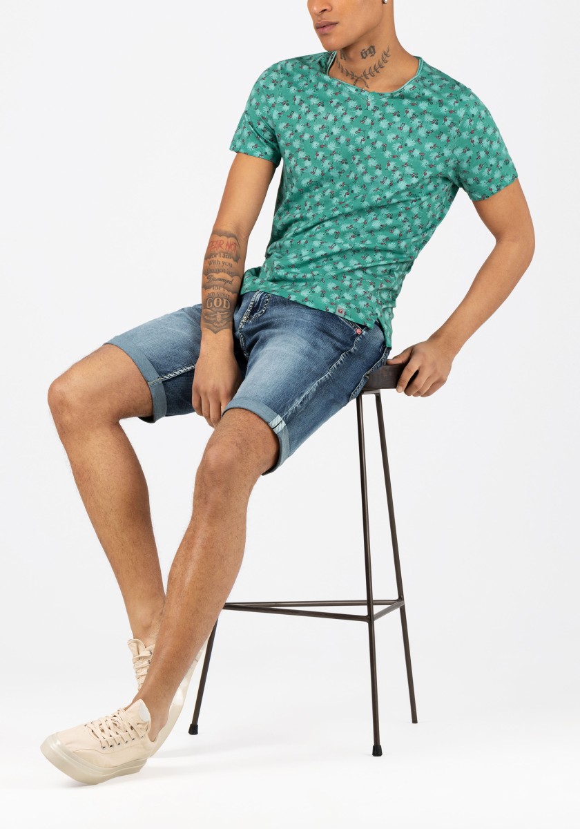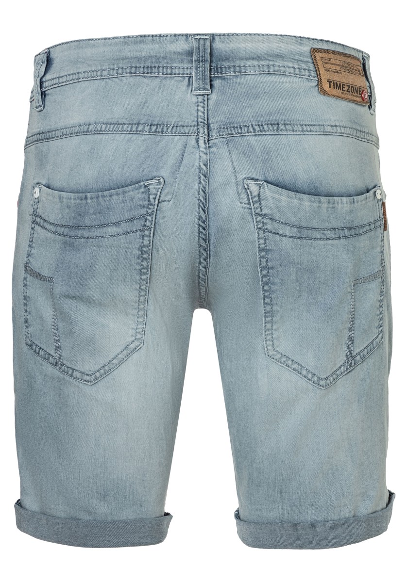 They keep up with every move and are a fashion classic: ultra-comfortable, stretchy shorts in lightweight denim-quality cotton. In an optimally relaxed slim cut with a medium high waist and short narrow legs. The model is in a very light, elegant aqua blue wash with picturesque seam details. In a modern style with five pockets, they are the ideal summer staple. If you want, you can casually roll up the pants to reveal the cool side seams.