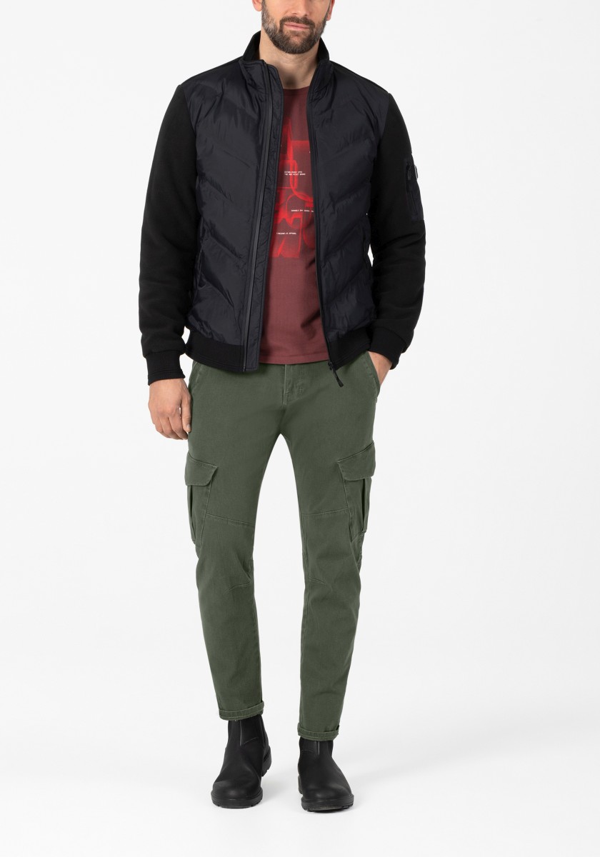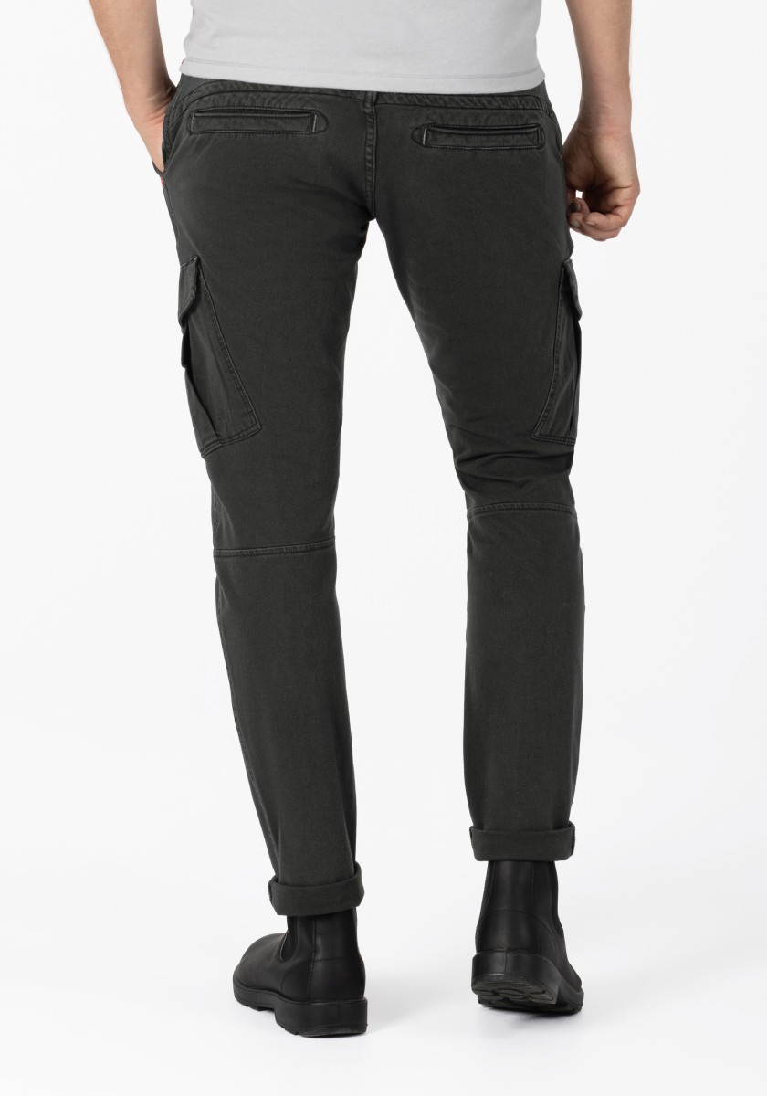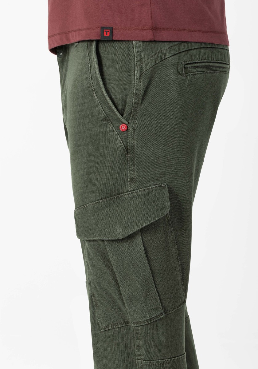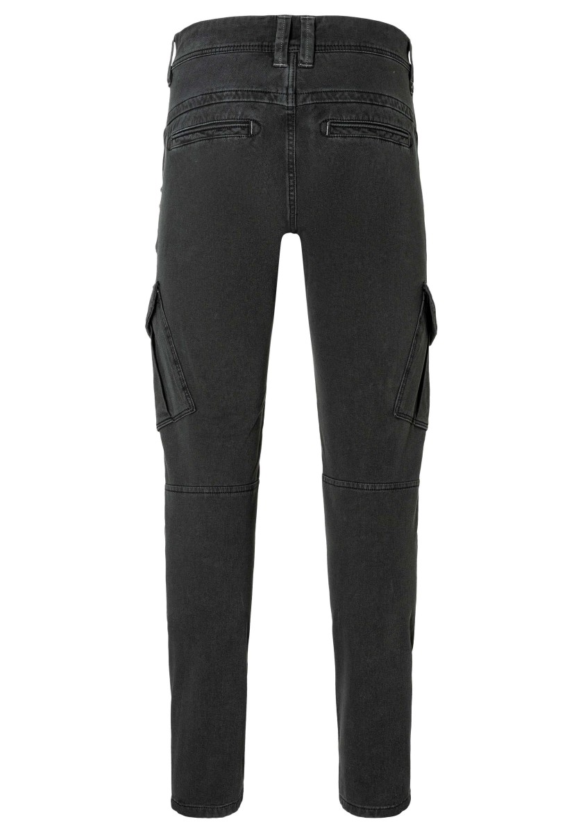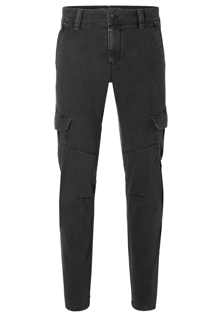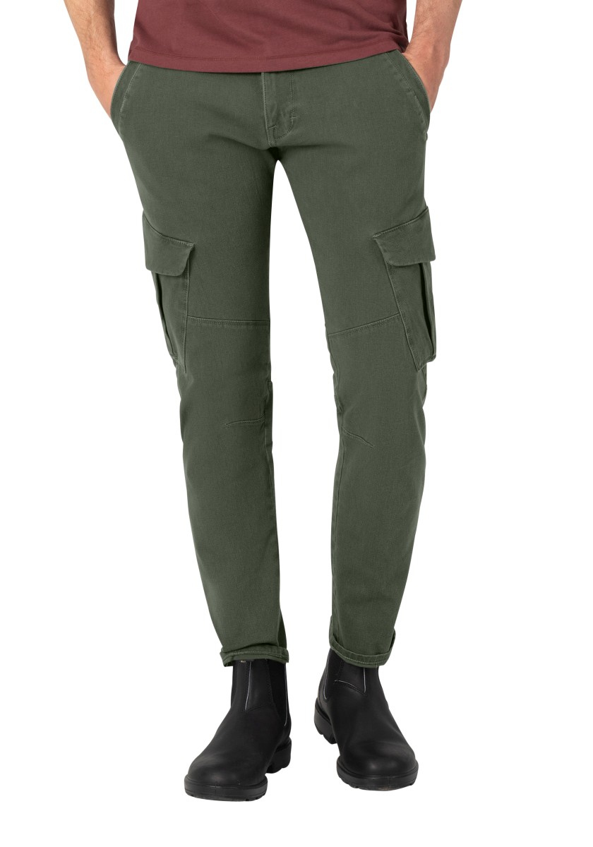 Od 90. let jsou na začátku každé sezóny: cargo kalhoty. Nyní s modernějším designem a nově vyvinutými, ještě pohodlnějšími látkami. Tento model je vyroben z elastického, vysoce kvalitního a robustního bi-stretch dobby kvality ve směsi bavlny a má pravidelný střih se středním pasem a štíhlými nohavicemi. Funkční a ležérní, cargo kalhoty lze obzvláště dobře kombinovat se sportovními komponenty, jako jsou tenisky. Charakteristika: kapsy na bocích.