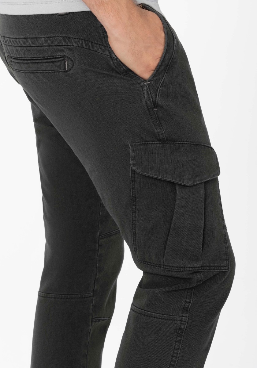 Since the 1990s they have been at the beginning of every season: Cargo pants. Now with a more modern design and newly developed, even more comfortable fabrics. This model is made of elastic, high-quality and robust bi-stretch Dobby quality in a mixture of cotton and has a regular cut with a medium waist and slender legs. Functional and casual, cargo pants can be particularly well combined with sports components such as sneakers. Characteristics: pockets on the sides.