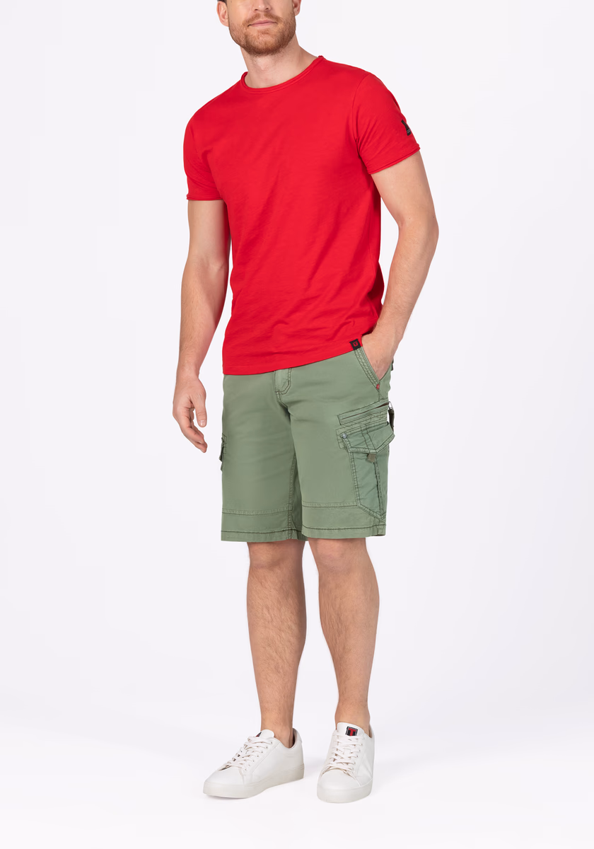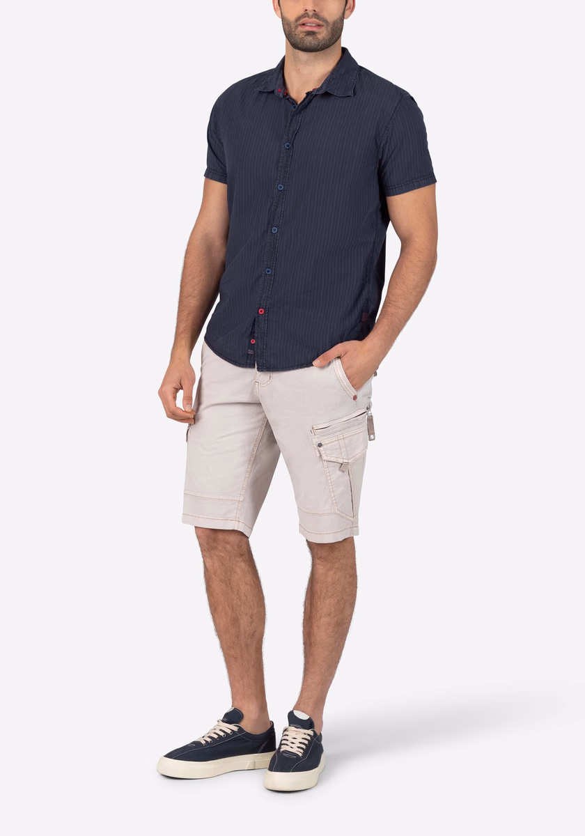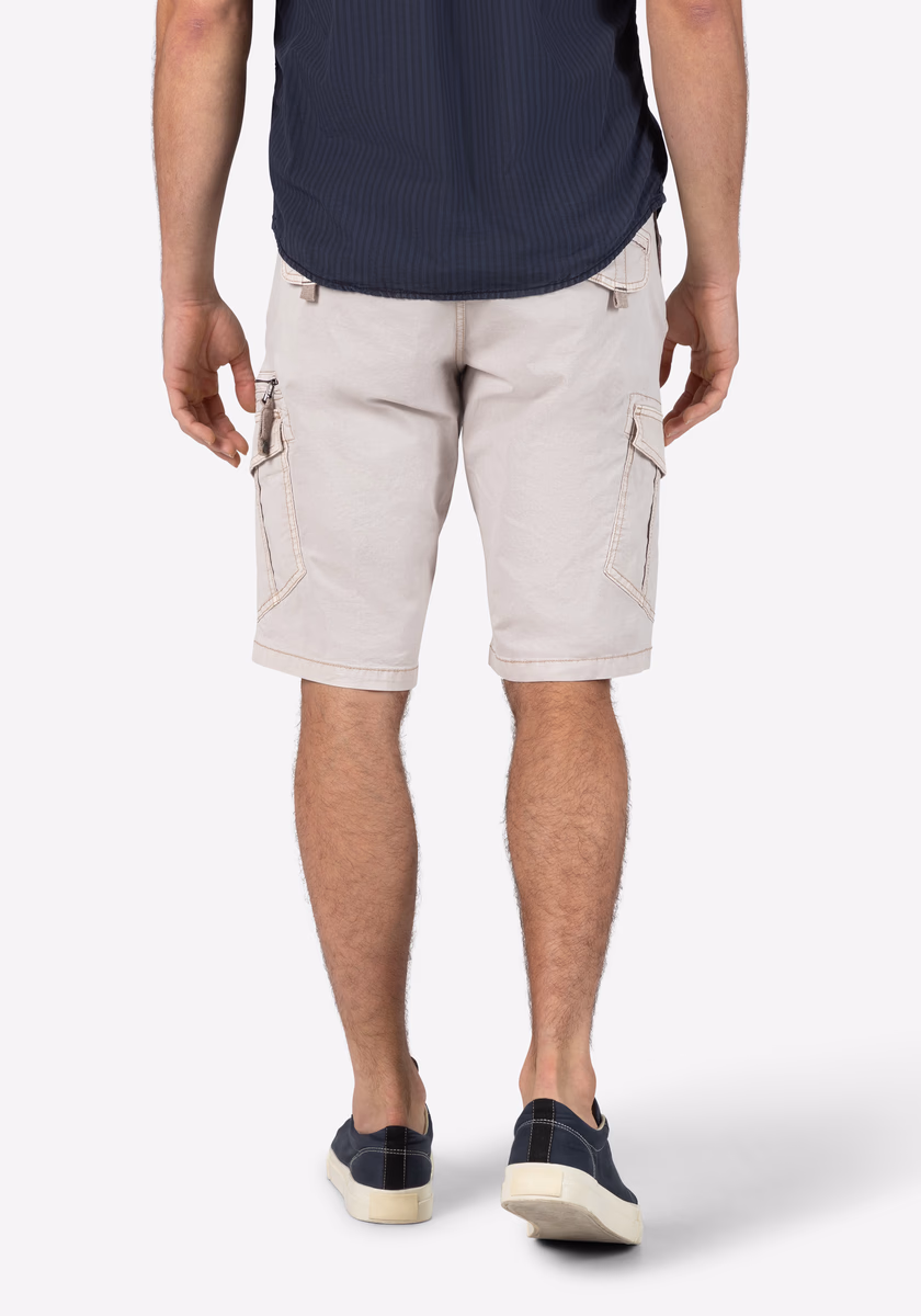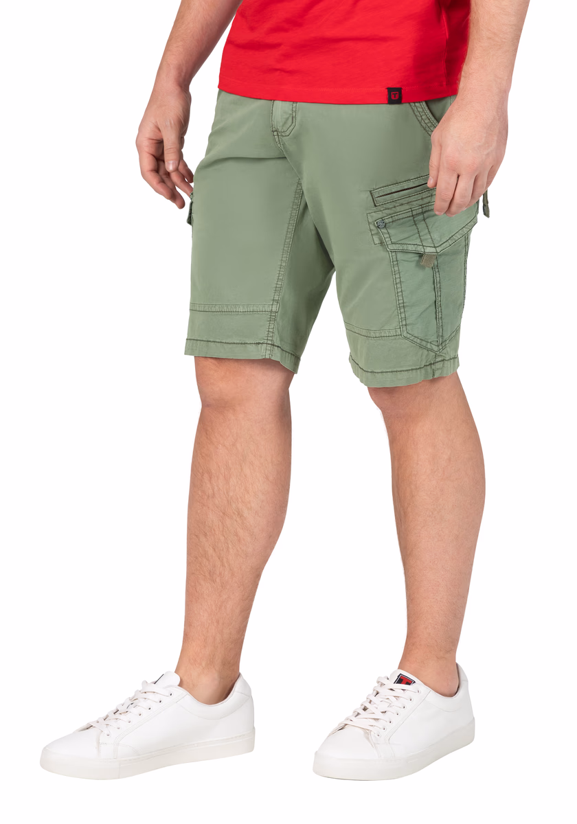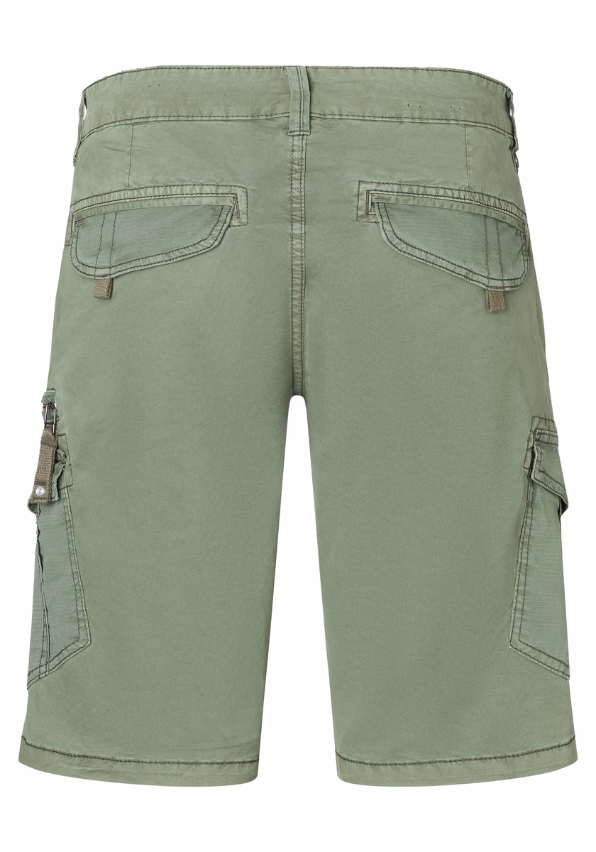 Lehký kepr se setkává s ripstopem! Ležérní cargo šortky s mužnými detaily jsou vyrobeny z robustní směsi materiálů z pružné bavlny. Model s klasickým pasem, boční kapsou na mince, kulatými kapsami s lemovaným okrajem vpředu a další jednostrannou kapsou na zip. Boční kapsy s patkou a dvě zadní kapsy s patkou se zapínají na patentky. Exkluzivní proces barvení a praní oděvů zajišťuje vintage chlad.