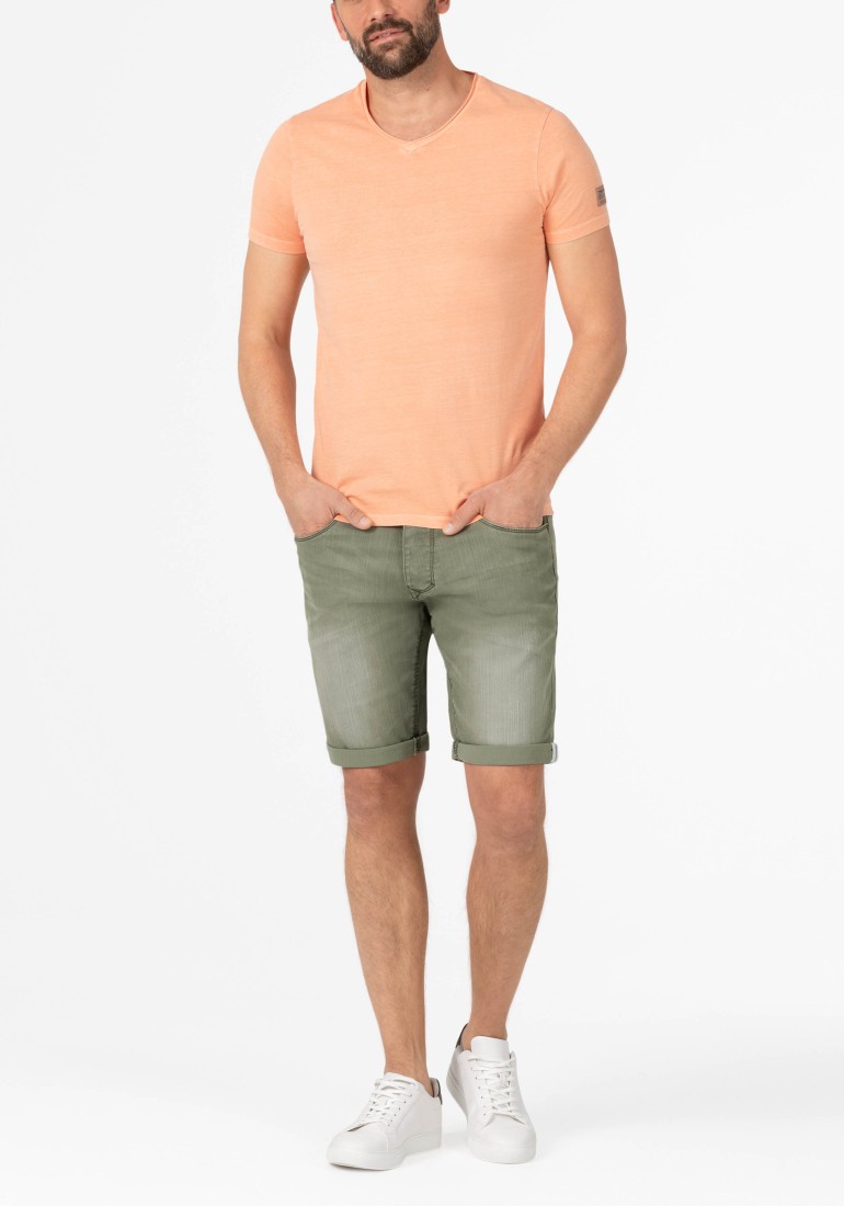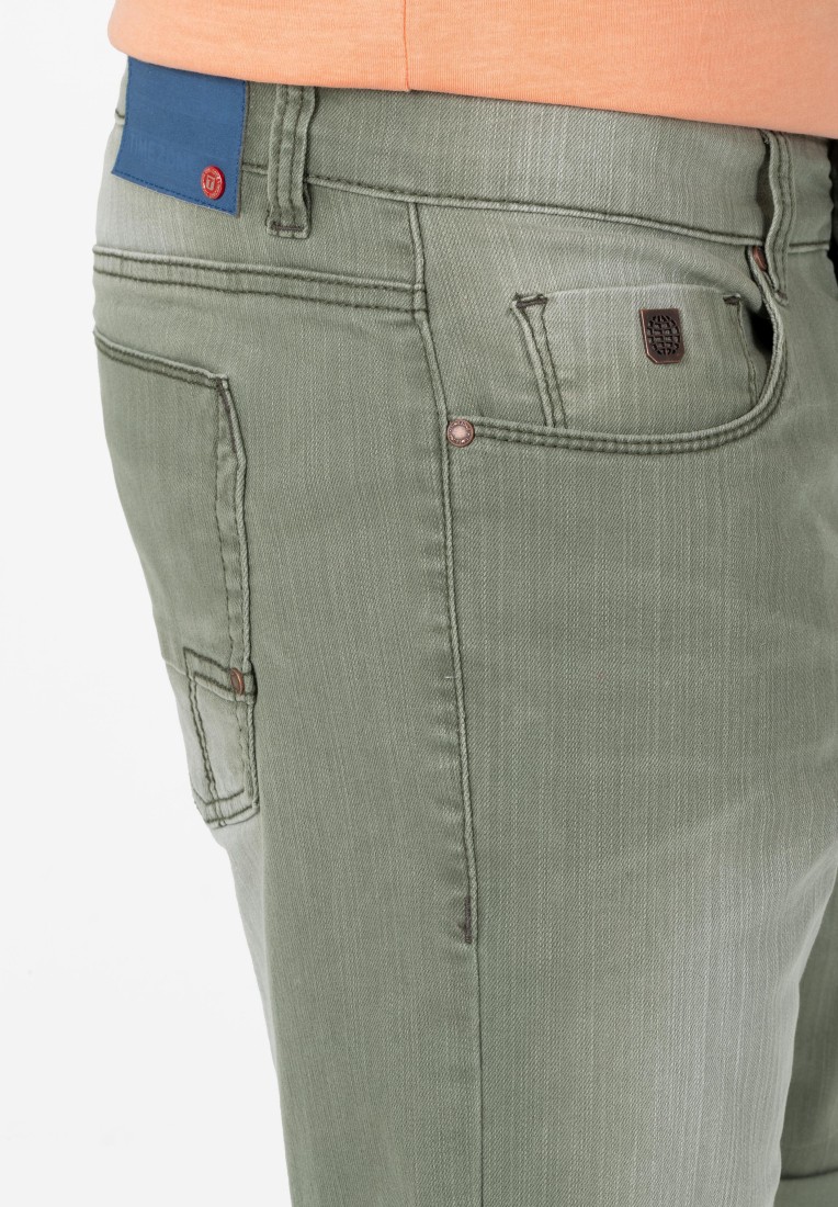 With the right styling, shorts are also suitable for the office. This extremely casual slim-fit model is made of compact, elastic, colored denim in a cotton-polyester blend and, in addition to the perfect cut, also has a perfect wash. Modern five-pocket design with cool back pockets, genuine leather waist tab and casually rolled up pant hems. The interior will surprise you with its sophisticated and stylish design.