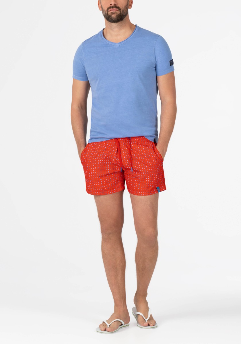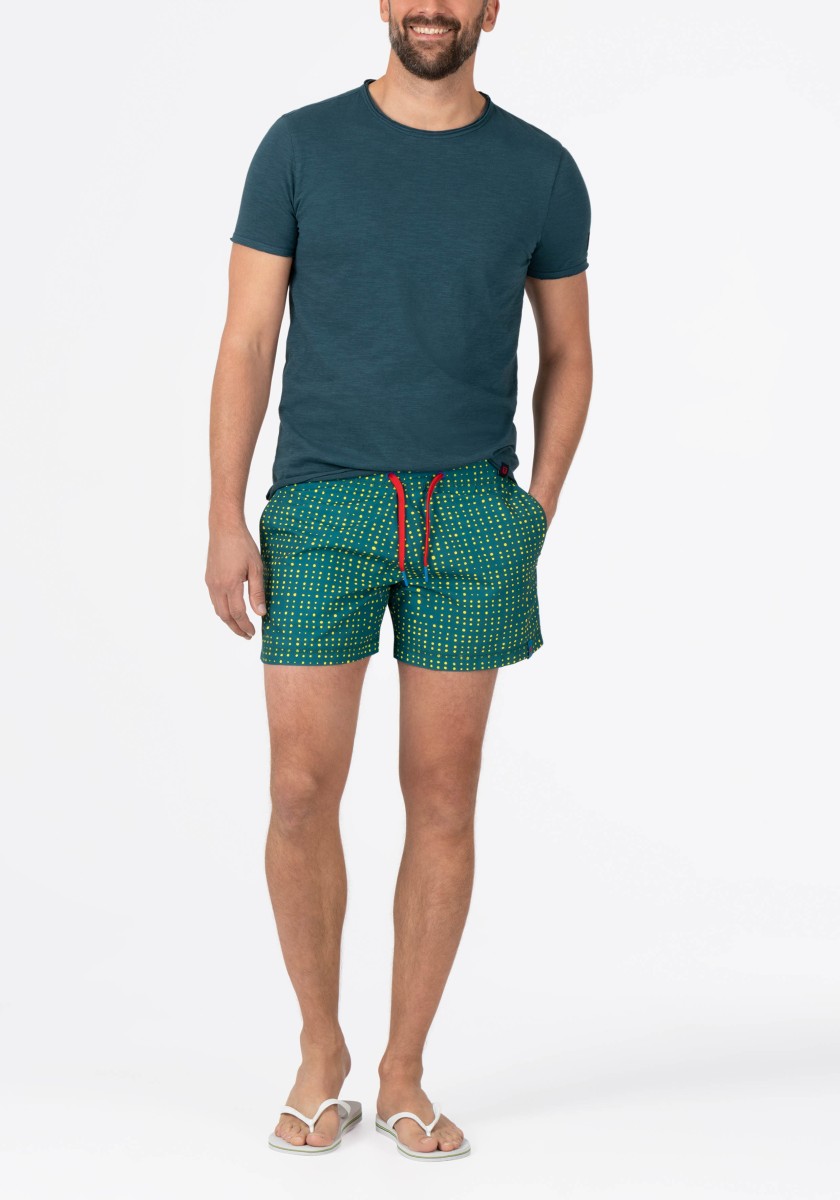 Perfect for swimming and sunbathing: casual bath shorts made of high -drying high -quality Micropeach quality. Comfortable and stylish with elastic waist, lanyard for tying and practical oblique front pockets. Soft, integrated mesh panties ensure a high level of comfort.