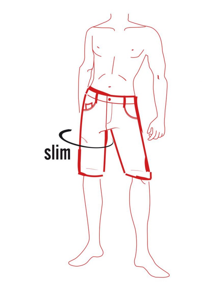 - Úzký střih s krátkými nohavicemi