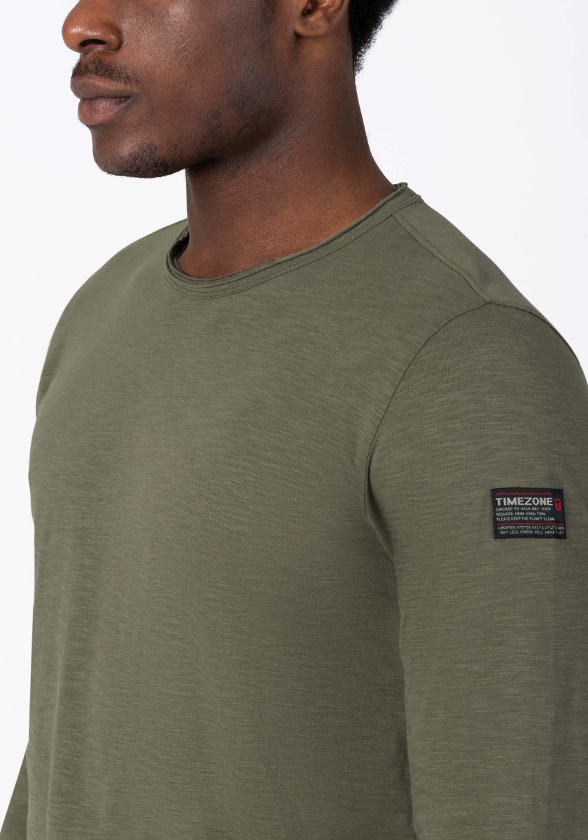 Clean design with long sleeves, a casual fit and ruffled edges at the round neckline, sleeve ends and hem. Quality: soft, lightweight slub jersey in high quality pure cotton. Comfortable: a subtle print at the neck replaces the uncomfortable woven label. The long-sleeved shirt is ideal as a base layer, but is also a great and pleasant alternative to sweatshirts and similarly as a stand-alone piece.