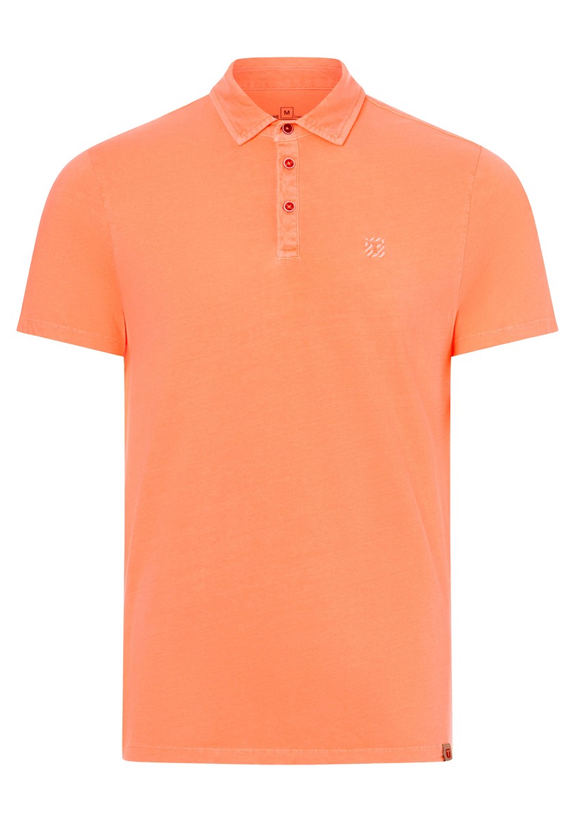 Universal polo shirt. You can combine it in many ways, it always looks fresh and sporty and sometimes it can be elegant. Styling is important. A classic cut with an outer fabric collar, short sleeves and a straight hem with slits at the sides. Model made of pure garment-dyed cotton in timeless, lightweight single jersey quality. With special details: a very narrow button placket with a contrasting button and an elegant, matching logo embroidery on the chest.
