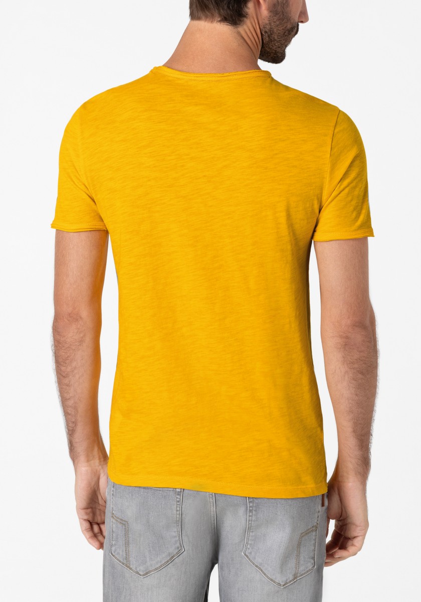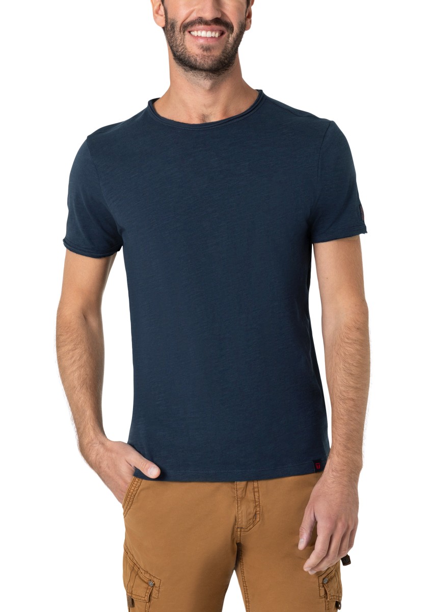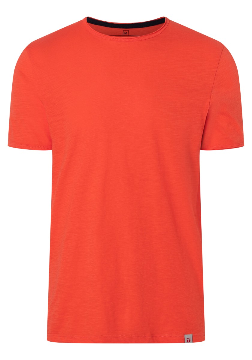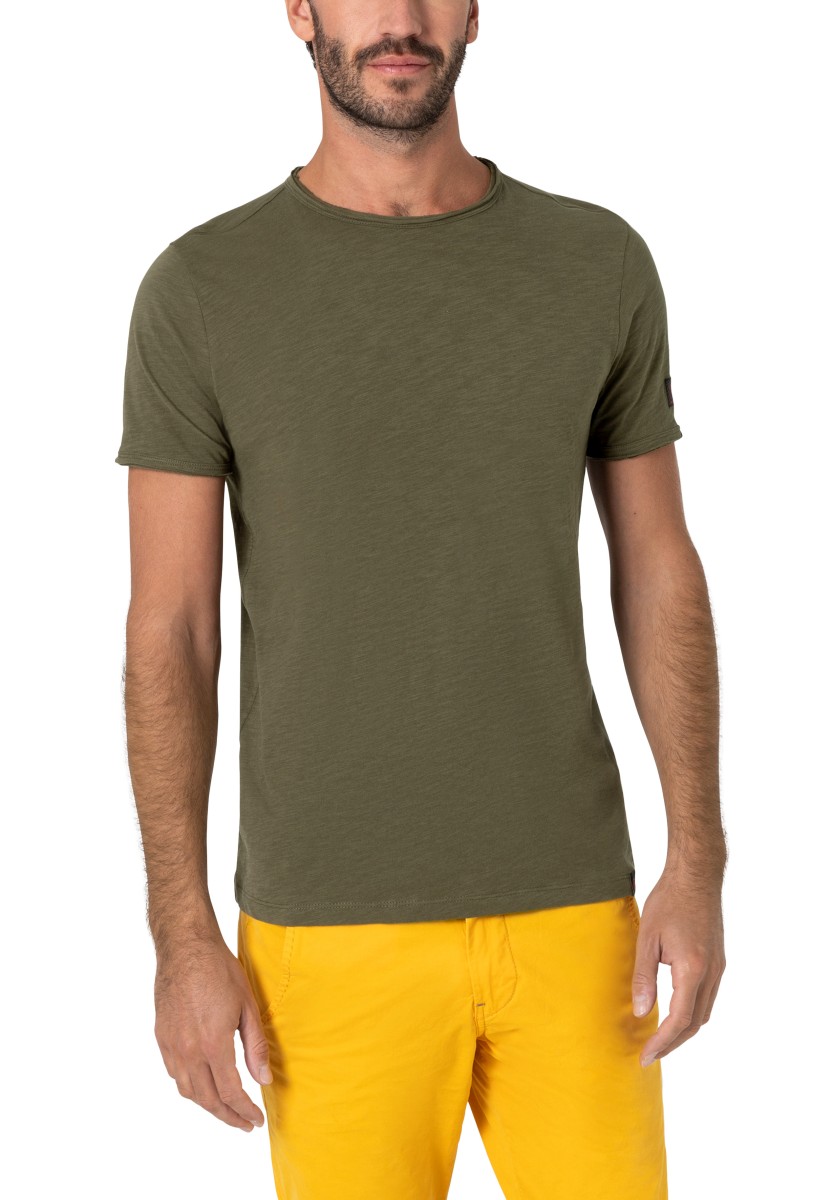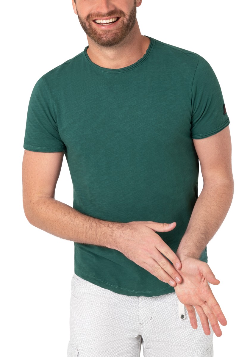 Clean T -shirt design with casual cut and rolled edges on the neck and cuffs. Quality: Soft jersey fabric made of high quality clean cotton. It is characterized by an irregular, living surface, which is the result of deliberate thickening of the yarn. Pleasant: Fine print on the neck is replaced by a annoying woven label. Available in a wide range of colors.