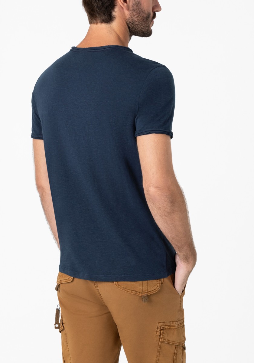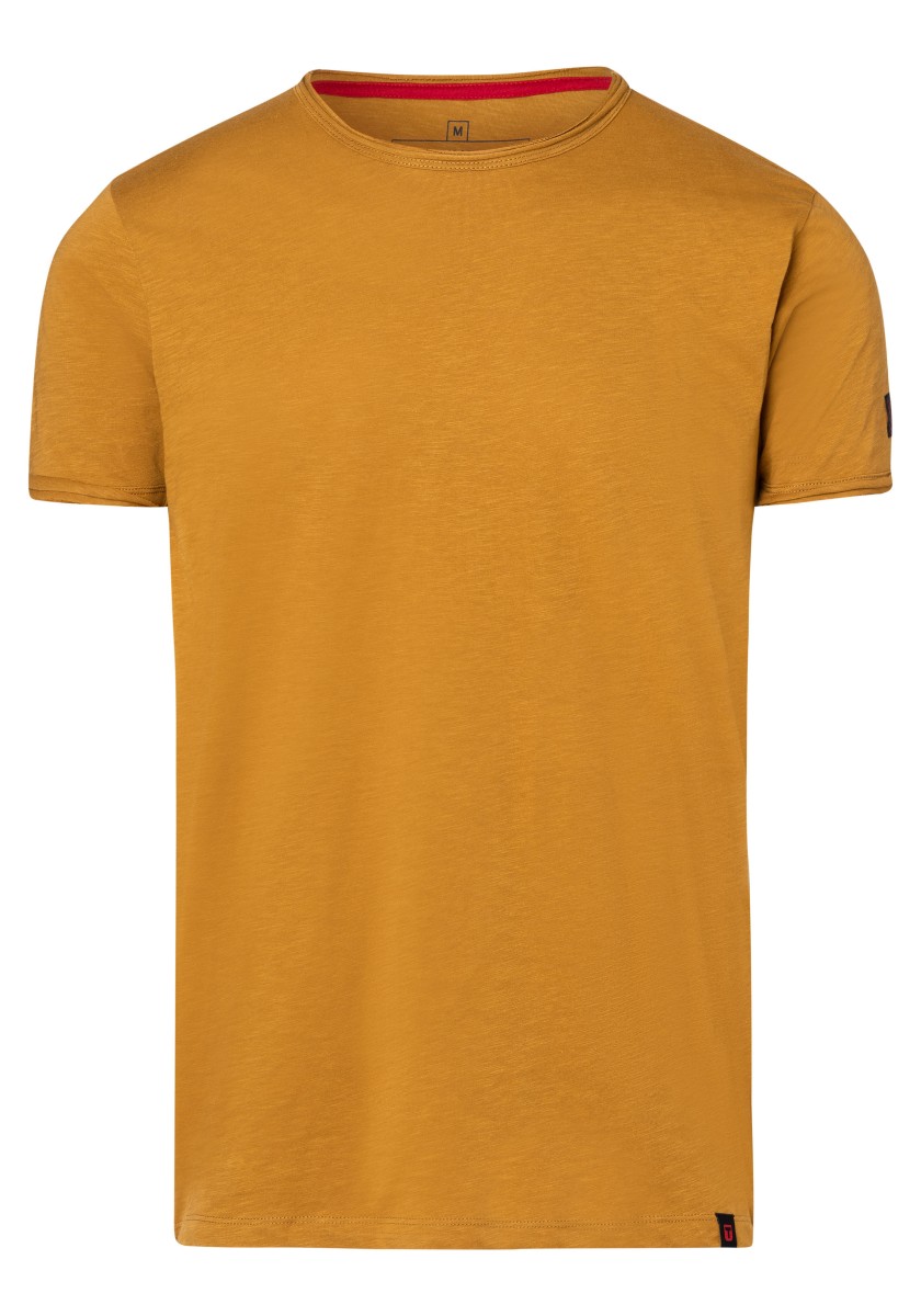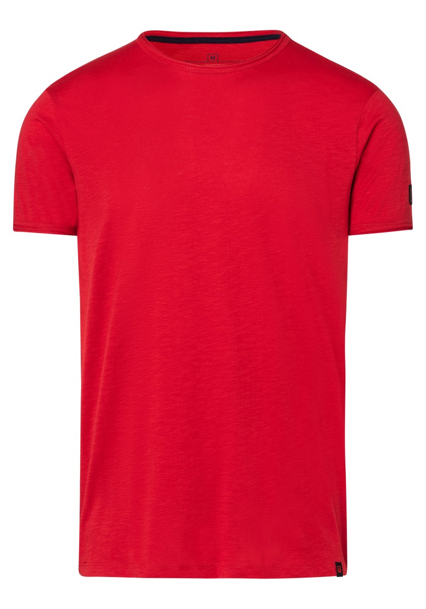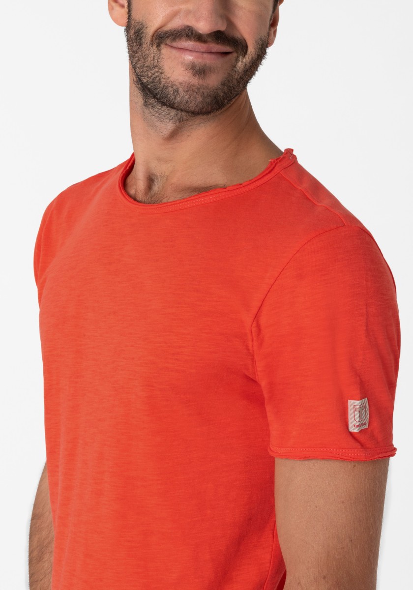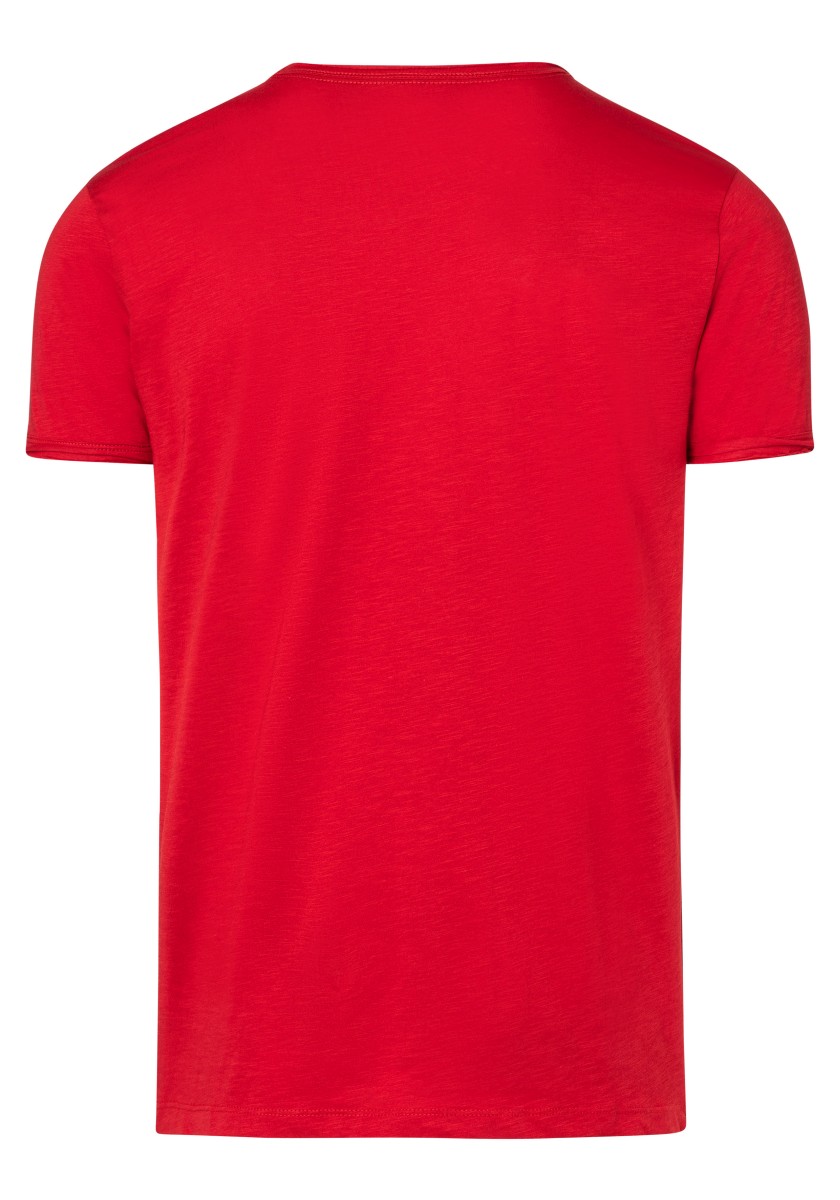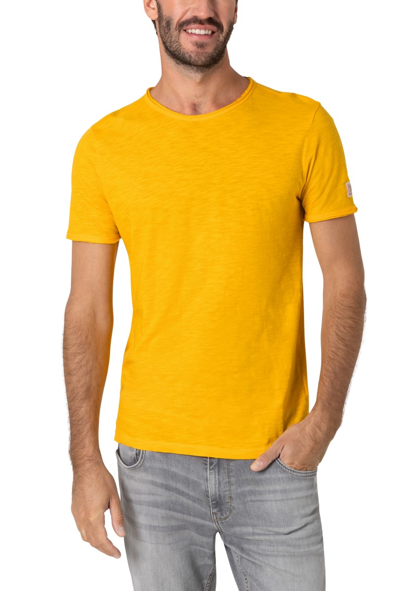 Clean T -shirt design with casual cut and rolled edges on the neck and cuffs. Quality: Soft jersey fabric made of high quality clean cotton. It is characterized by an irregular, living surface, which is the result of deliberate thickening of the yarn. Pleasant: Fine print on the neck is replaced by a annoying woven label. Available in a wide range of colors.