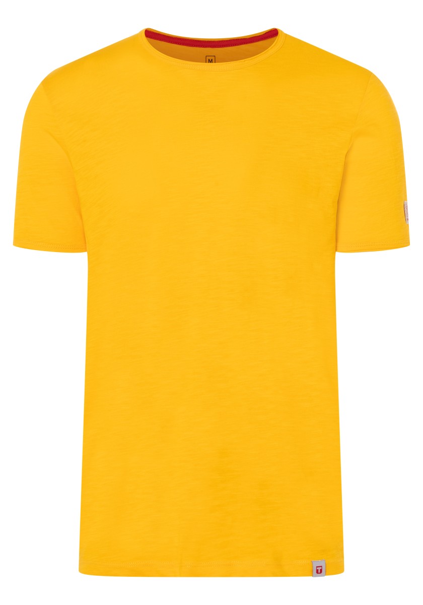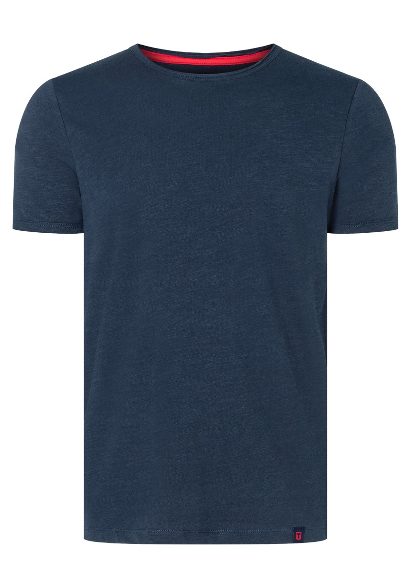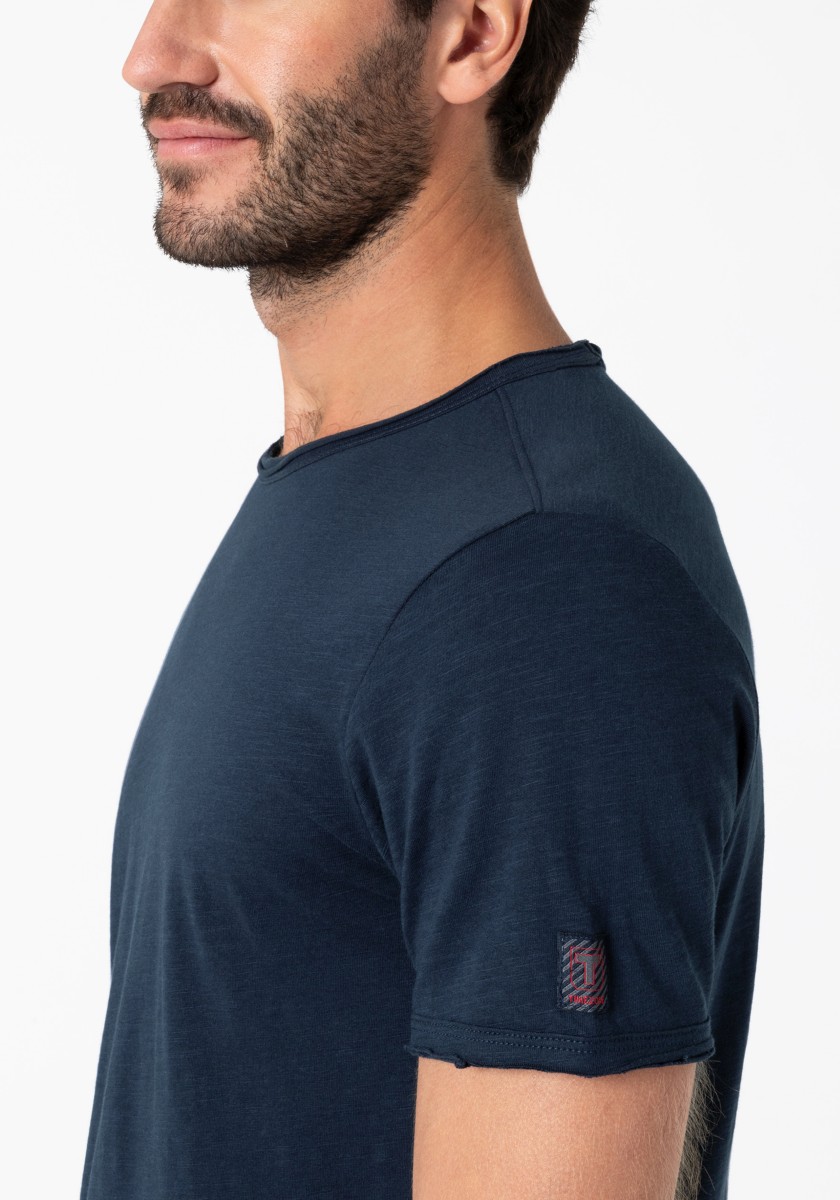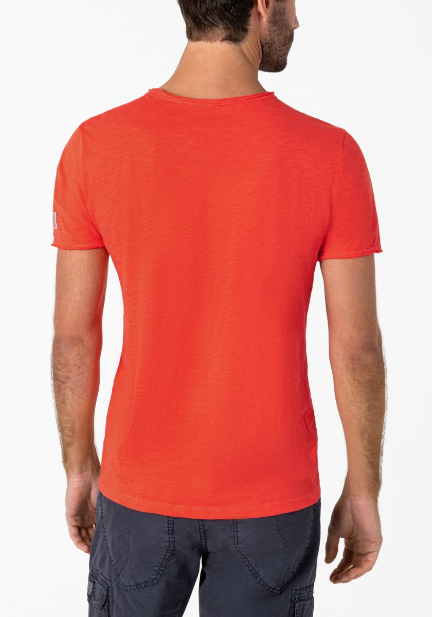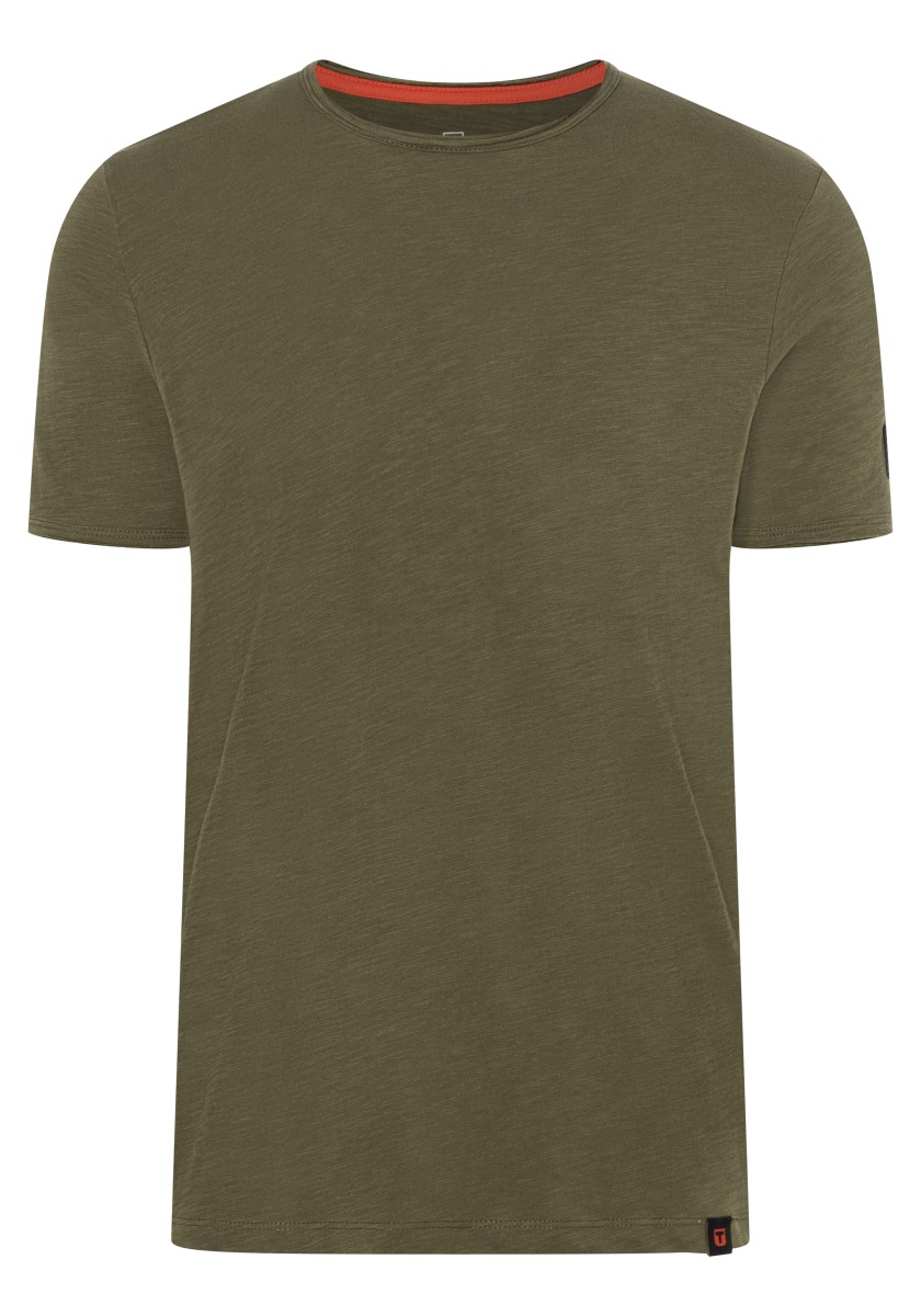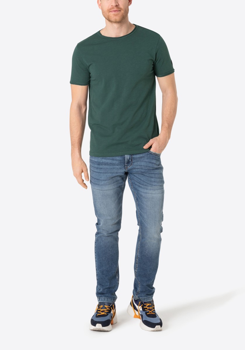Clean T -shirt design with casual cut and rolled edges on the neck and cuffs. Quality: Soft jersey fabric made of high quality clean cotton. It is characterized by an irregular, living surface, which is the result of deliberate thickening of the yarn. Pleasant: Fine print on the neck is replaced by a annoying woven label. Available in a wide range of colors.