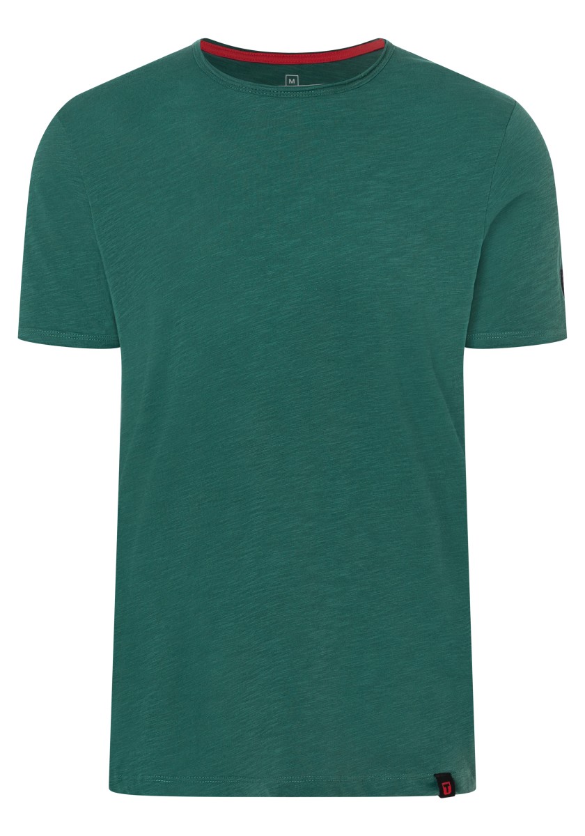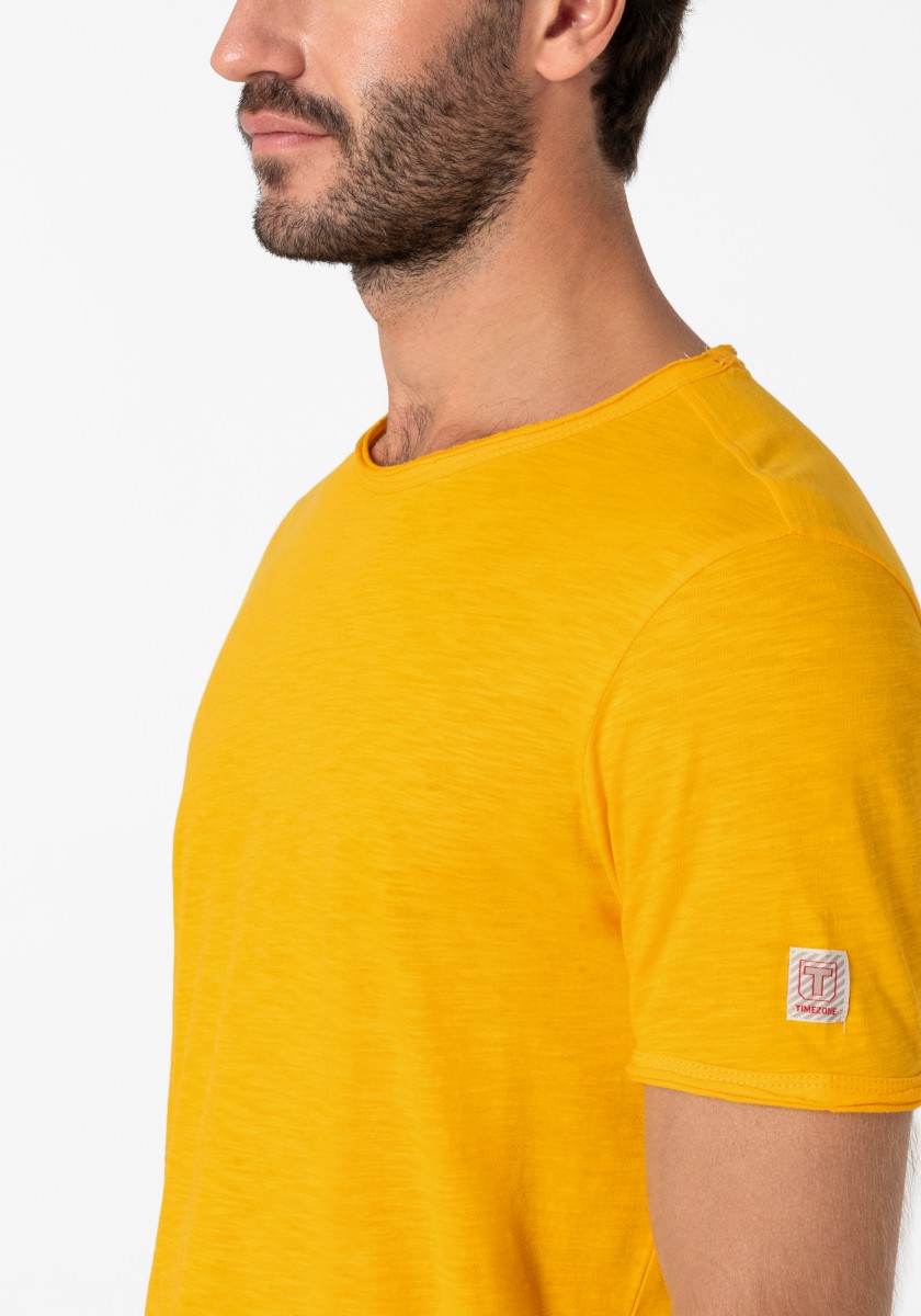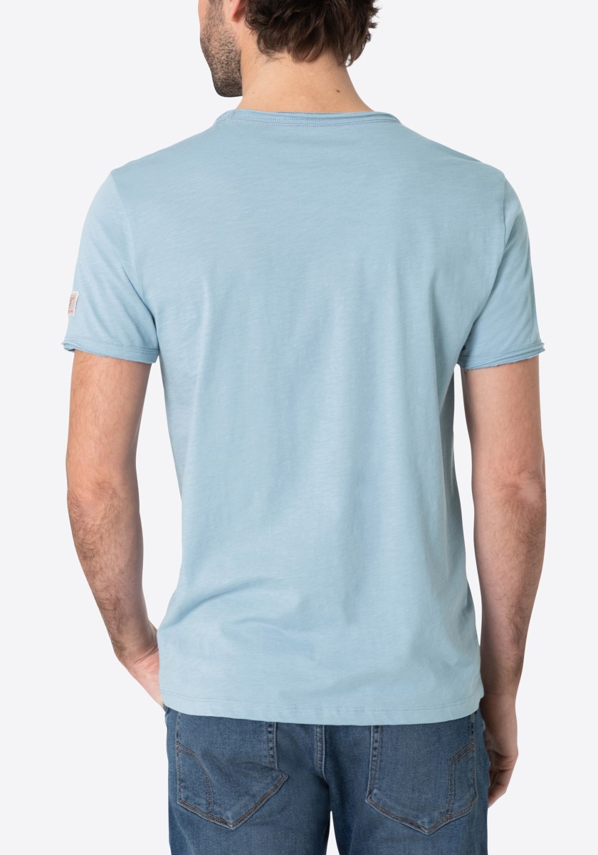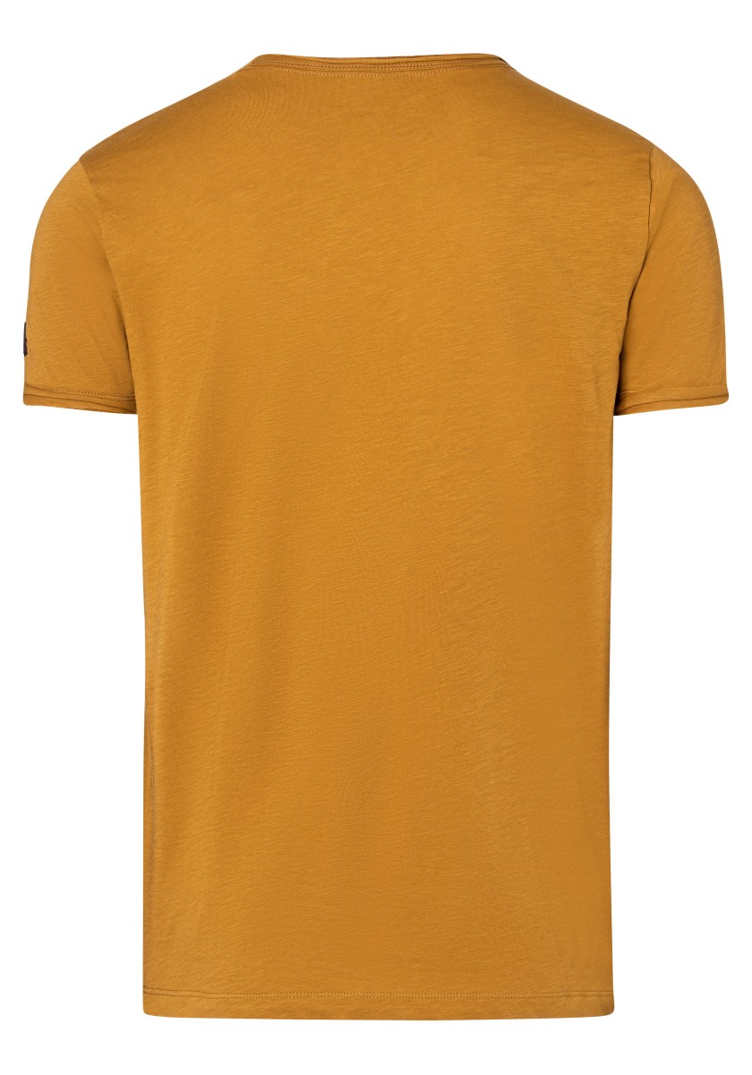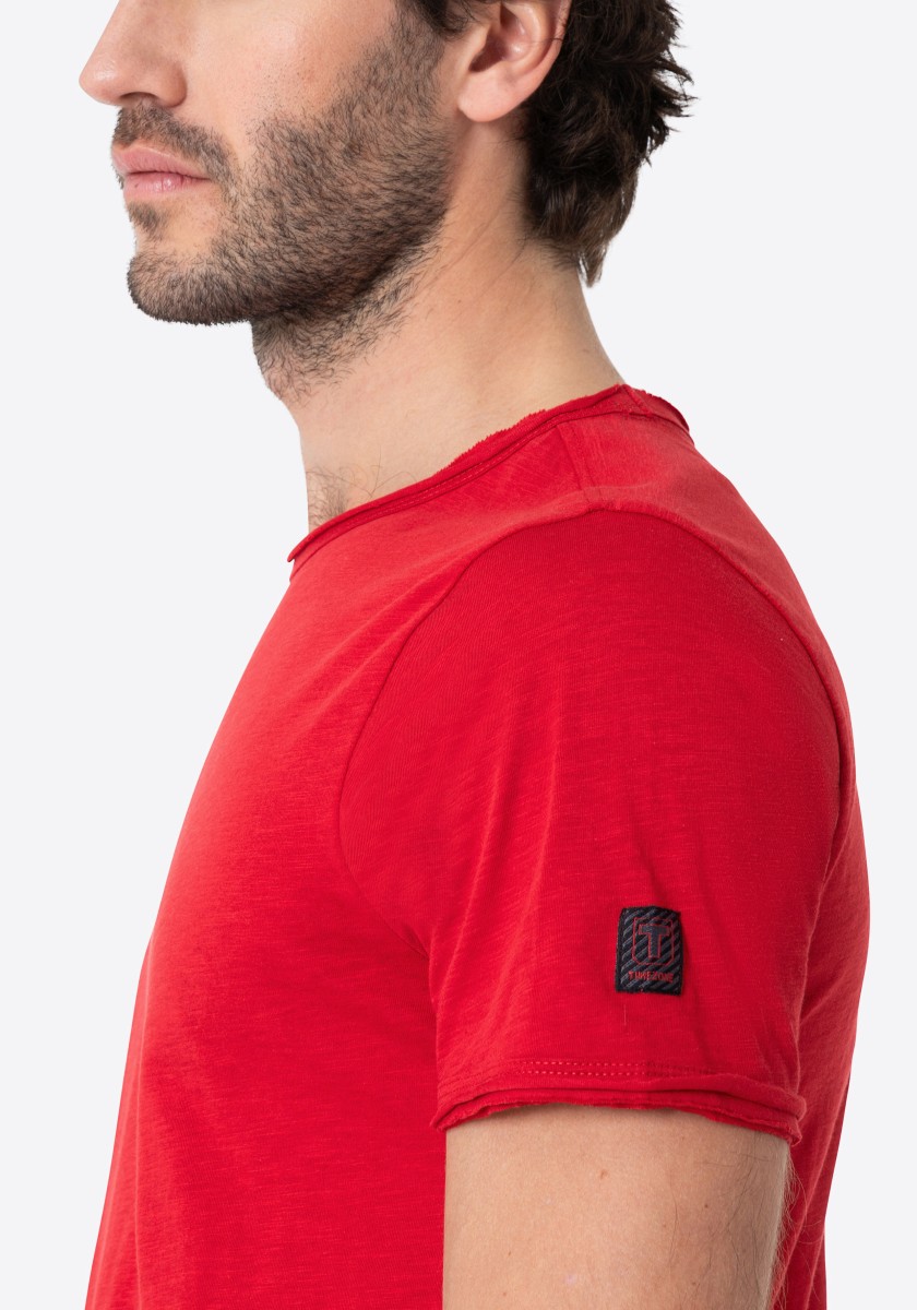 Clean T -shirt design with casual cut and rolled edges on the neck and cuffs. Quality: Soft jersey fabric made of high quality clean cotton. It is characterized by an irregular, living surface, which is the result of deliberate thickening of the yarn. Pleasant: Fine print on the neck is replaced by a annoying woven label. Available in a wide range of colors.