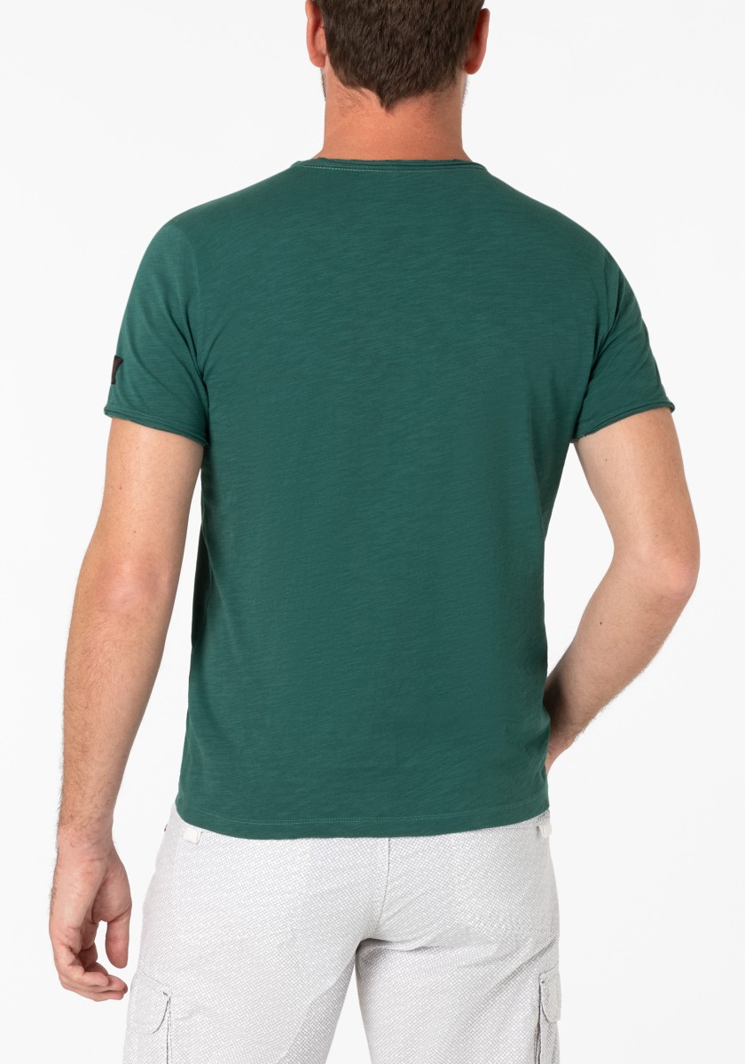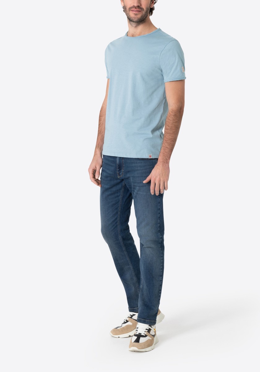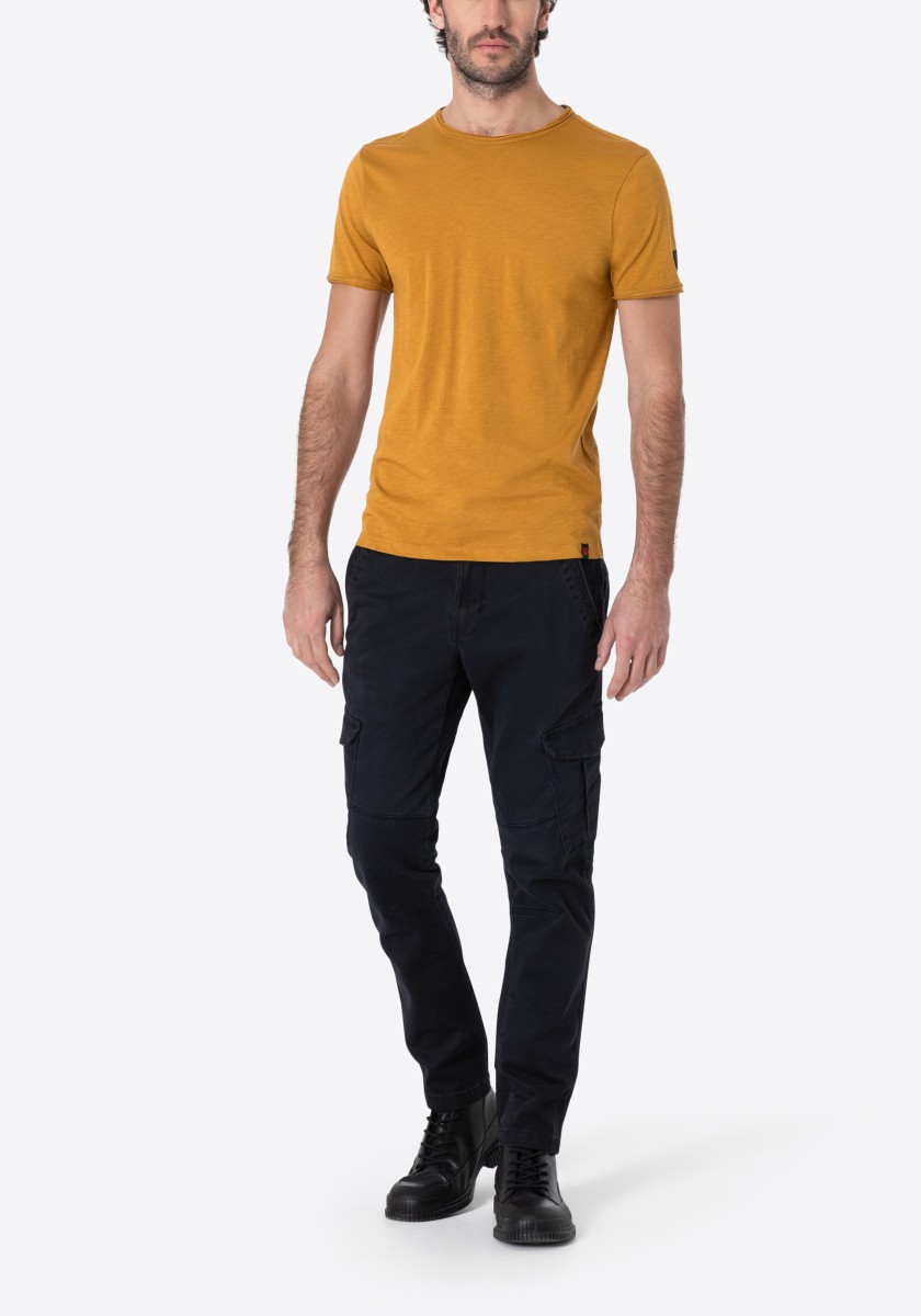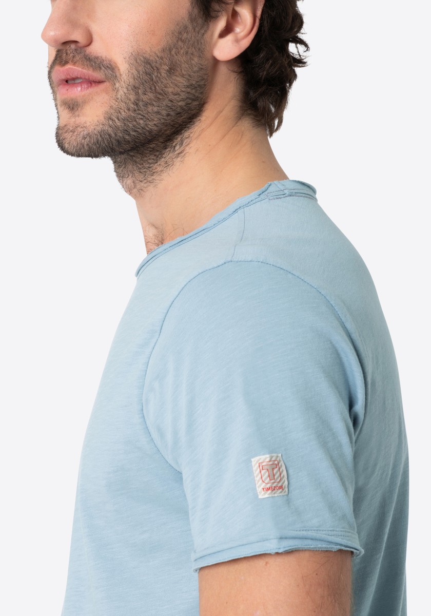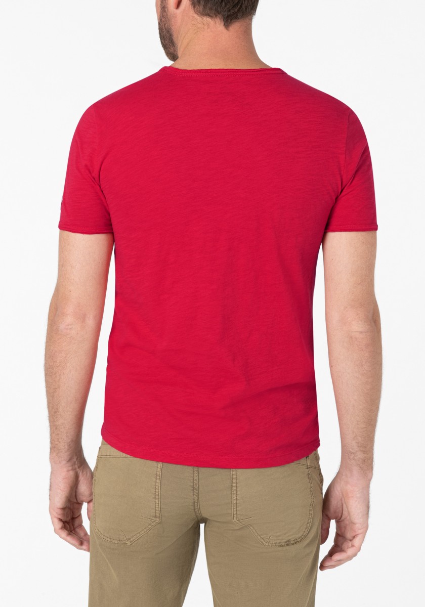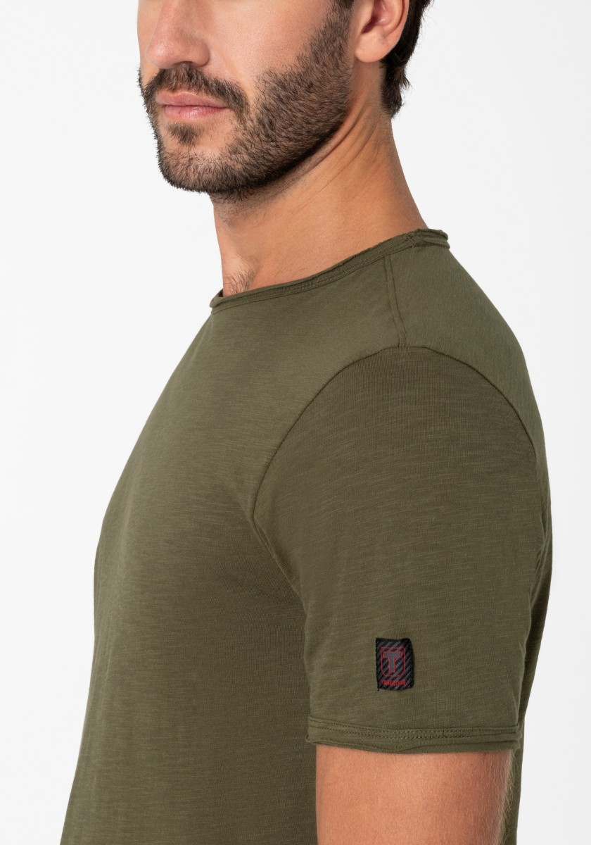Clean T -shirt design with casual cut and rolled edges on the neck and cuffs. Quality: Soft jersey fabric made of high quality clean cotton. It is characterized by an irregular, living surface, which is the result of deliberate thickening of the yarn. Pleasant: Fine print on the neck is replaced by a annoying woven label. Available in a wide range of colors.