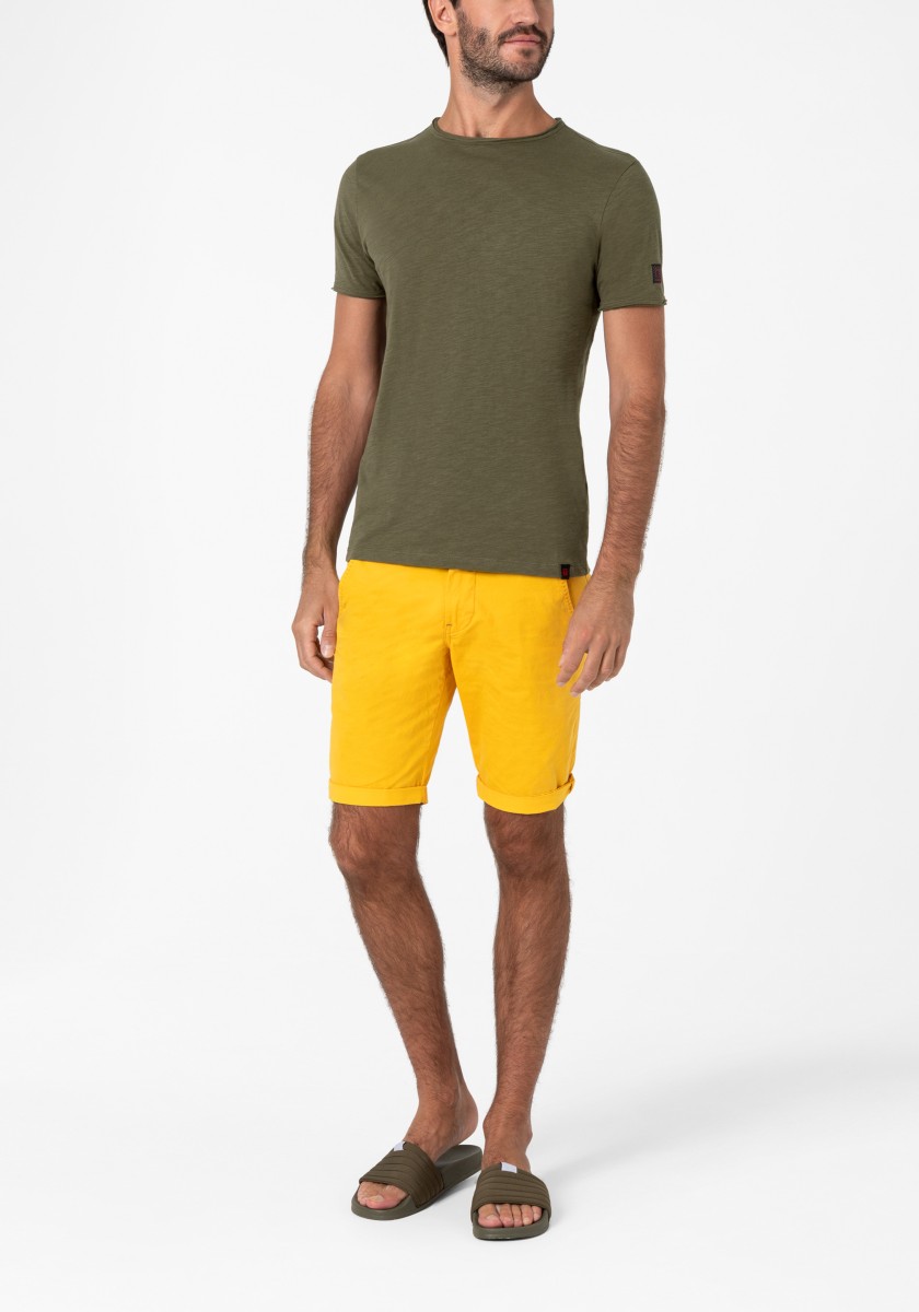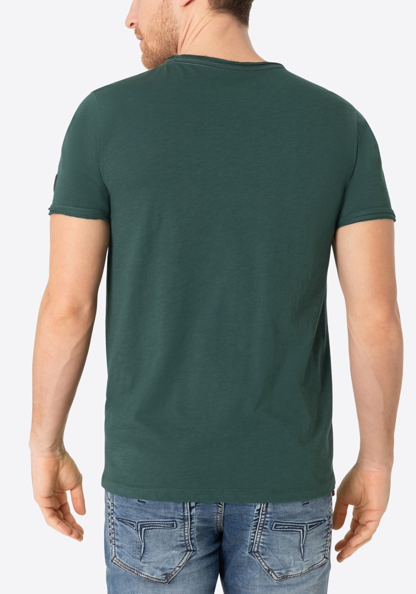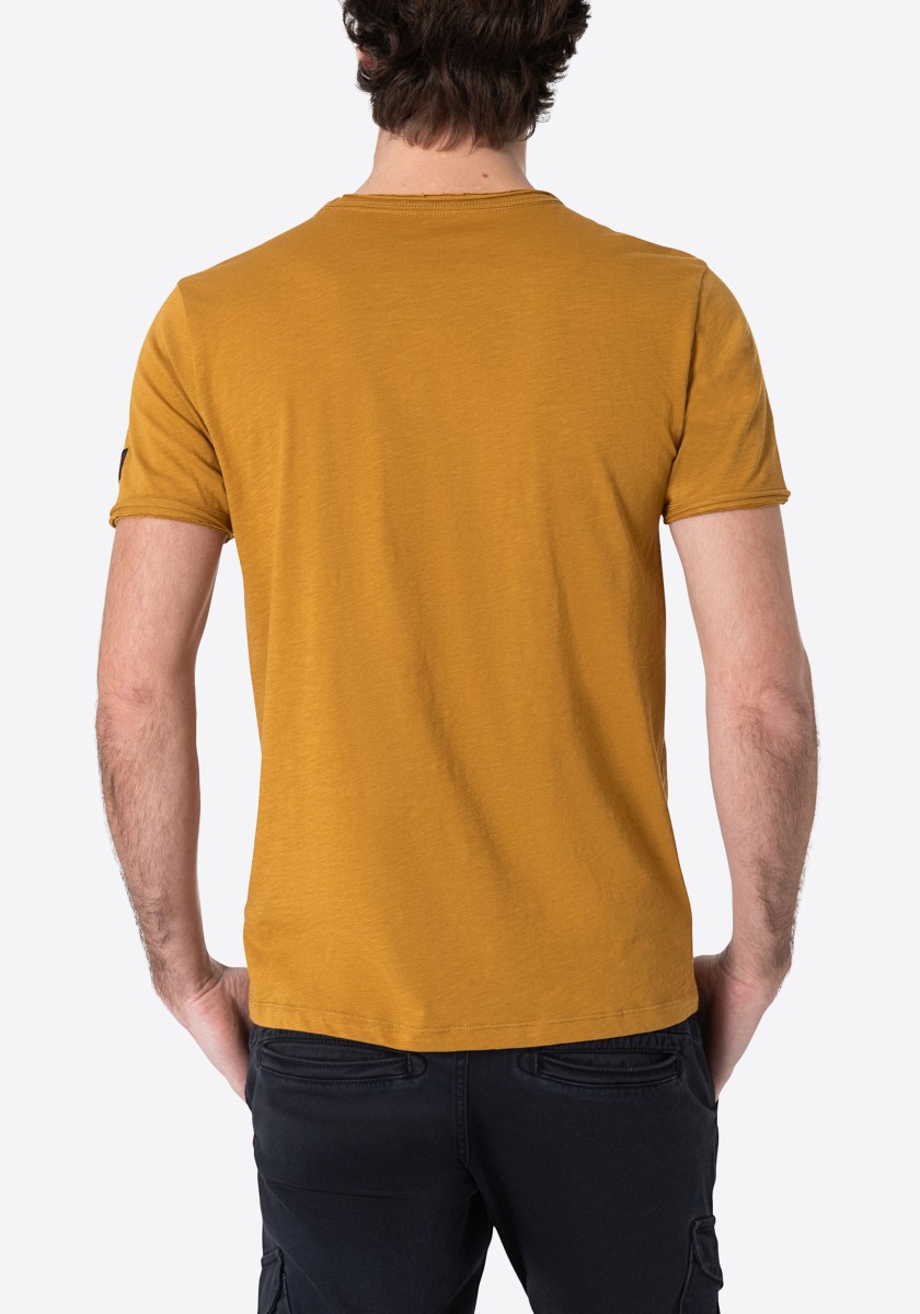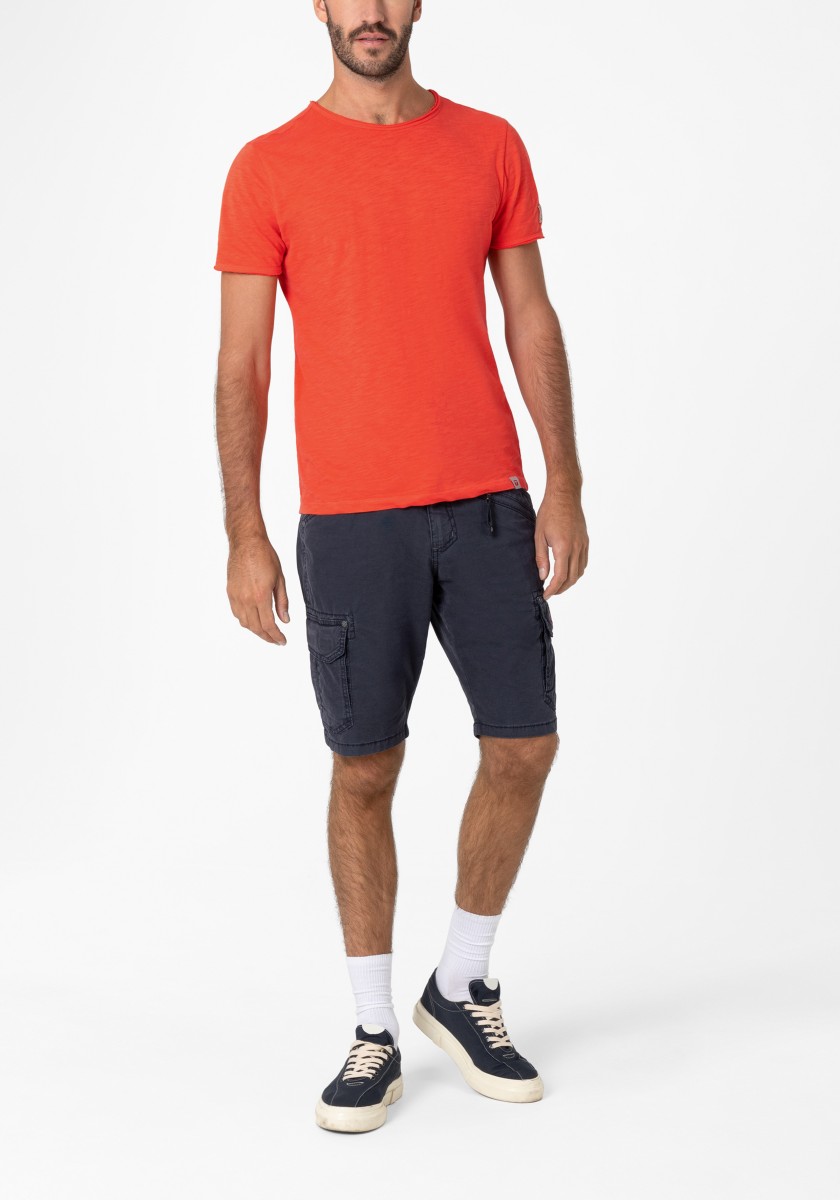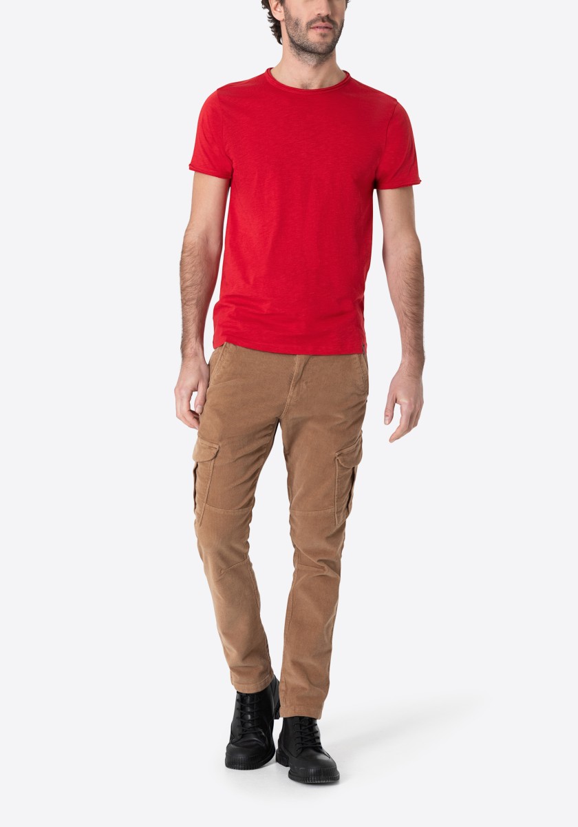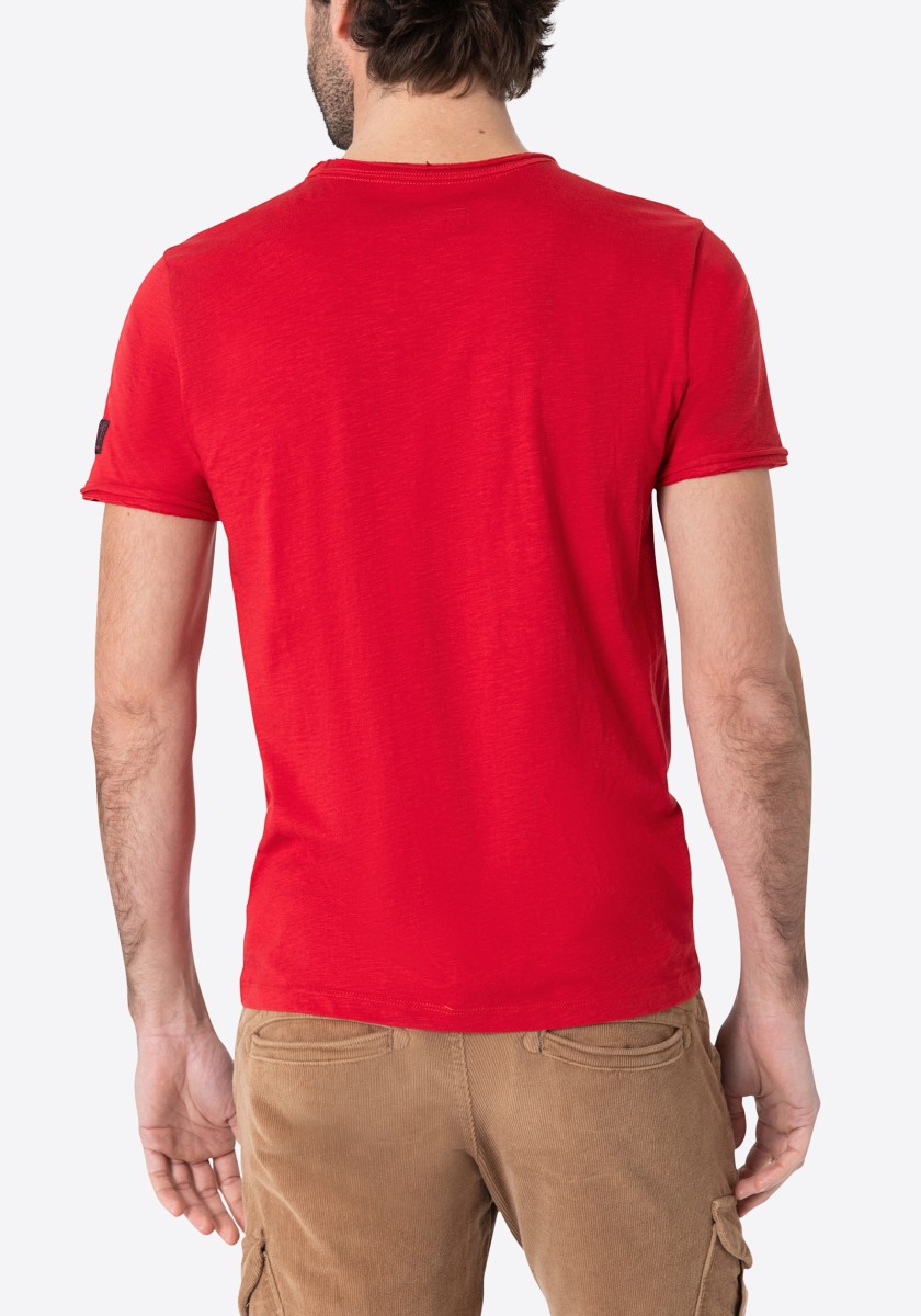 Clean T -shirt design with casual cut and rolled edges on the neck and cuffs. Quality: Soft jersey fabric made of high quality clean cotton. It is characterized by an irregular, living surface, which is the result of deliberate thickening of the yarn. Pleasant: Fine print on the neck is replaced by a annoying woven label. Available in a wide range of colors.