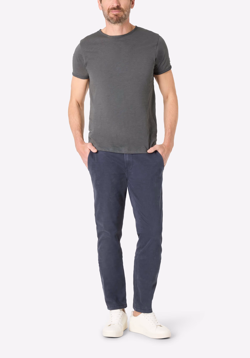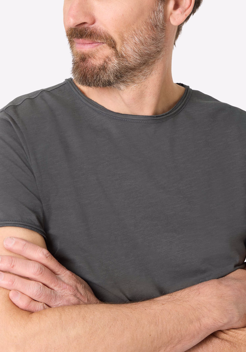 Clean T -shirt design with casual cut and rolled edges on the neck and cuffs. Quality: Soft jersey fabric made of high quality clean cotton. It is characterized by an irregular, living surface, which is the result of deliberate thickening of the yarn. Pleasant: Fine print on the neck is replaced by a annoying woven label. Available in a wide range of colors.