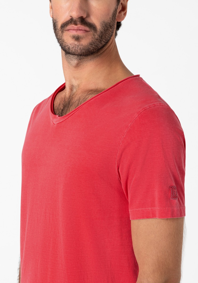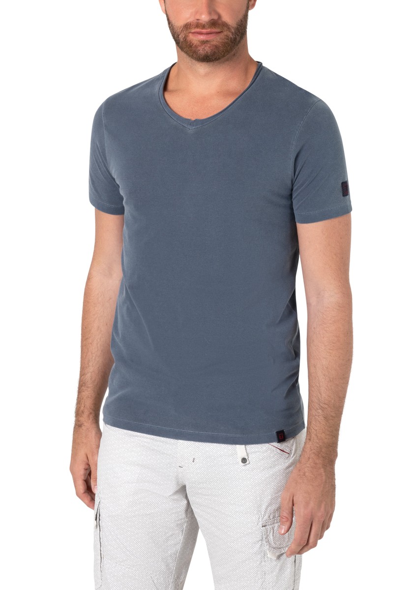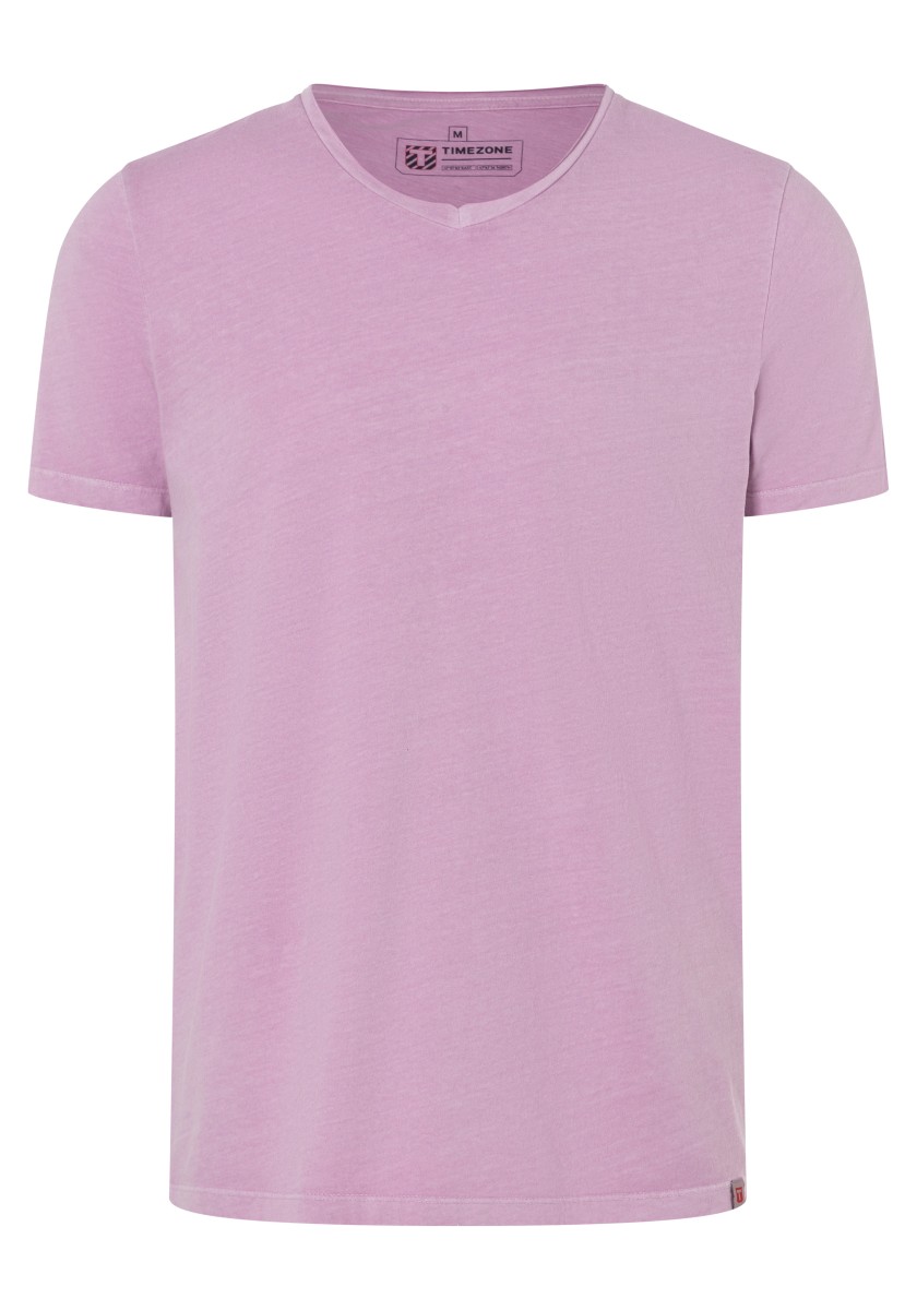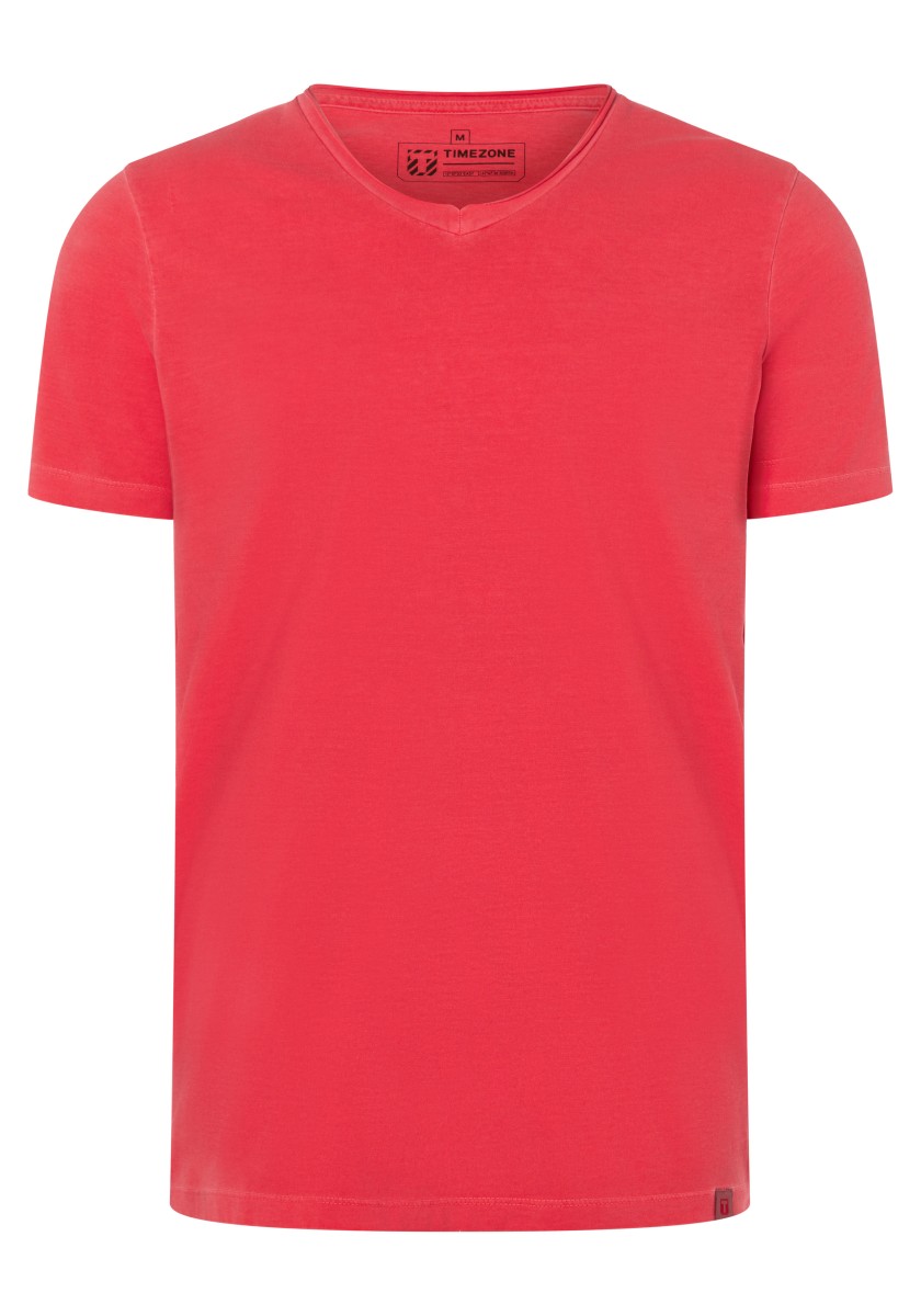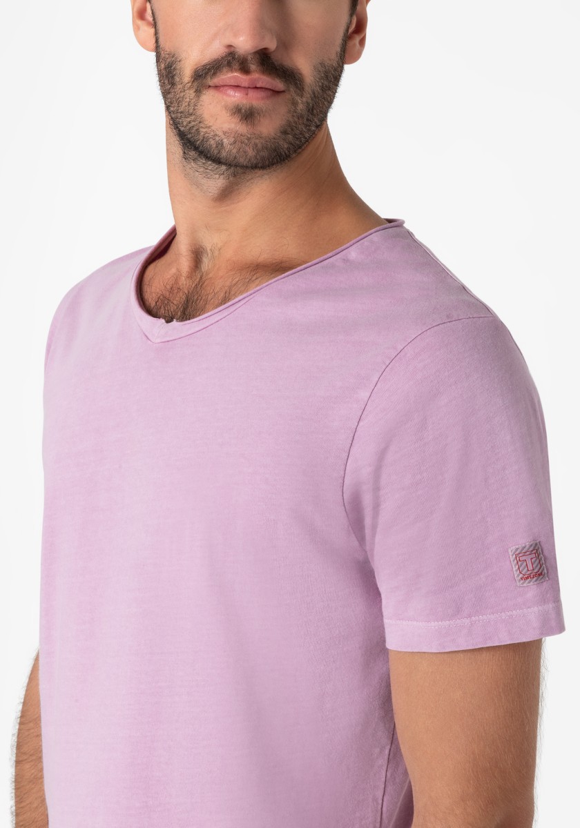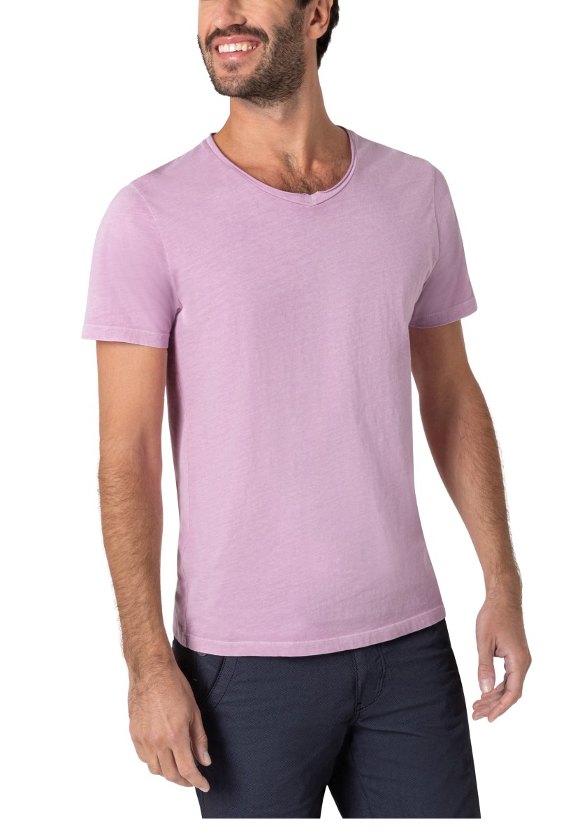 Clean, simple design T -shirts with casual cut and rolled up V -neck. The end of the sleeves and hem are classically ending with a double seam. Quality: Soft single jersey fabric made of pure, high quality cotton. What is strange: deliberate color irregularities are caused by the process of dyeing clothes. Comfortable: Soft print on the neck instead of annoying woven label. Available in many summer colors.