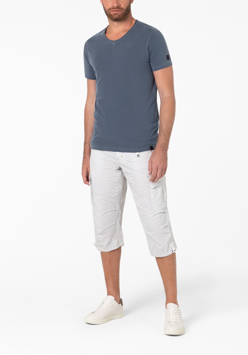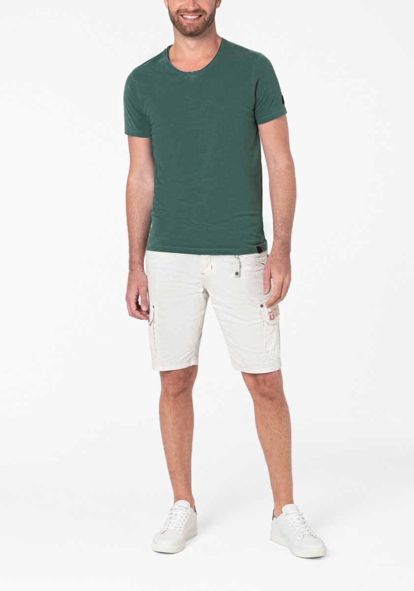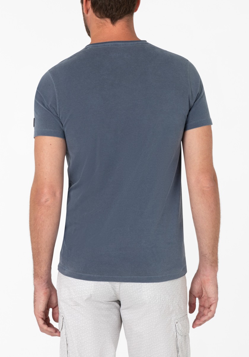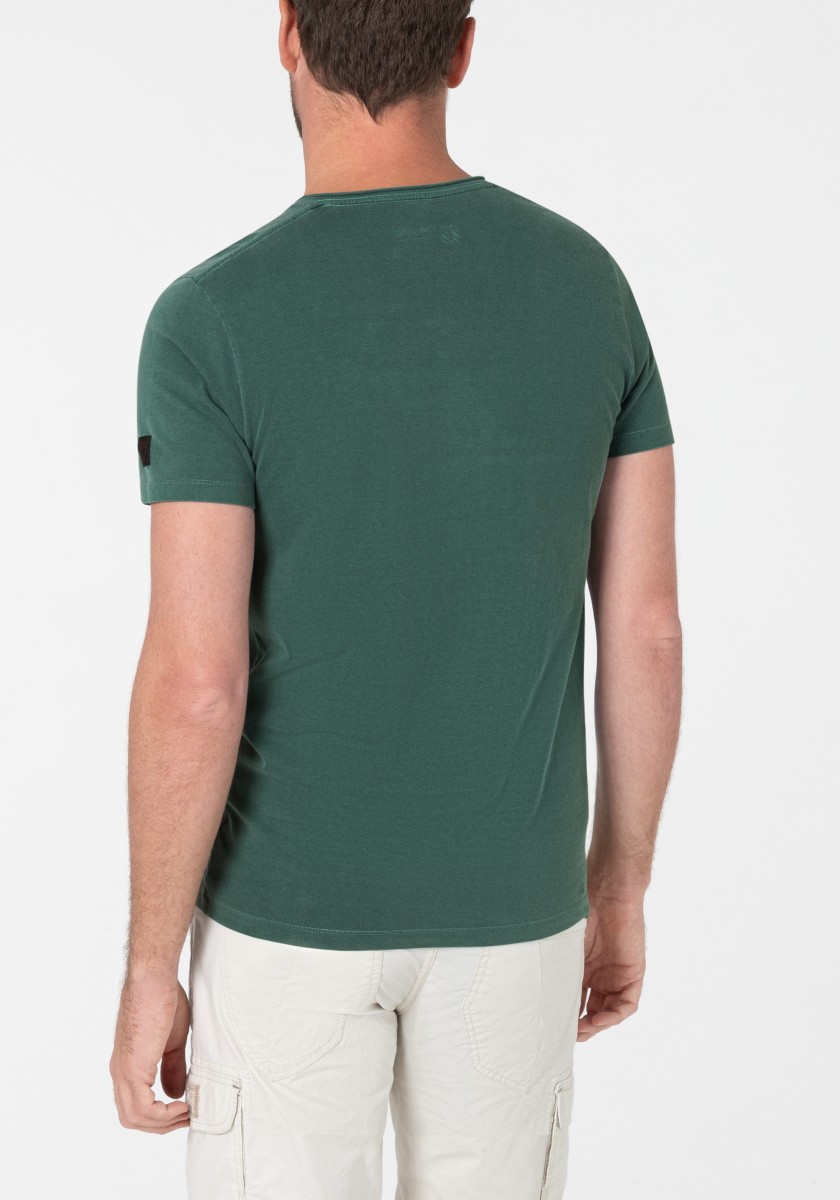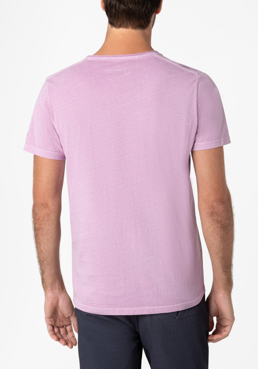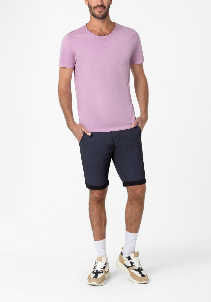 Clean, simple design T -shirts with casual cut and rolled up V -neck. The end of the sleeves and hem are classically ending with a double seam. Quality: Soft single jersey fabric made of pure, high quality cotton. What is strange: deliberate color irregularities are caused by the process of dyeing clothes. Comfortable: Soft print on the neck instead of annoying woven label. Available in many summer colors.