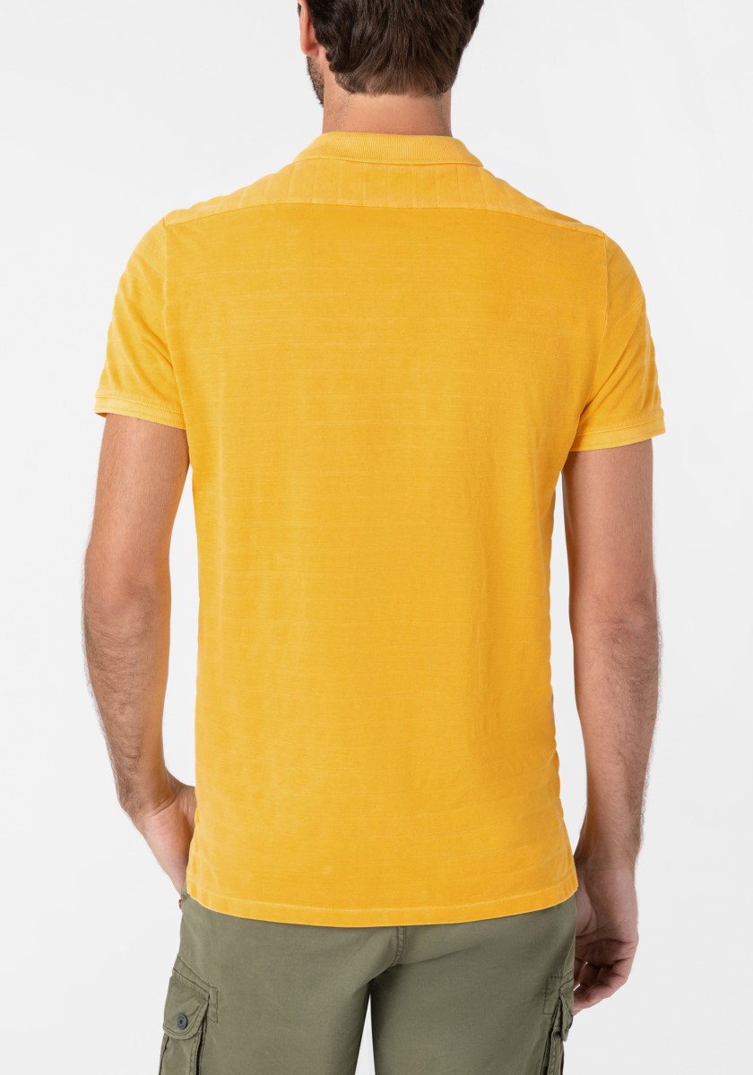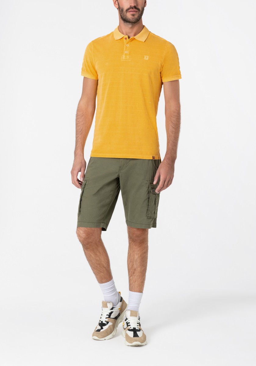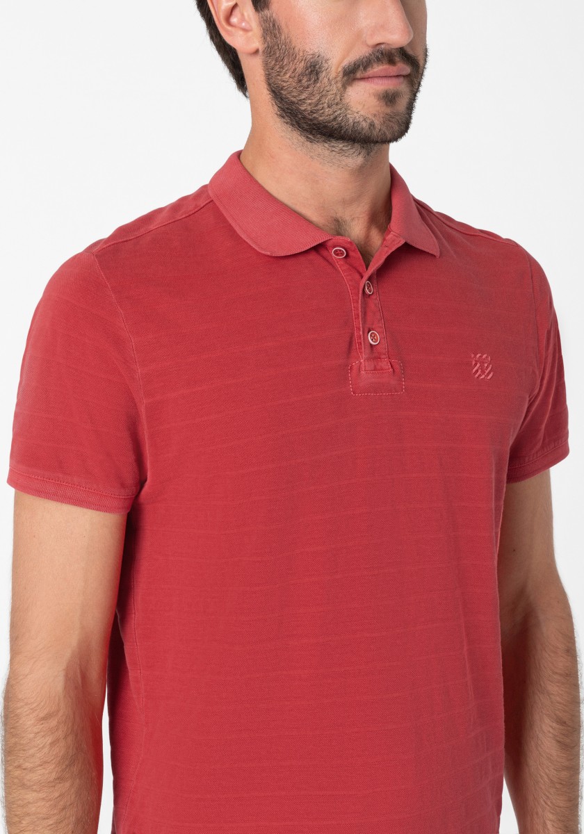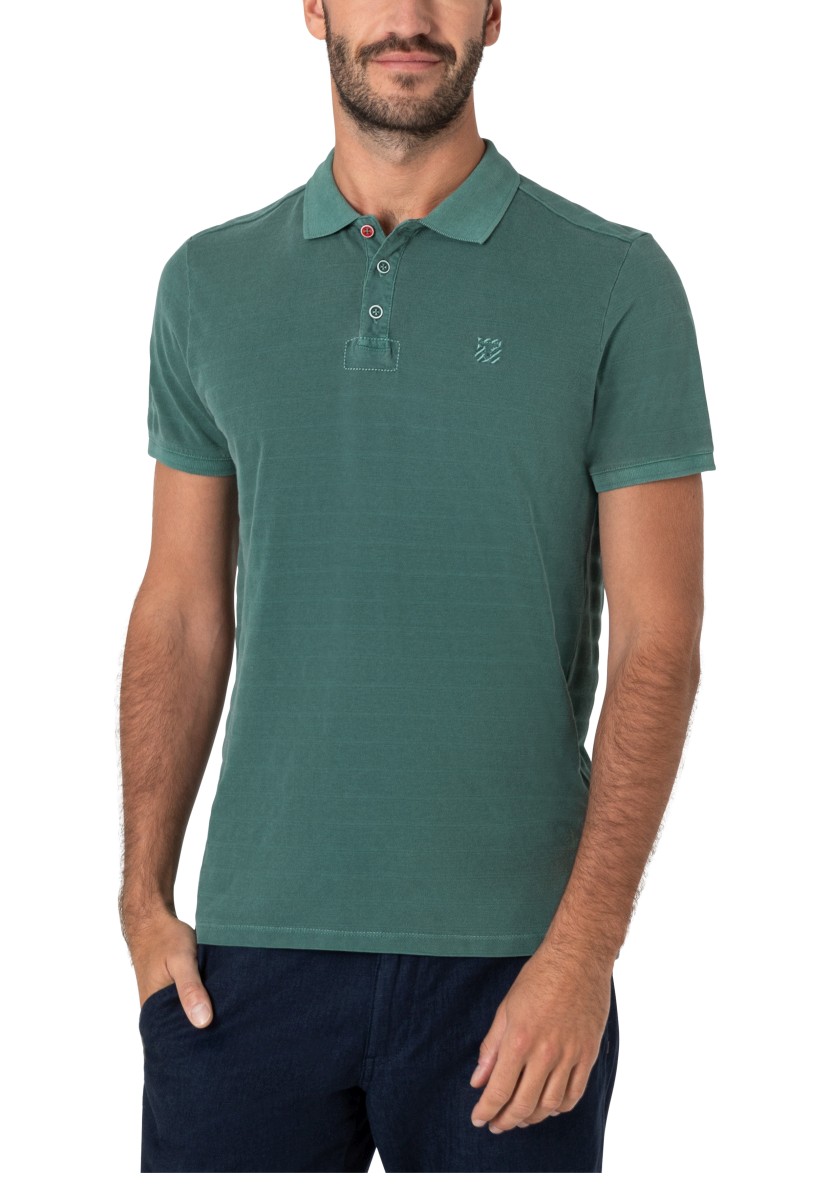 Short -sleeved polo shirts are a combination of polo shirts and t -shirts and comes with a characteristic flat collar. Attention is clearly focused on the material. An interesting jacquard piqué jersej has a sophisticated, tinted striped pattern and casual color washing with the effect of dye on clothing. A model with a short narrow button fly, corresponding to the embroidery logo on the chest, a narrow shoulder saddle and casually parked side seams.