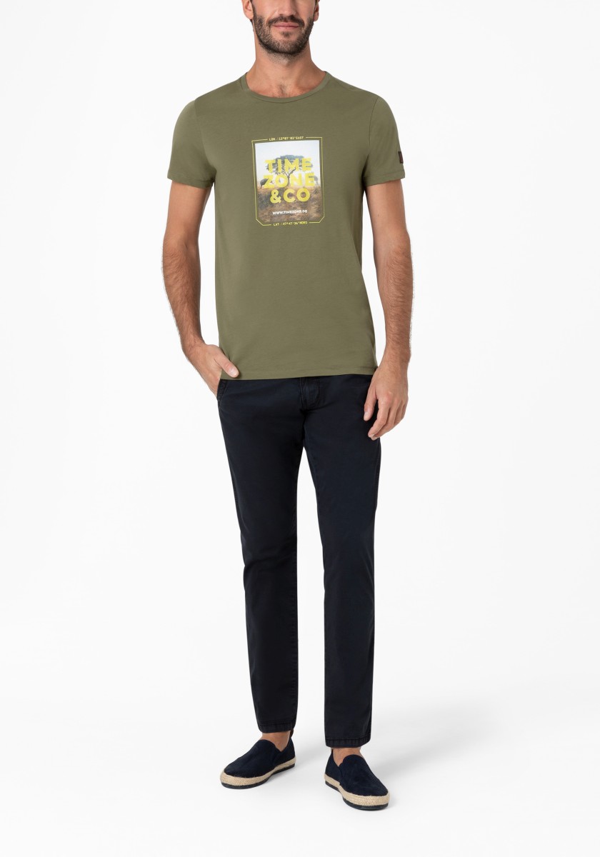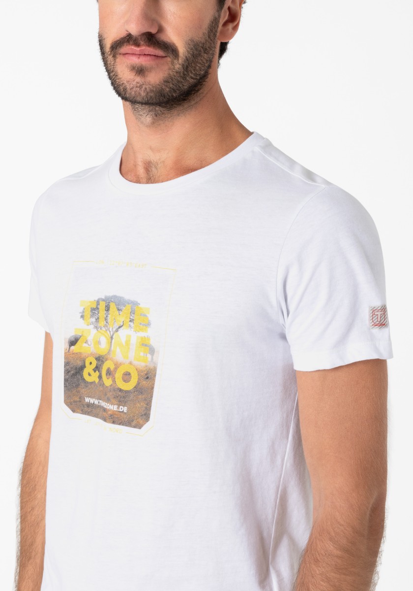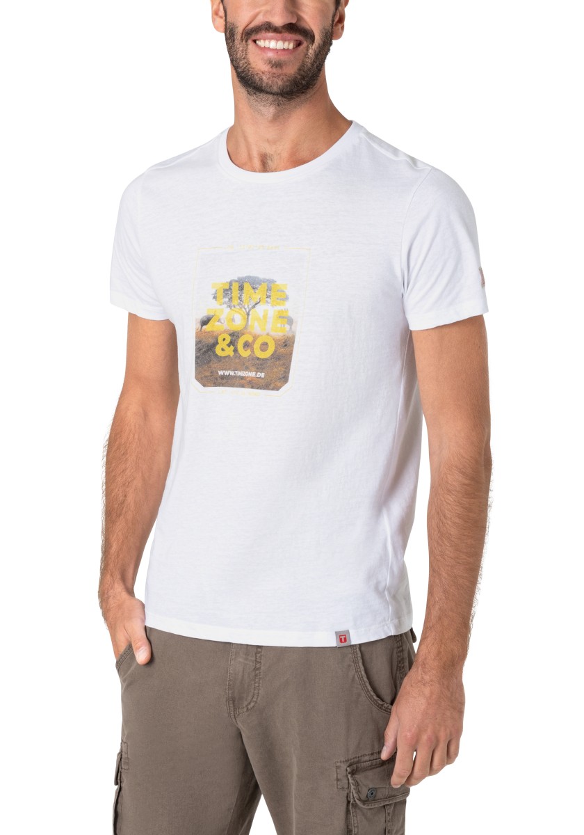 T -shirts are incredibly versatile and every trend lasts. They are not only an important basis, but also express our mood. This shirt with photographic printing immediately takes us to foreign countries and forces us to dream of traveling. The casual model is made of a super soft, lightweight single Jersey and has a classic silhouette with a ribbed round neckline. Instead of well -known double seams, there are sports flat seams.
