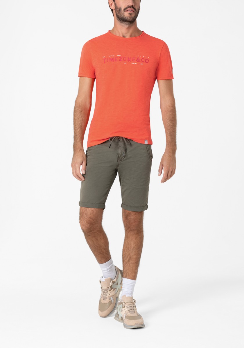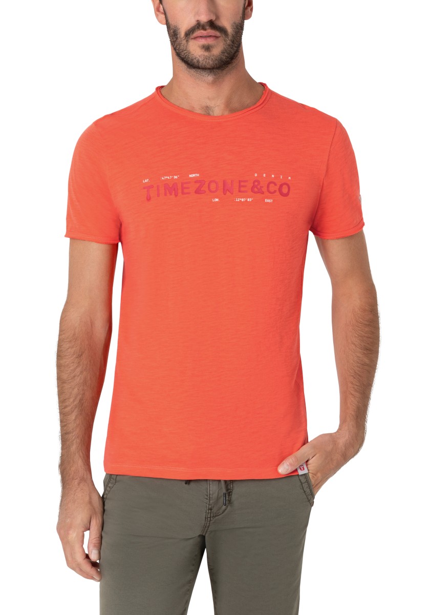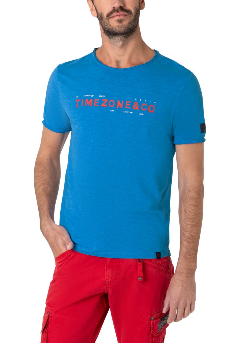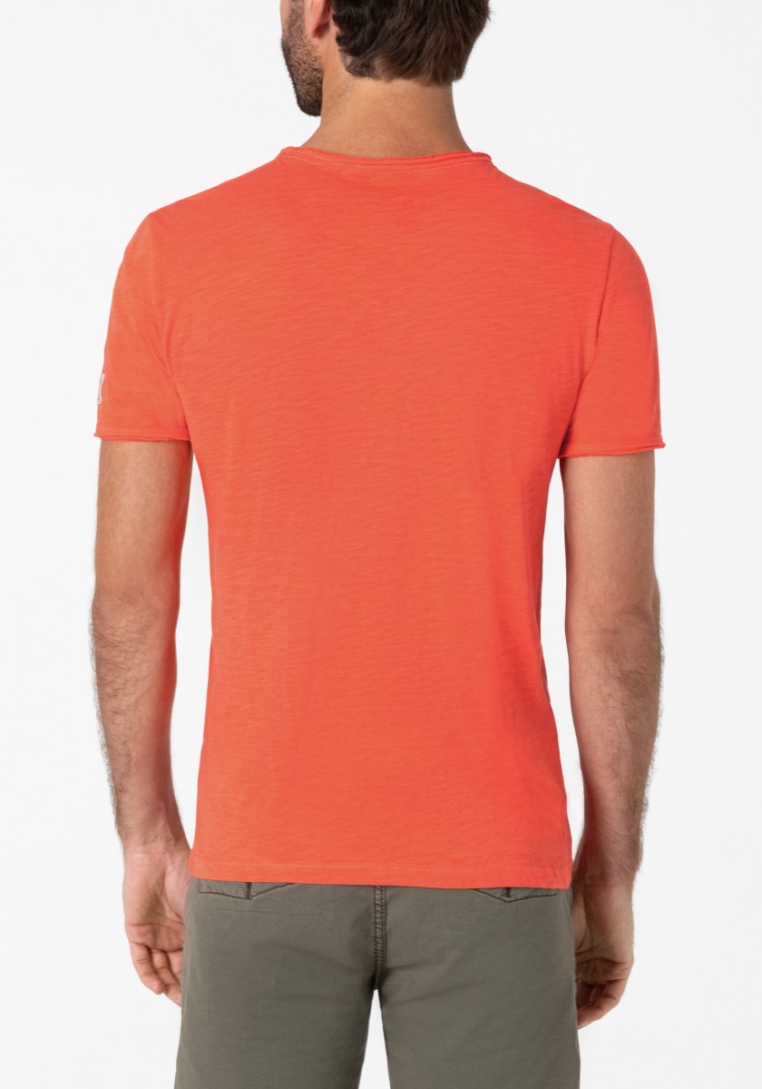 Střih: čistý, jednoduchý, známý, pravidelný s krátkým výstřihem do V a rolovaným okrajem. Celoplošný potisk: stručný, s efektem wow, mini žirafy a palmy. Manžety a lem rukávů s nadčasovým dvojitým prošíváním, lem: klasický rovný. Výrobek: měkký kluzký single jersey vyrobený z čisté, vysoce kvalitní bavlny. Stylingový tip: jako partnera k outfitu rozhodně použijte jednobarevné spodky. Tričko je dostatečně výrazné.