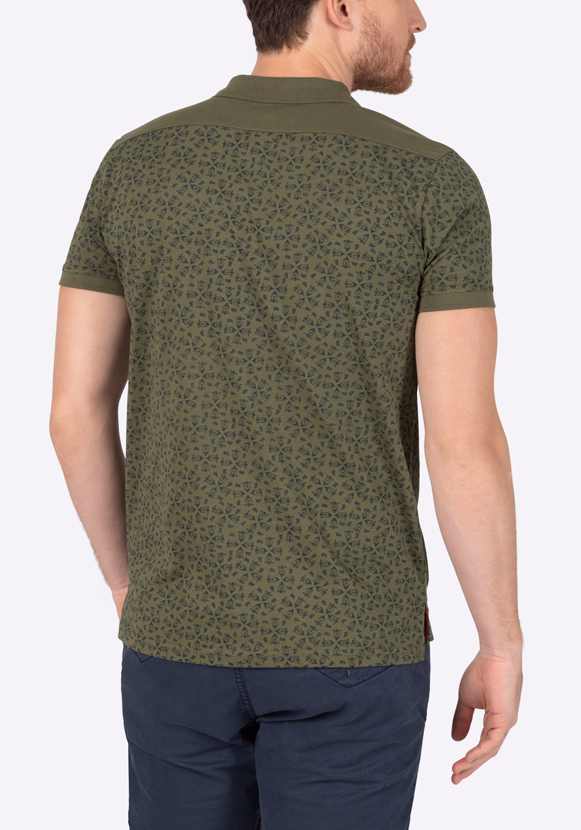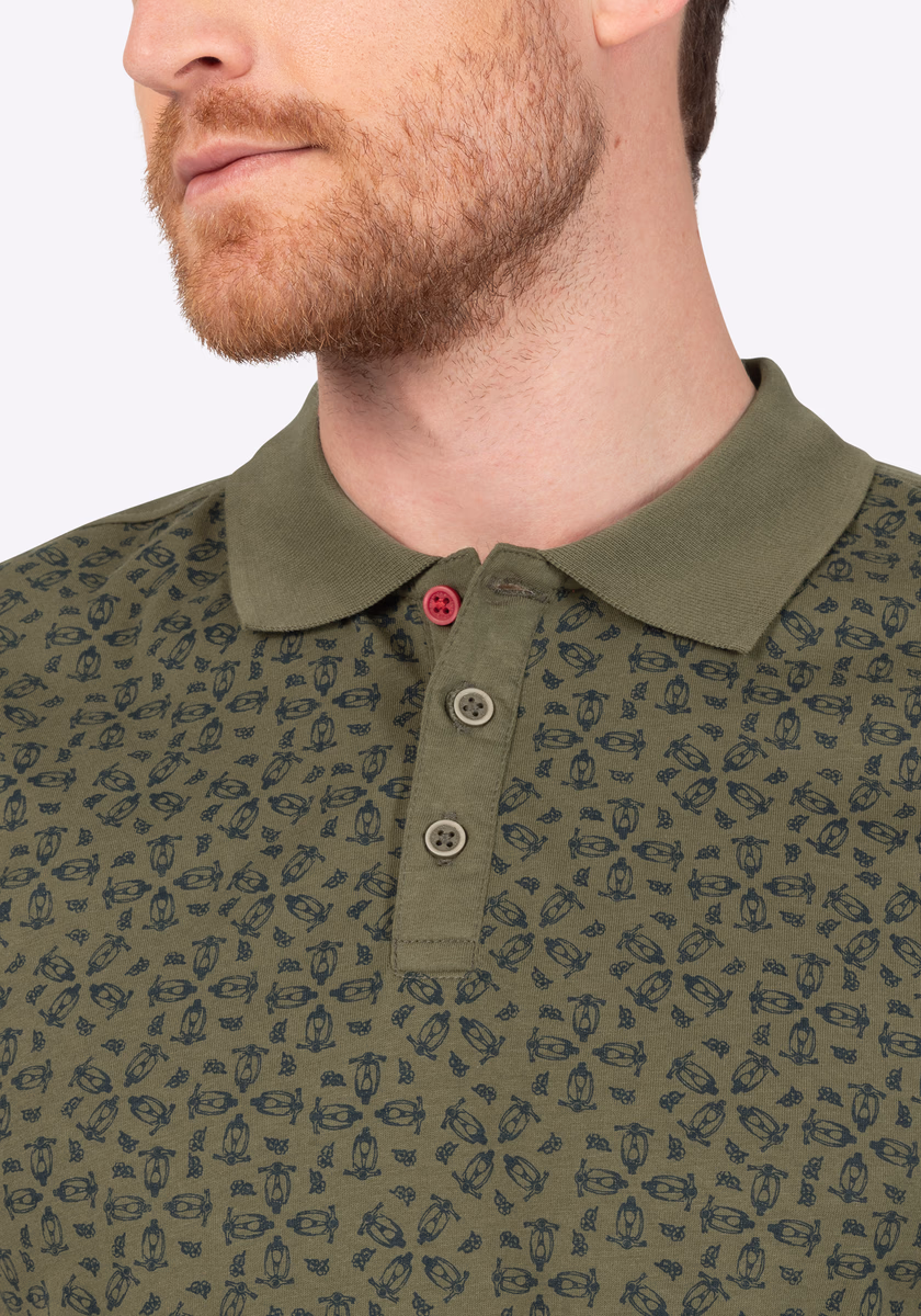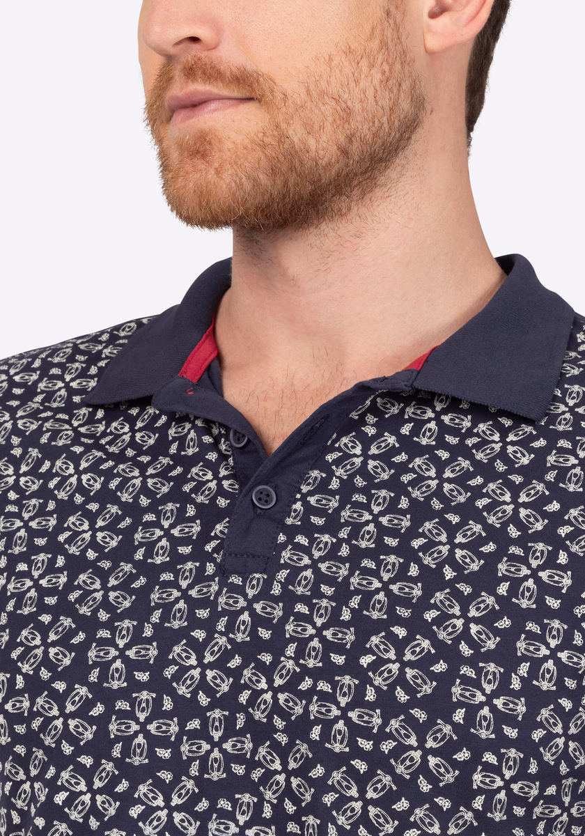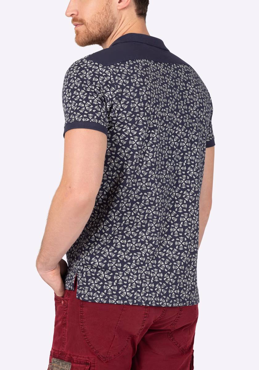 Poznámka redakce: Polokošile byste měli vždy nosit volně přes kalhoty. Nikdy do kalhot! To platí i pro moderní mini celoplošně potištěnou verzi. Volný pravidelný střih s plochým úpletovým límcem, krátkou légou na půl knoflíku, lemem rukávů s připojenými žebrovanými manžetami, úzkým ramenním sedlem a rozparkovanými bočními švy. Vyrobeno z vysoce kvalitního, lehkého bavlněného žerzeje s potiskem a jemnými barevnými kontrasty na límci a lemu.