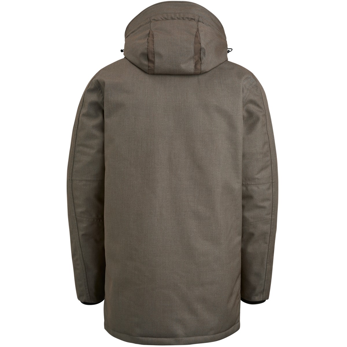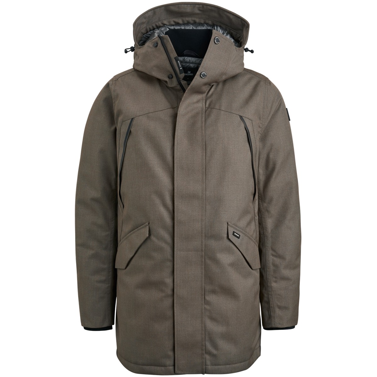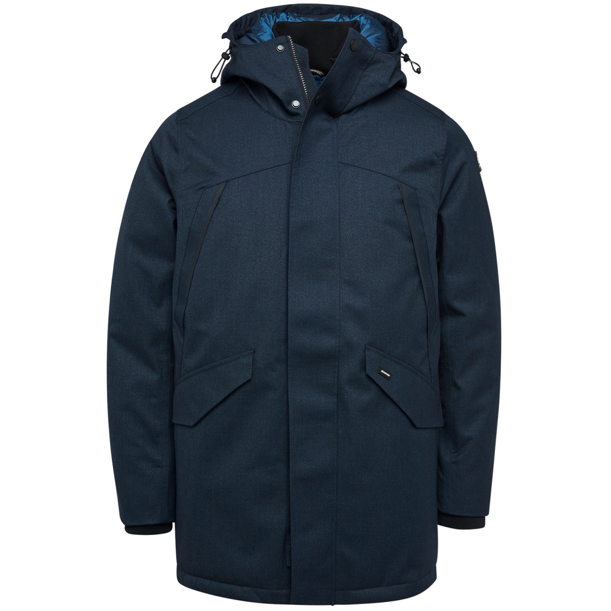 The Wheelride parka is made of a melange twill with a wool look and a waterproof coating on the back. It is filled with Dupont, a natural, quick-drying down material with a high insulating capacity. The main seams are taped, making the jacket wind and waterproof. The parka has an adjustable hood, various pockets and sleeve cuffs on the inside that keep out the cold. The iconic V-shaped lining and the timeless Vanguard details complete this style.