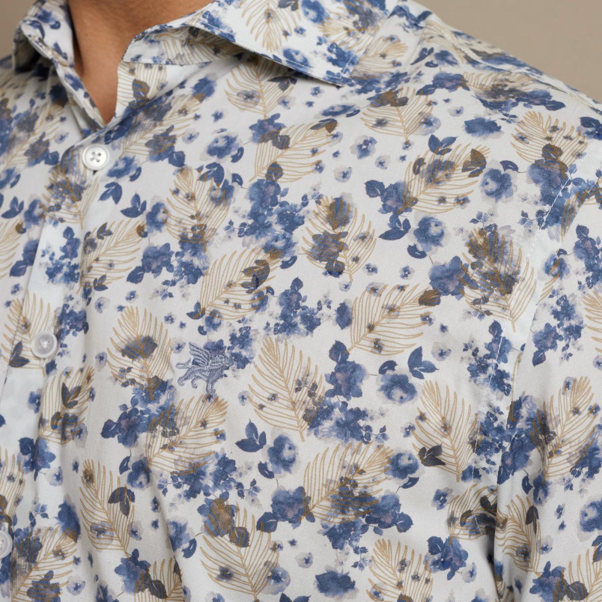 This stylish shirt with an all-over print will turn heads. This luxurious Vanguard shirt is designed with rich details such as a slanted shoulder saddle and slanted cuffs. Signature Vanguard details complete this style. When it comes to real quality, it's the details that matter.