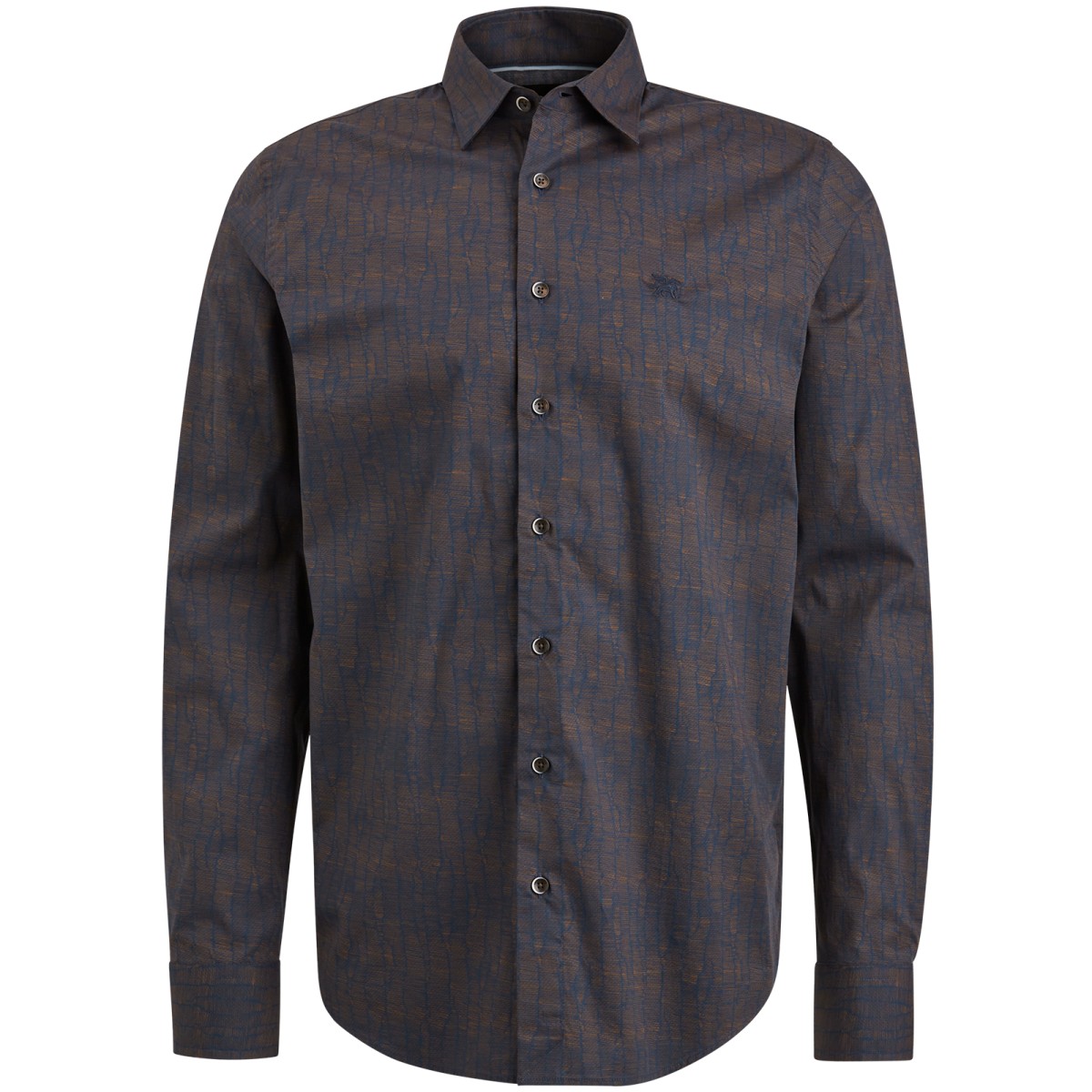 This comfortable Vanguard shirt with Kent collar is made of a fine poplin cotton with stretch. The subtle print in dark colors provides a cool, stylish look. The shirt designed with rich details, such as a slanted yoke and diagonally cut cuffs. The timeless Vanguard details complete this style.